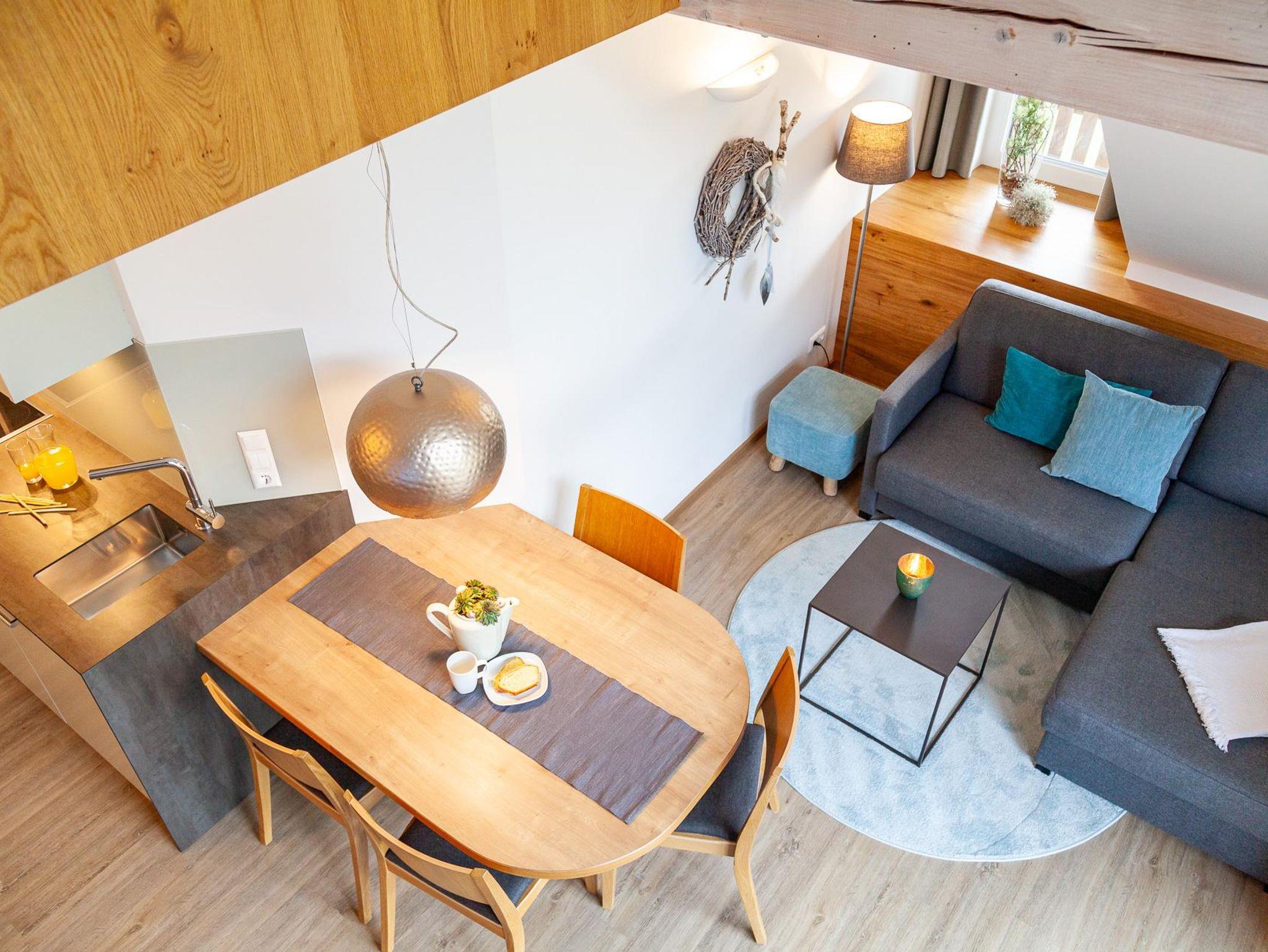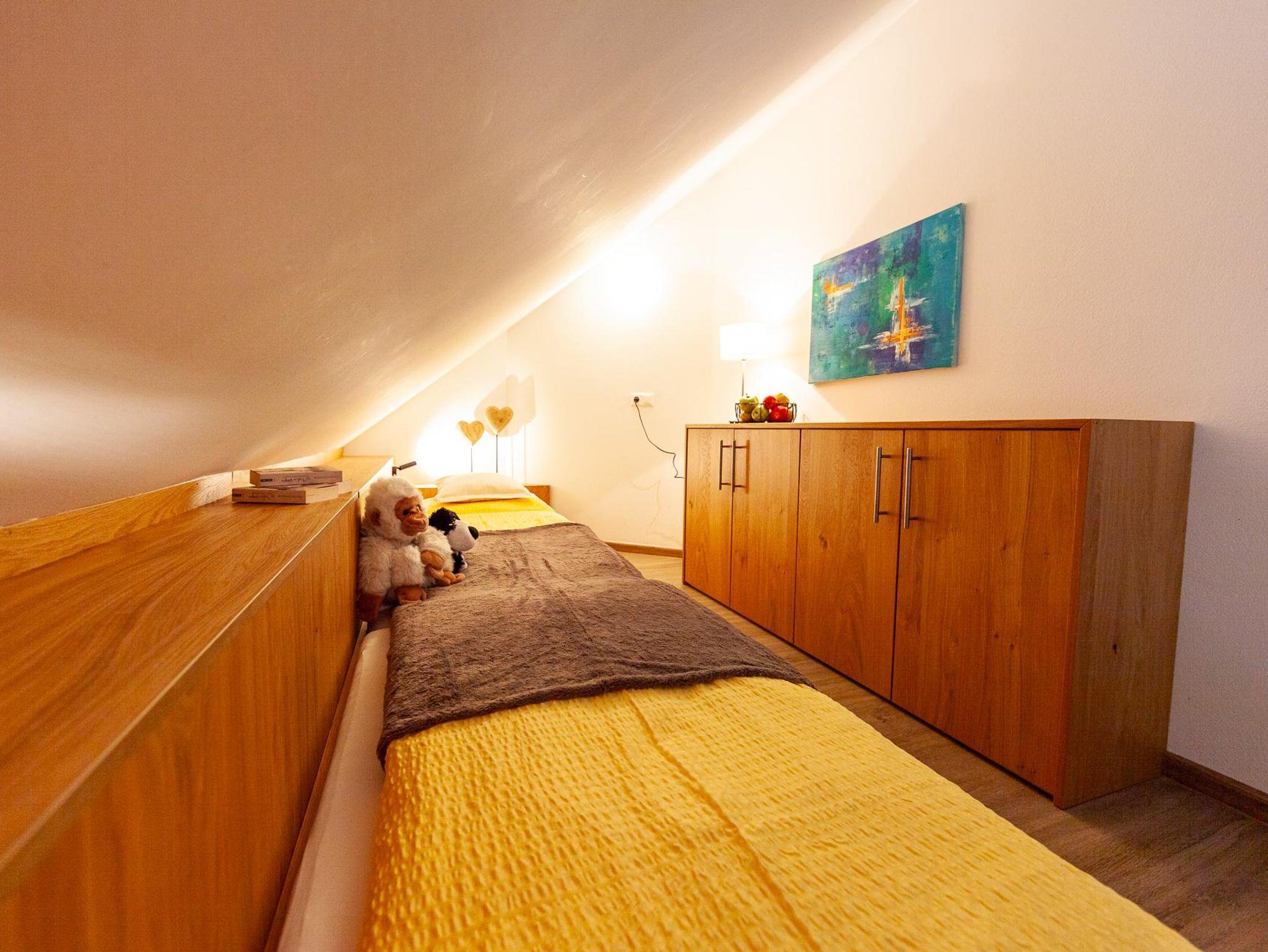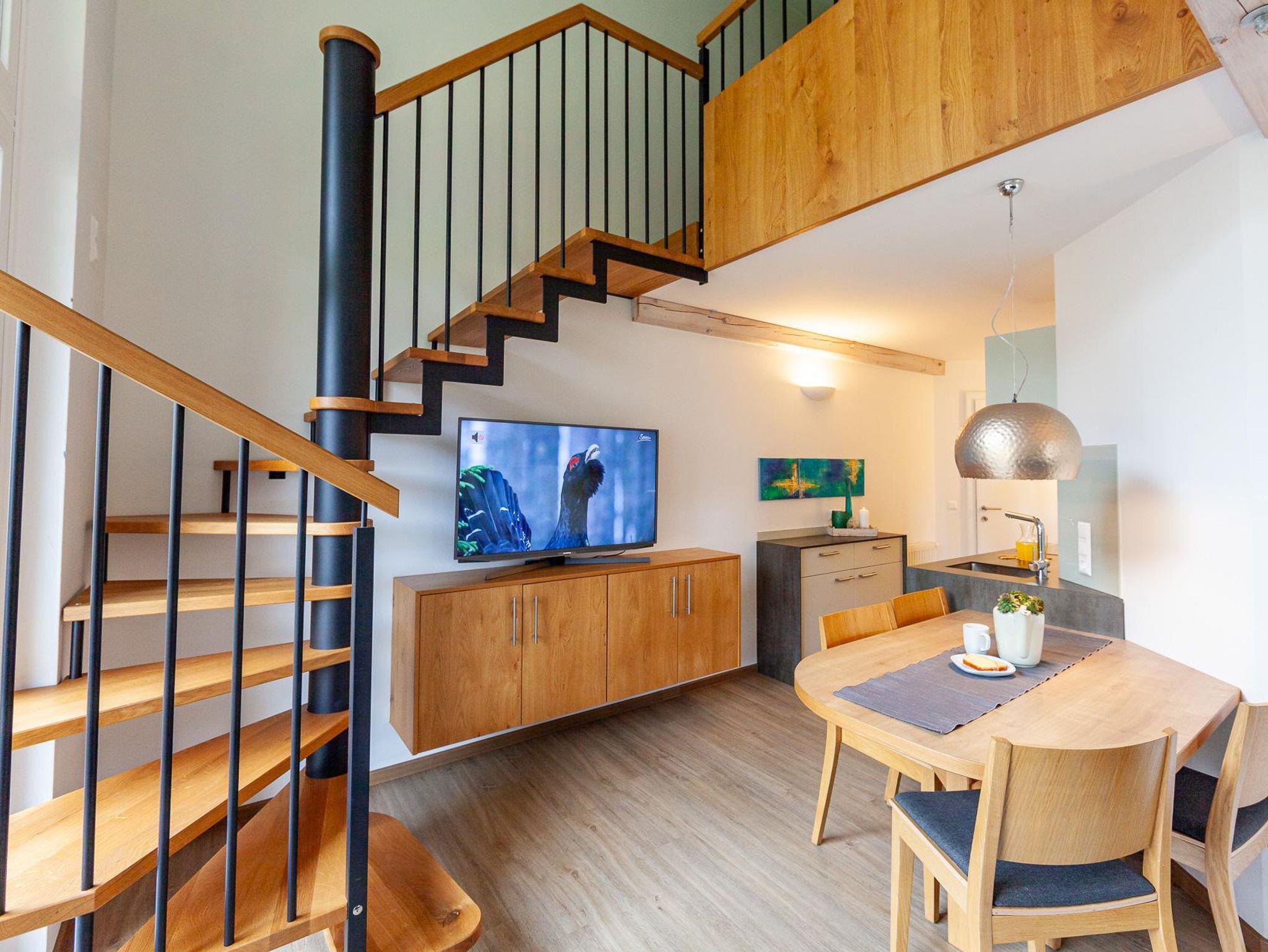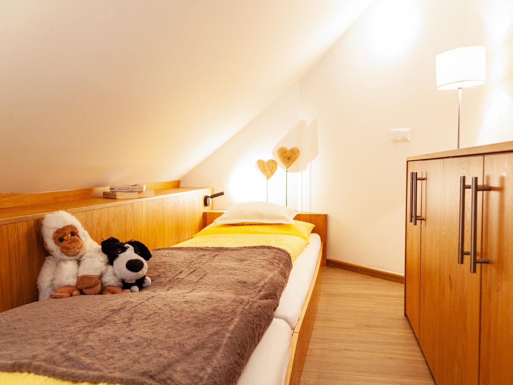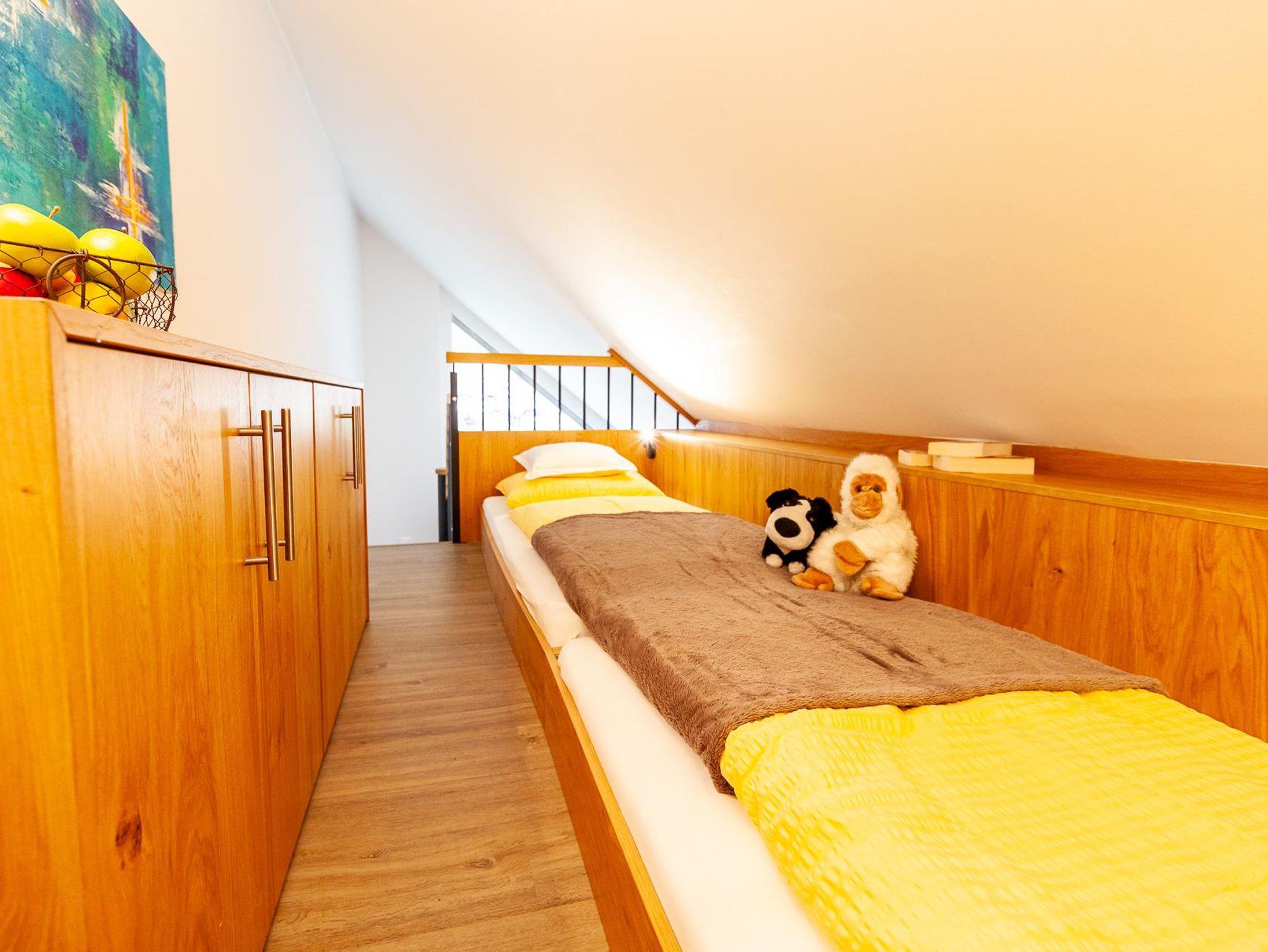 Eine besondere Charakteristik dieser beiden Wohnungen ist die offene Galerie im Wohnraum, die durch die Dachschräge geschaffen wurde. Auf der Galerie befinden sich zwei Betten (hintereinander gereiht), die den Wohnbereich zusätzlich bereichern.