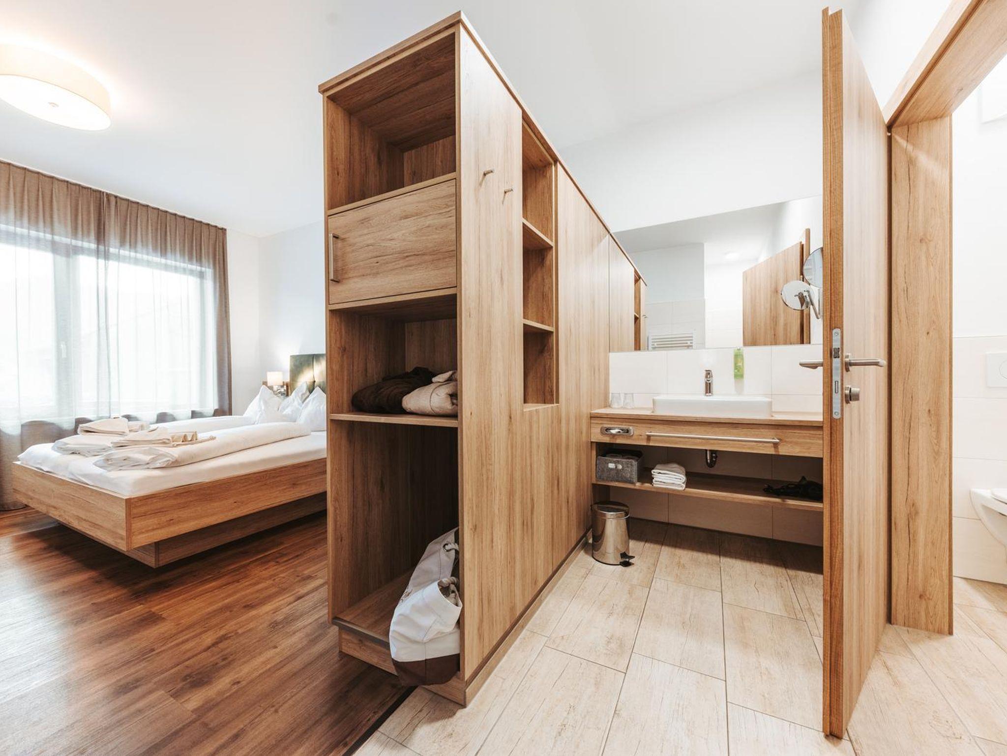 • 2 gemütliche Schlafzimmer mit Doppelbett, Bad mit Dusche, WC, Fön