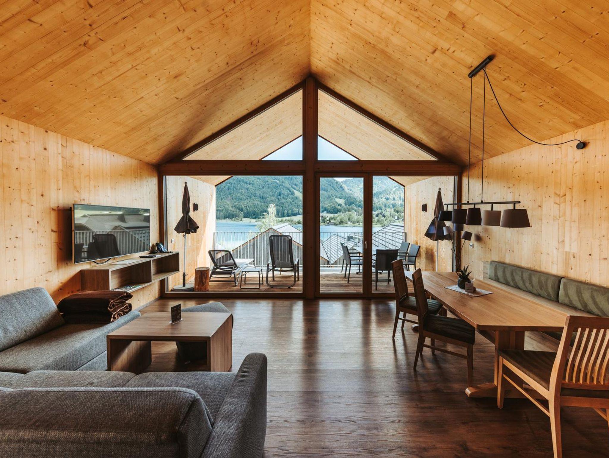 Das SeeChalet Familienzeit mit dem separaten Schlaf- und Wohnzimmer auf zwei Ebenen bietet ausreichend Platz für Groß und Klein. Es ist ein wahres Prachtstück, da ganz besonders auf das edle Design und die schlichte Eleganz geachtet wurde. Die Die verwendeten Farben und unbehandelte Hölzer harmonieren perfekt und verleihen den Räumen eine persönliche Note, die zum Wohlfühlen einlädt. Für ganz besondere Urlaubsmomente sorgt der unverbaute Seeblick von der privaten Terrasse und der überdachten Süd-Loggia.