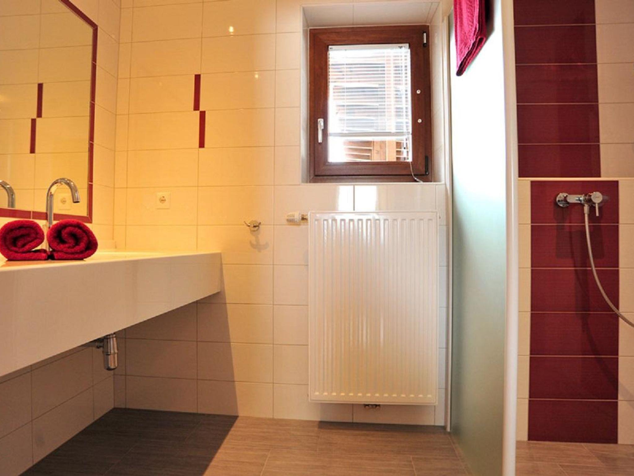 Die FEWO hat 1 geräumiges Elternschlafzimmer, ein kleineres Kinderschlafzimmer , einen Vorraum, geräumige Dusche, WC extra, einen tollen Wohnraum mit eingebauter Küche, Esstisch, Kachelofen, Sofa zum gemtülich relaxen, Fernseher, W-Lan.