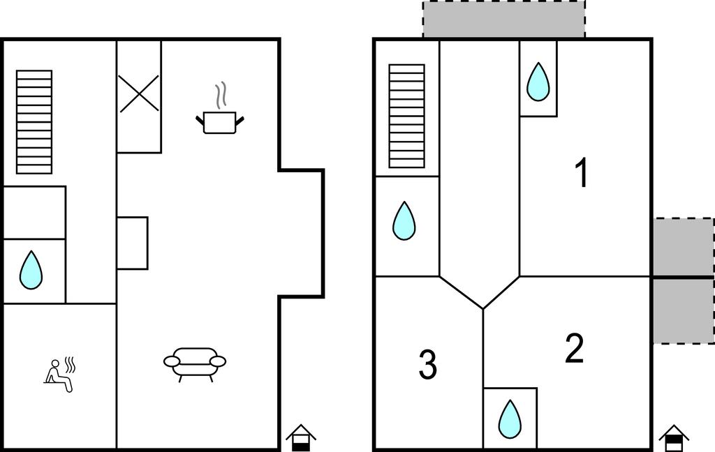 Soveværelse (nr. 1) - 1 Soveplads. (Enkeltseng(e)). 2 Sovepladser. (Dobbeltseng(e)).