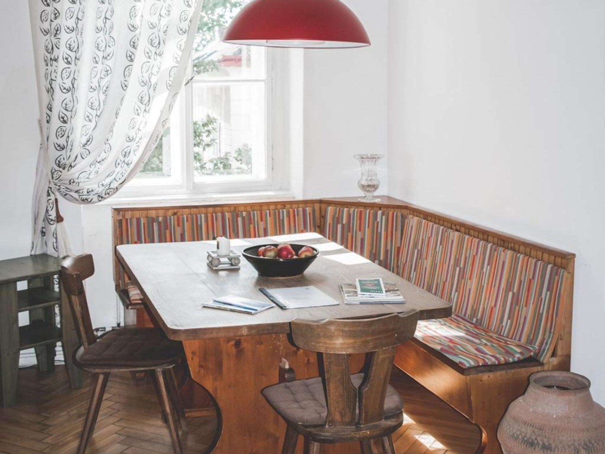 Unser Apartment bietet eine große Wohnküche mit offenem Kamin (Komplettküche inkl. Geschirrspüler), 2 Schlafzimmer, ein geräumiges Bad inkl. WC und Waschmaschine. Bettwäsche und Handtücher werden bereitgestellt. WLAN kann kostenlos benützt werden. Geheizt wird komfortabel über eine Zentralheizung. Für wohlige Wärme steht aber auch ein offener Kamin zur Verfügung. Die Mitbenützung des Innenhofgartens (inkl. überdachter Fahrradplätze) ist möglich. Aus unserer umfangreichen Bibliothek und Spielothek können Sie sich gerne etwas ausborgen. Es handelt sich um eine Nichtraucher-Wohnung. Haustiere sind nicht erlaubt.