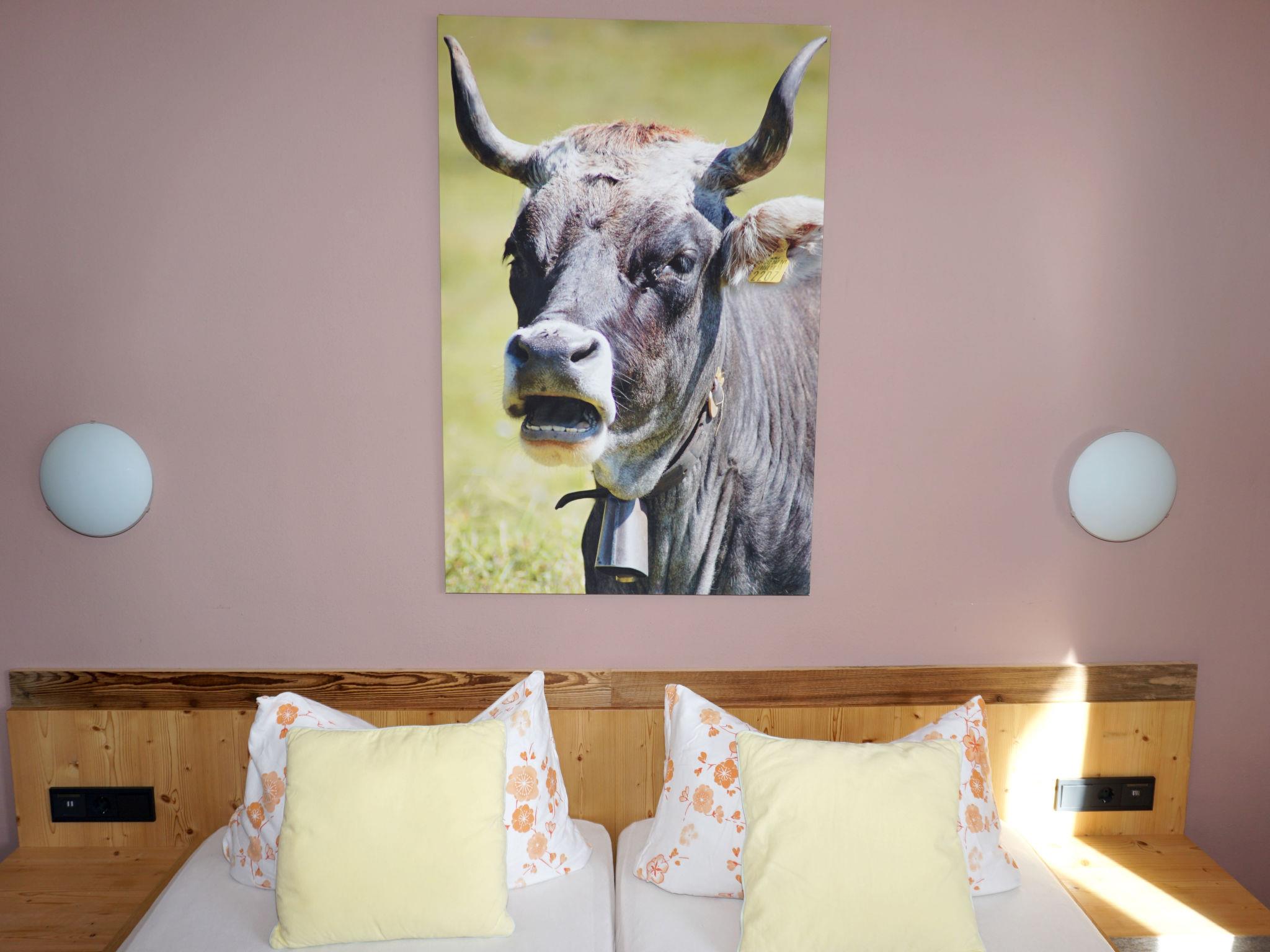 "Walter", 3-room apartment 75 m2 on 1st floor. Beautiful and cosy furnishings: entrance hall. 1 double bedroom. 1 room with 1 bed and 1 double bed. Kitchen-/living room (oven, 4 ceramic glass hob hotplates, toaster, kettle, microwave, freezer, electric coffee machine) with dining table, TV. Exit to the balcony. Shower/WC. 2 balconies, south facing position. Balcony furniture. Marvellous panoramic view of the mountains. Facilities: Internet (WiFi, free). Parking (1 car). Please note: non-smokers only. Smoke alarm.
