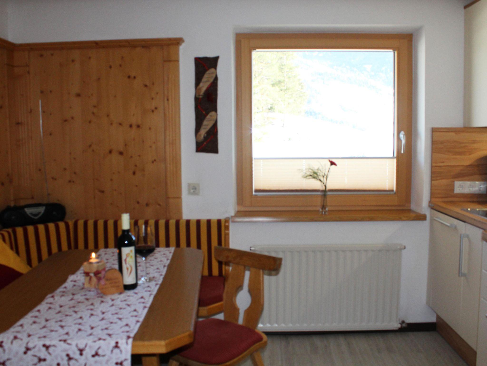 Unsere liebevoll eingerichtete Wohnung liegt im Erdgeschoss mit einem Vorgarten mit Blick auf unsere wunderschöne Bergwelt. Die Ferienwohnung ist top ausgestattet: Wohnküche mit Geschirrspüler, Backofen, 4-Platten Herd, Kühlschrank mit Gefrierfach, Espressomaschine (Kapseln im Haus erhältlich), Wasserkocher sowie einer gemütlichen Essecke. Der Wohnschlafraum wurde mit heimischem Altholz eingerichtet, der Bettschrank ermöglicht Ihnen ein vollwertiges Doppelbett und Kabel-TV. Badezimmer mit Dusche, WC, Spiegel und Waschtisch. Ein gemütliches Schlafzimmer mit einem Doppelbett und einem Sofabett. Sowie ein Vorraum mit Spiegel.