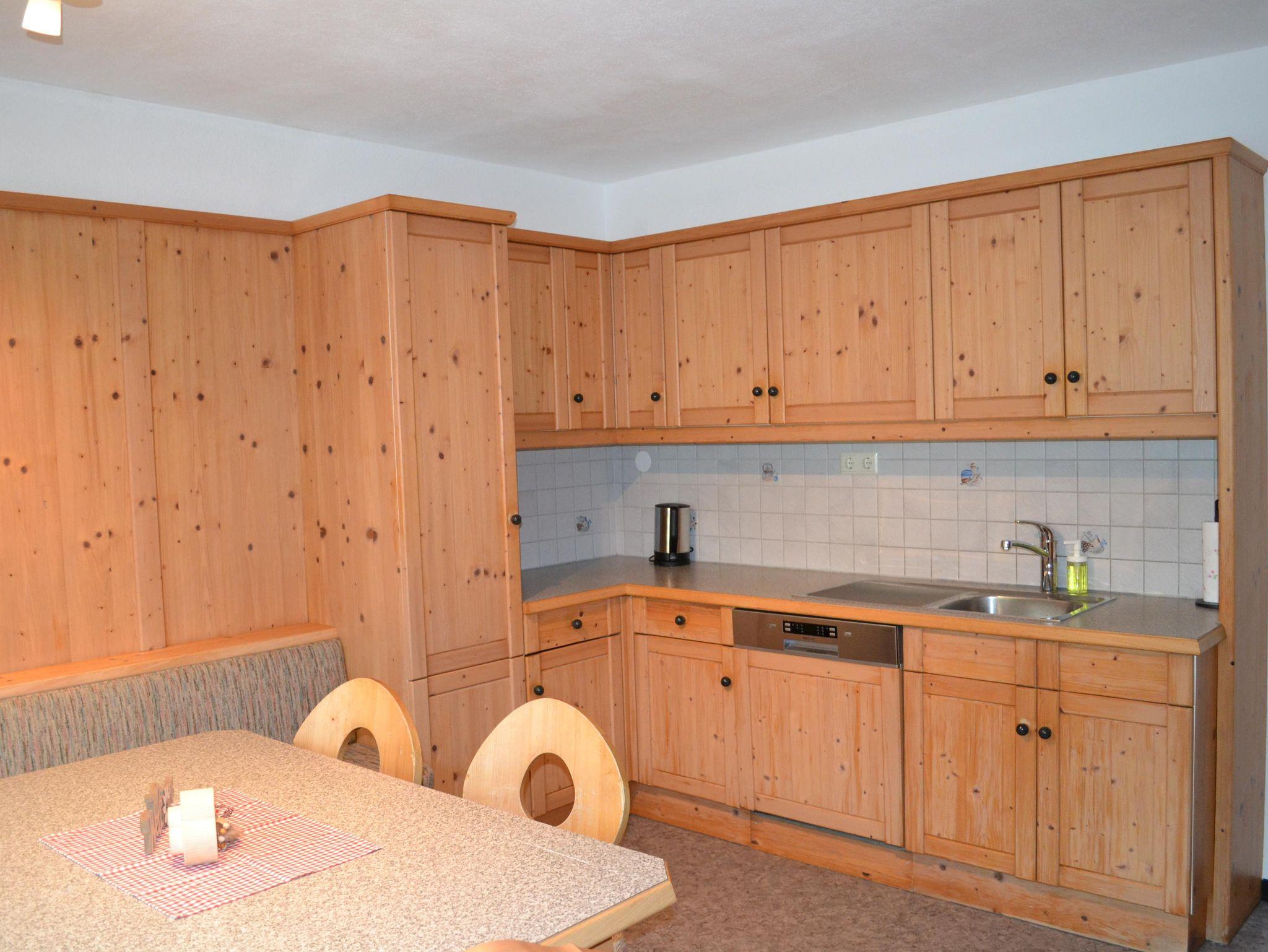 Ein Bad/WC und ein Bad mit separatem WC. Die Küche ist ausgestattet mit Elektroherd, Backofen, Kühlschrank, Geschirrspüler, Kaffeemaschine und Teekocher.
