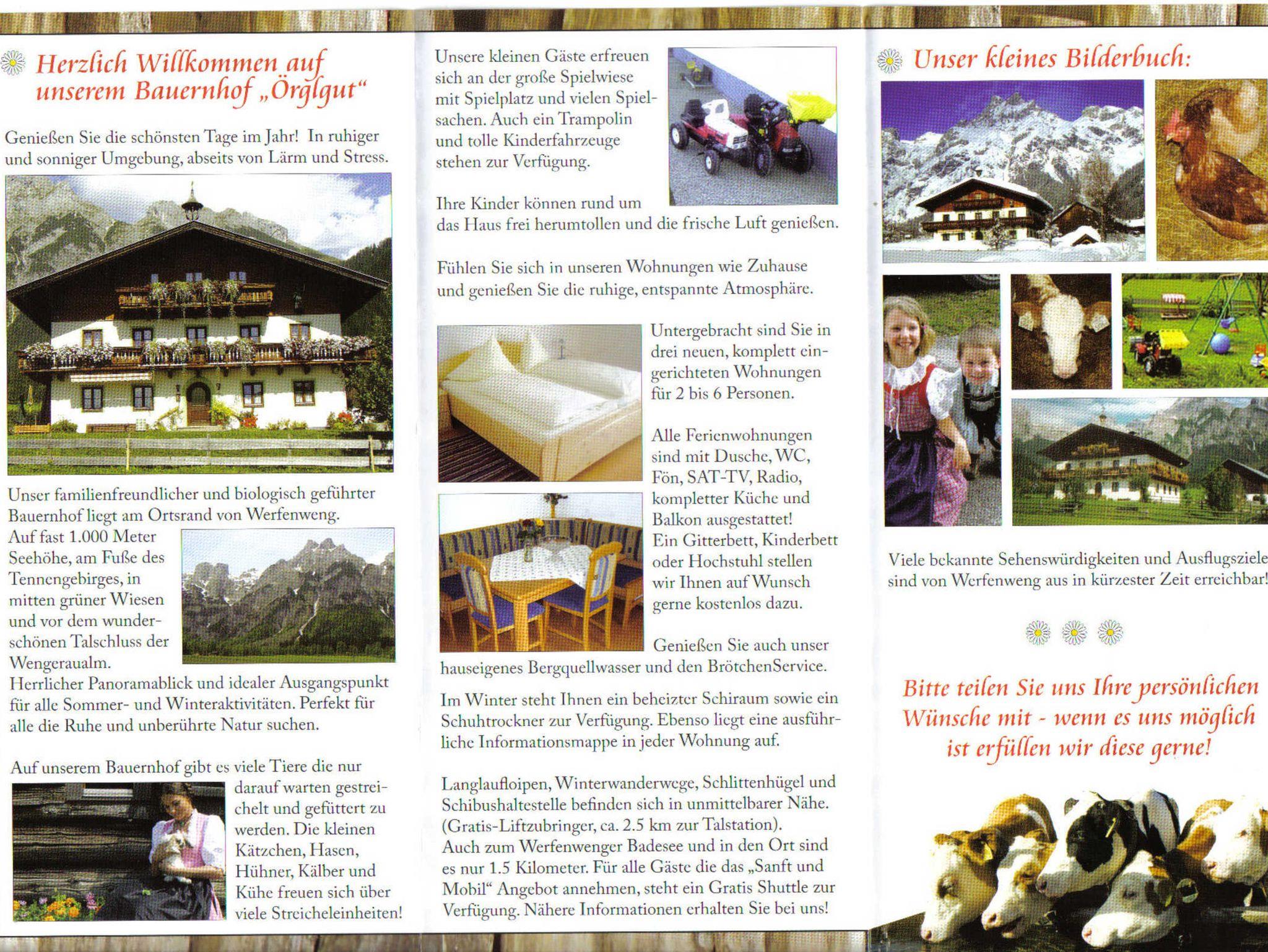 Viele Ausflugsziele und Sehenswürdigkeiten in der näheren Umgebung (Eisriesenwelt Werfen, Burg Hohenwerfen, Liechtensteinklamm, Bogenschießparcour, Badesee und Thermen, Sommerrodelbahn, Lammerklamm, Salzbergwerk Hallein, Stadt Salzburg, Gollinger Wasserfall, Wildpark Ferleiten, Großglockner Hochalpenstraße uvm………..