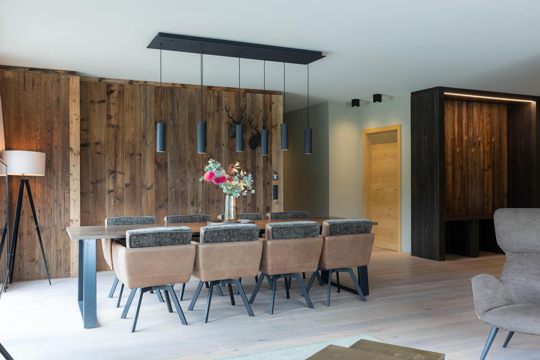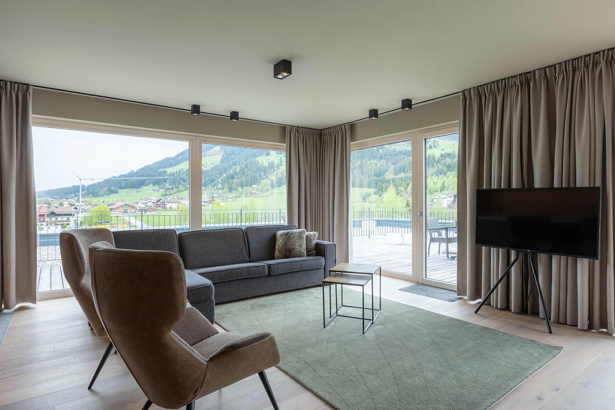 Westendorf ligger idyllisk i Brixental-dalen, ca. 16 km fra Kitzbühel - mellem Kitzbühel-alperne mod øst og Zillertal-alperne mod vest. Det perfekte udgangspunkt for sportseventyr, afslappende dage i naturen og hyggelige stunder i bjergene. Denne eksklusive penthouse på 138 m² tilbyder maksimal komfort for op til 8 personer. Udstyret med 3 soveværelser, hvert med en boxspring-dobbeltseng, har boligen et opholdsrum med udtrækssofa og kabel-tv samt 3 badeværelser og et fuldt udstyret køkken. Højdepunktet i denne suite er den 170 m² store balkon med spektakulær udsigt. To eksklusive wellnessområder byder på ren afslapning (opvarmet udendørs pool, infinity-pool, sauna, biosauna, dampbad eller infrarød kabine). Rolige åndehuller som vinterhaven, stilfulde afslapningsrum og en solrig plæne til solbadning med udsigt gør feel-good-oplevelsen perfekt. For aktive gæster er der et moderne fitnessrum i stueetagen. WLAN er gratis tilgængeligt. 1 sæt linned (sengelinned, 1 håndklæde & 2 badehåndklæder / en gang pr. person og ophold) og slutrengøring (en gang pr. ophold) er også inkluderet. Kæledyr er tilladt efter anmodning. Alle billeder er eksempler. Hver bolig er individuelt indrettet.