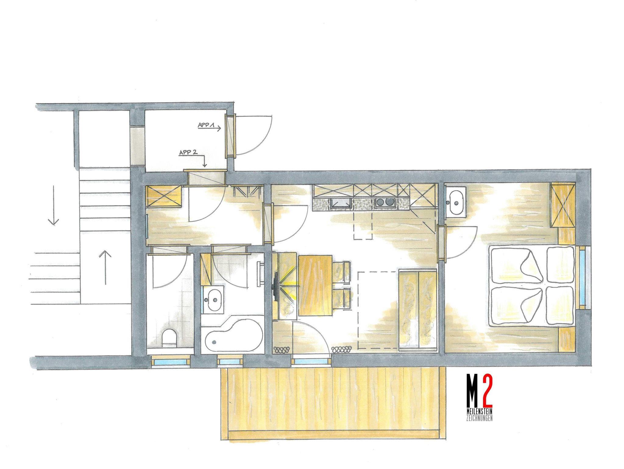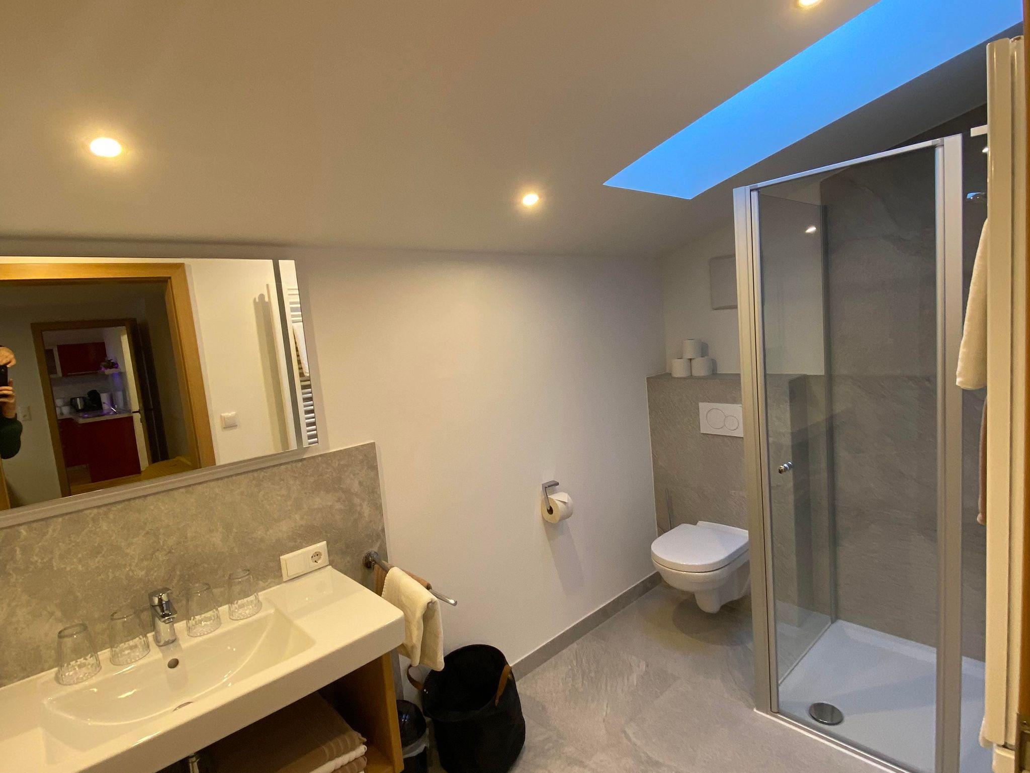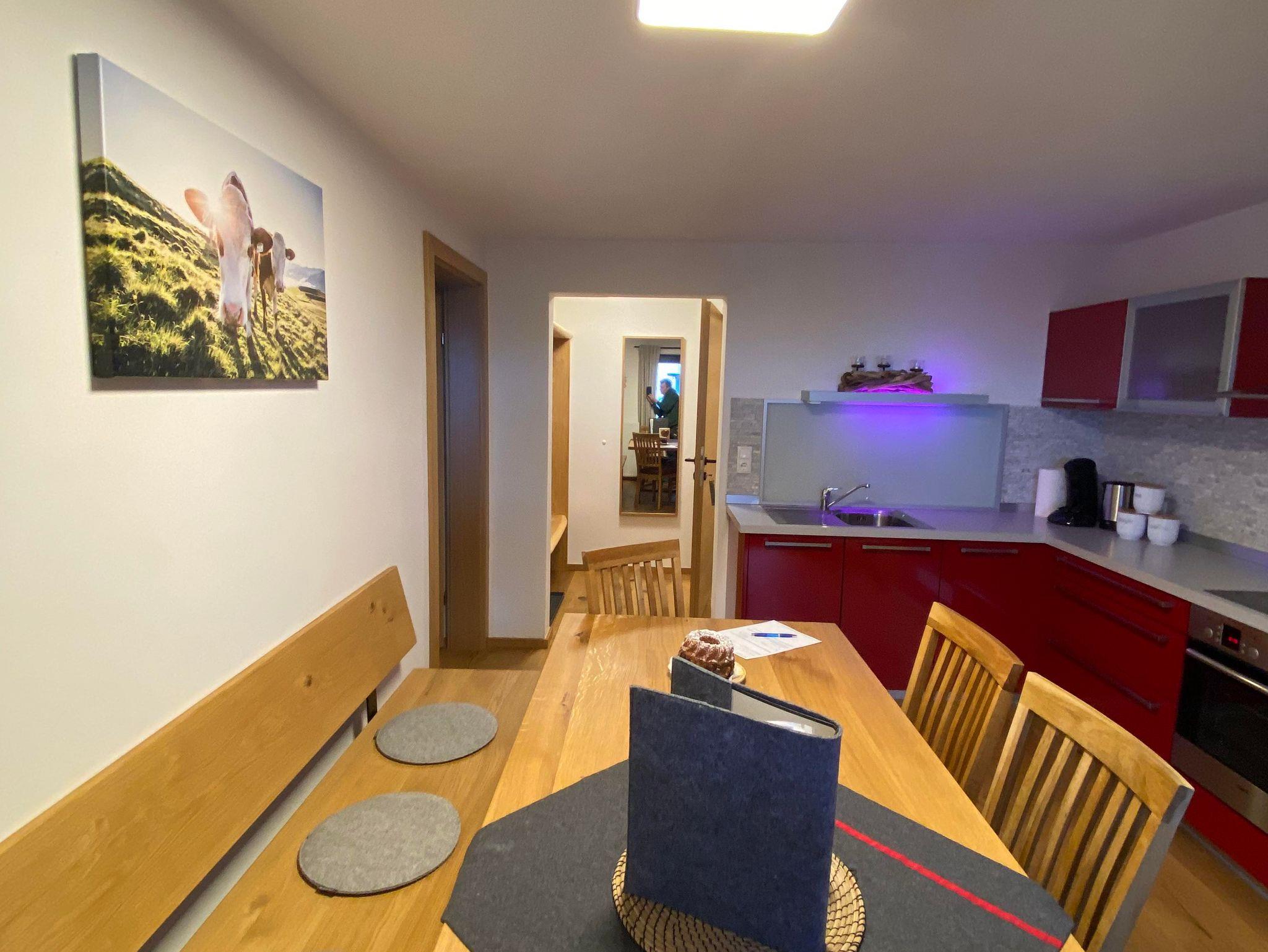 40 m², separates WC, Bad mit Badewanne und Handtuchtrockner. Voll ausgestattete Wohnküche mit Geschirrspüler, Herd, Wasserkocher, Kaffeemaschine und Kühlschrank mit Gefrierfach. Balkon mit Blick auf die Hohe Salve. Ausziehcouch.