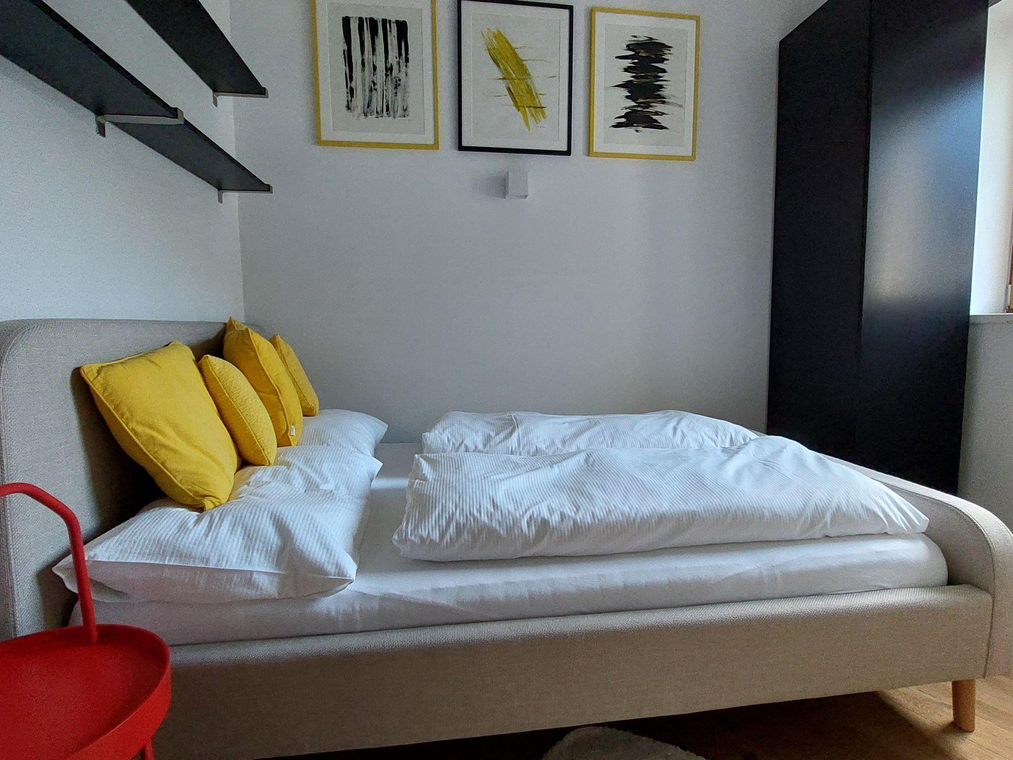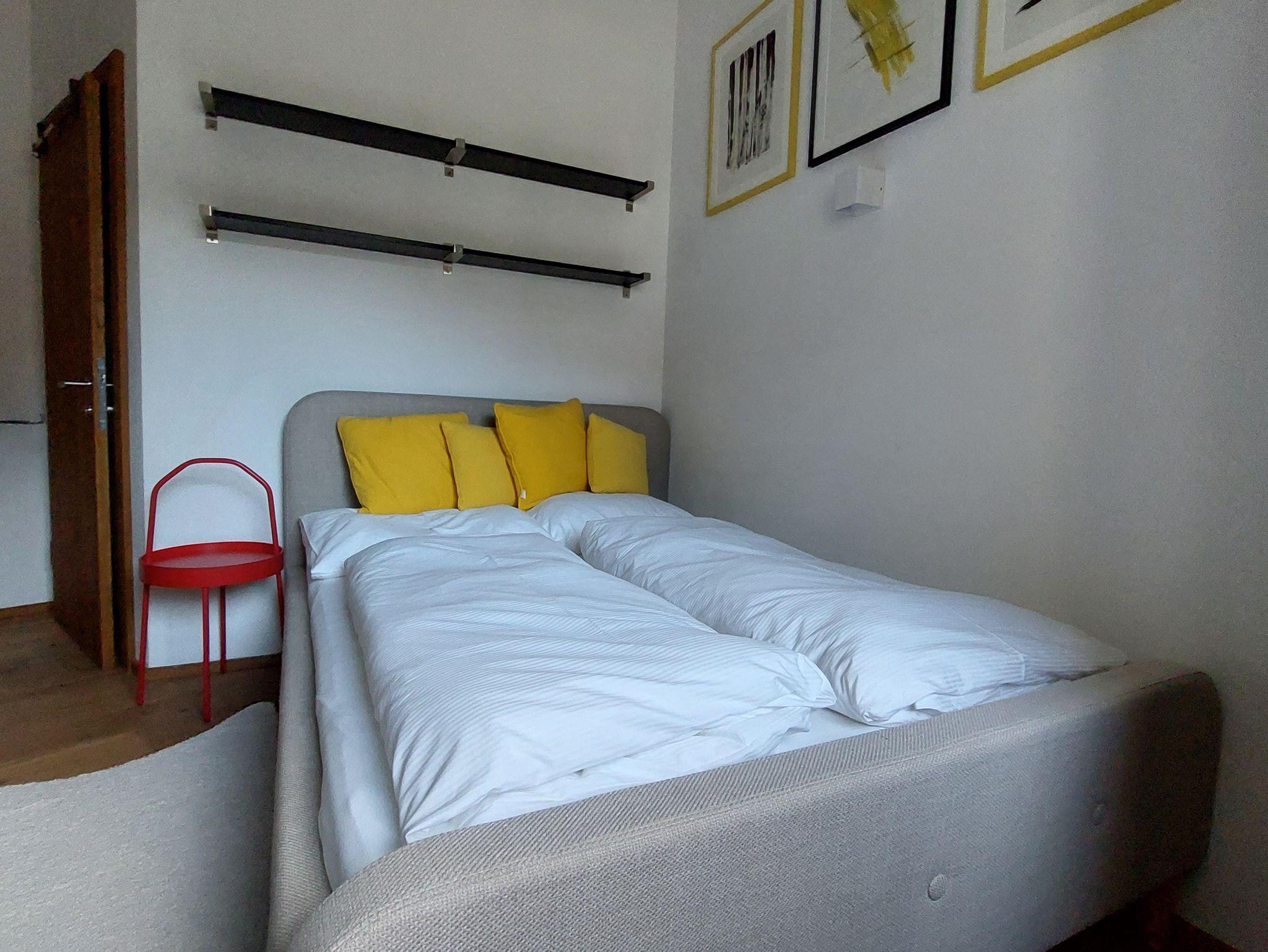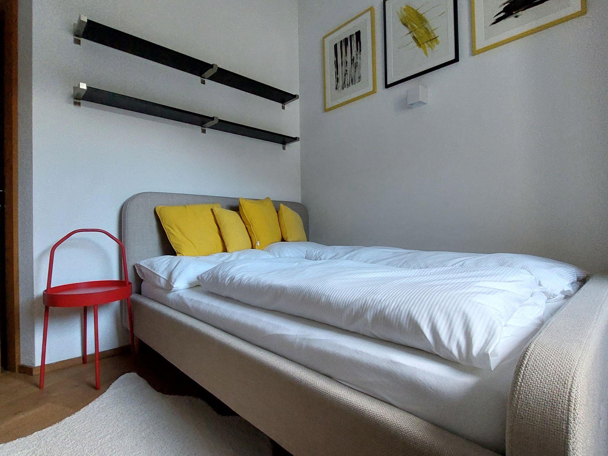 Dann buchen Sie gerne das Zimmer FRANZ“ dazu. Das Zimmer mit 12 m2 befindet sich im 1. Stock des Hauses und verfügt über 1 Doppelbett (160 cm), Dusche und WC.