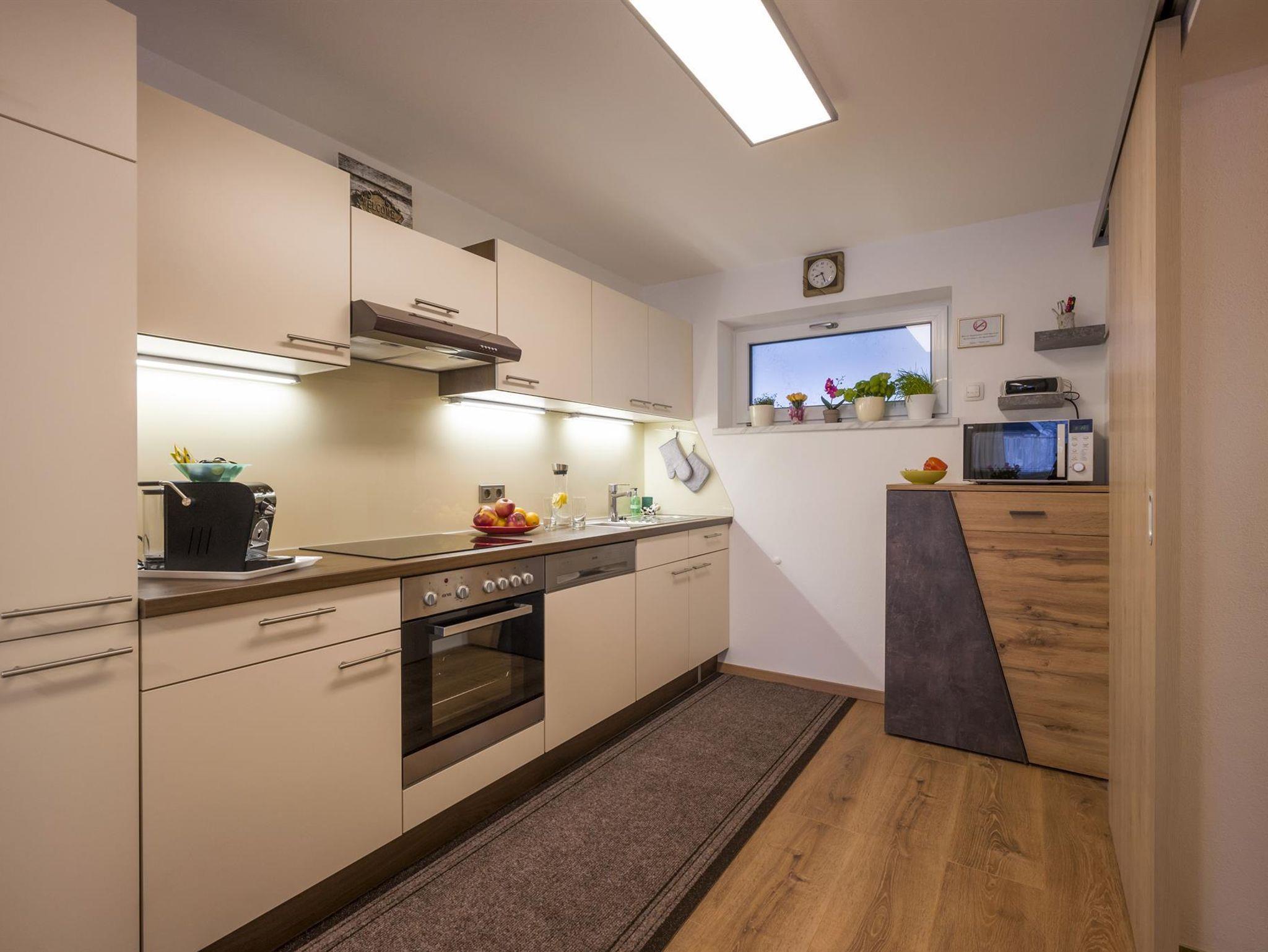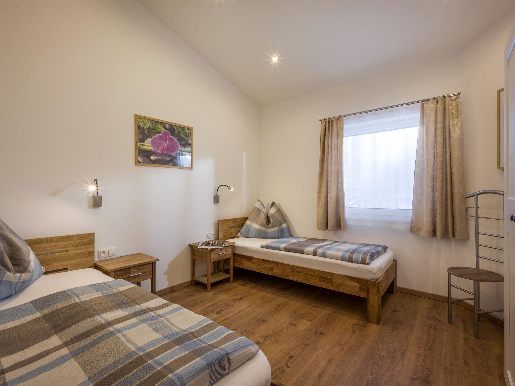 1 Appartement, ca. 70m², für bis zu 4 Personen. Doppelbettzimmer, Einzelzimmer (2 Einzelbetten), Wohnzimmer mit Schlafcouch, Küche, Abstellraum, 2 Bäder mit begehbarer Dusche und WC, seperates WC im EG, SAT-TV, 2 Autoabstellplätze