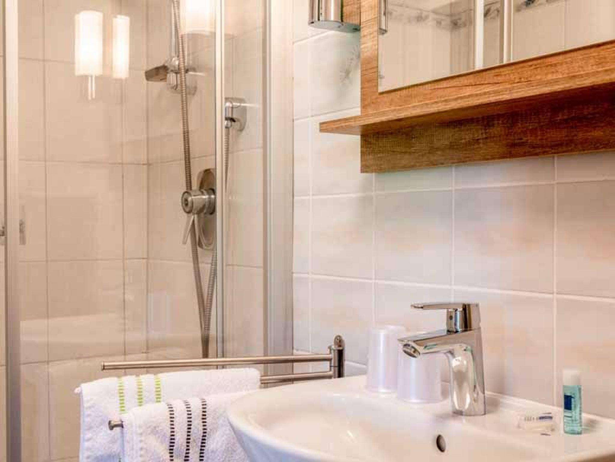 Das Bad ist mit Dusche und WC ausgestattet. Im Zimmer ist gratis W-LAN verfügbar. Zustellbett für 3. Person möglich
