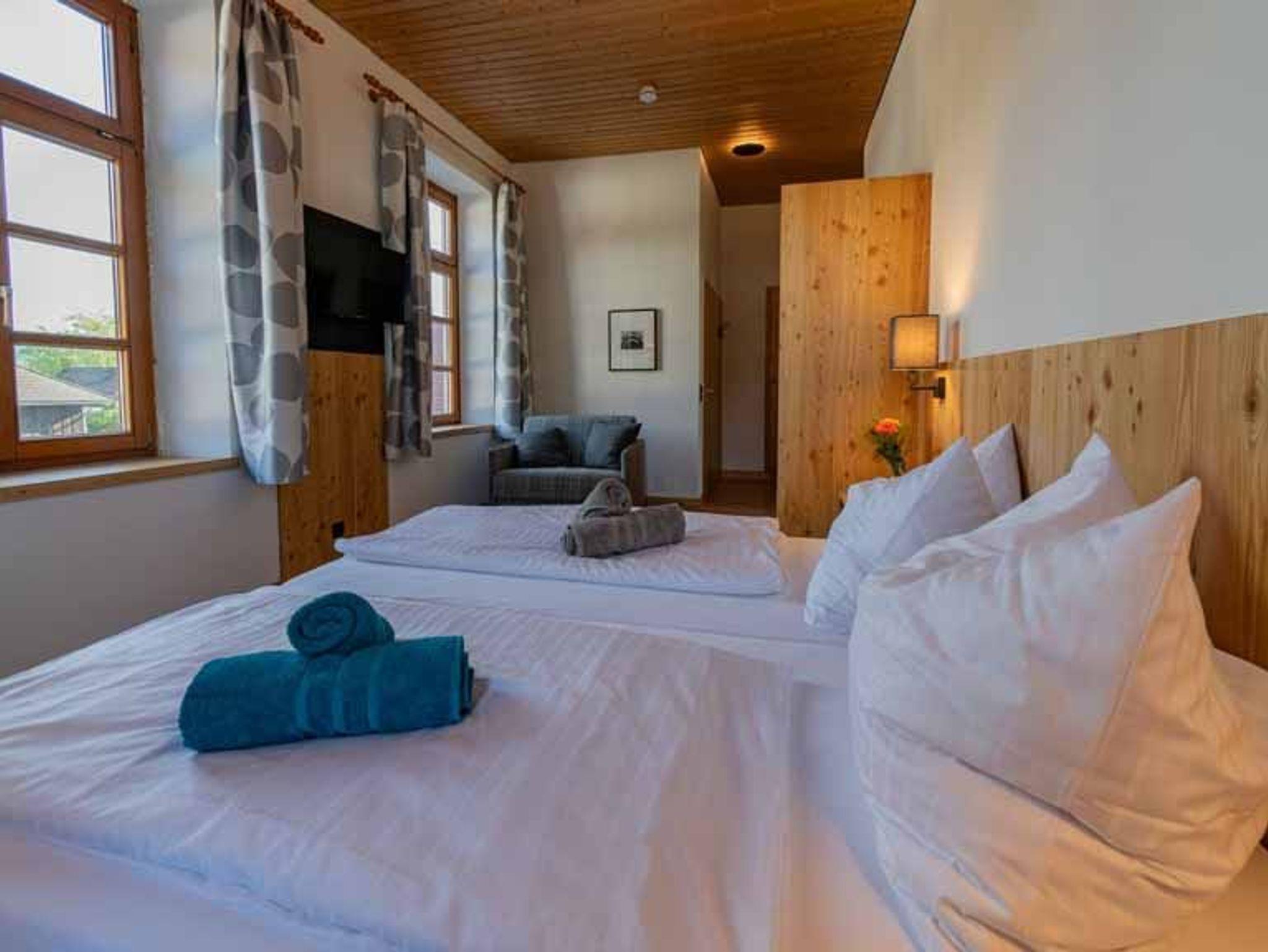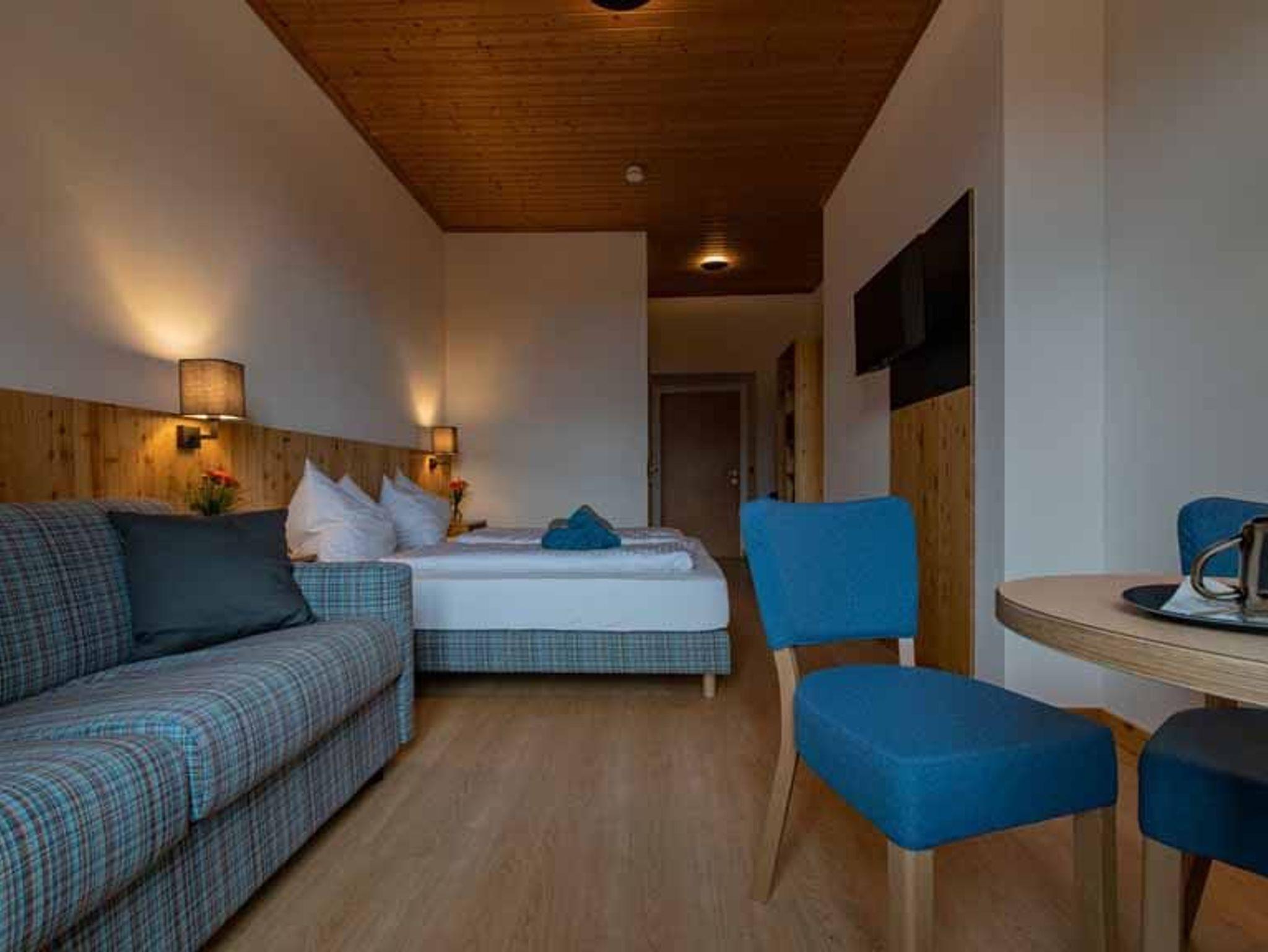 All unsere Familienzimmer befinden sich im 1. Stock unserer Pension. Dieses ist ein sehr helles, freundliches, neu renoviertes Zimmer mit Doppelbett, Sitzgelegenheit und Schlafsofa für 1 Person. In diesem Zimmer kann bei Bedarf ein Gitterbett beigestellt werden. Alle Familienzimmer sind ausgestattet mit Kabel-TV, Wasserkocher und Schranksafe. Das Badezimmer ist mit Dusche, WC und einem Föhn ausgestattet.