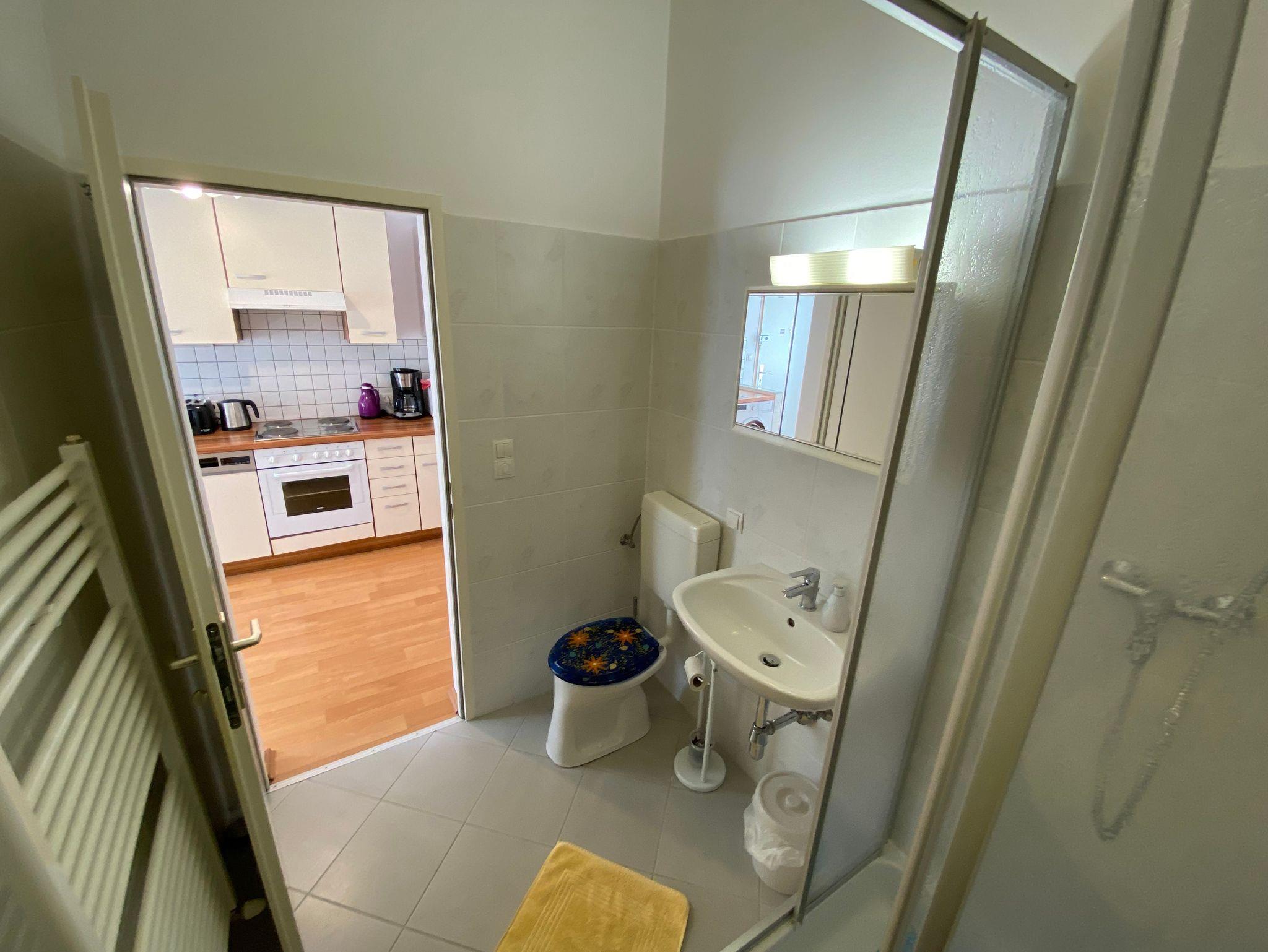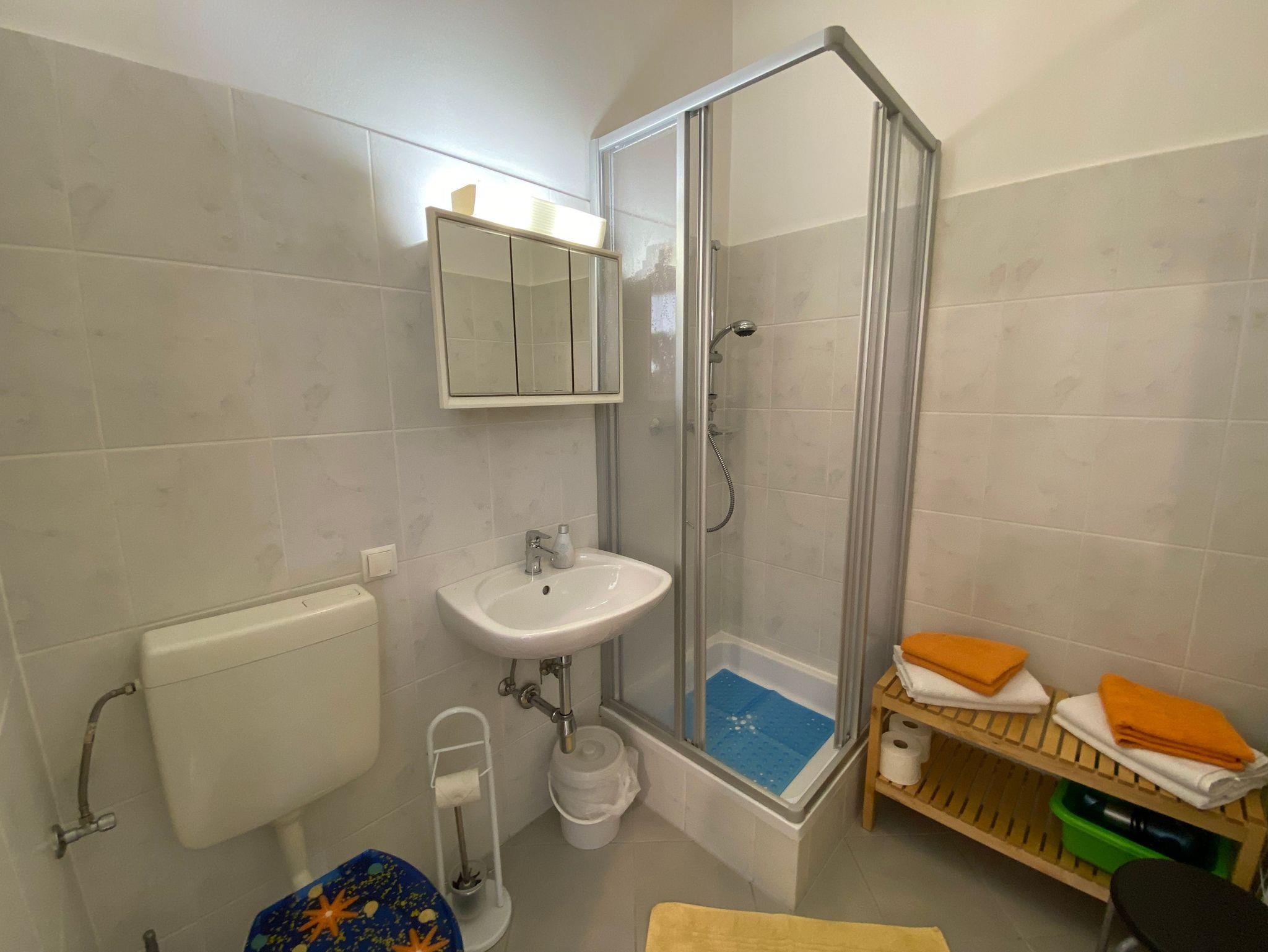 WC & Bad mit Dusche, Waschtisch, Spiegelschrank & Haarfön