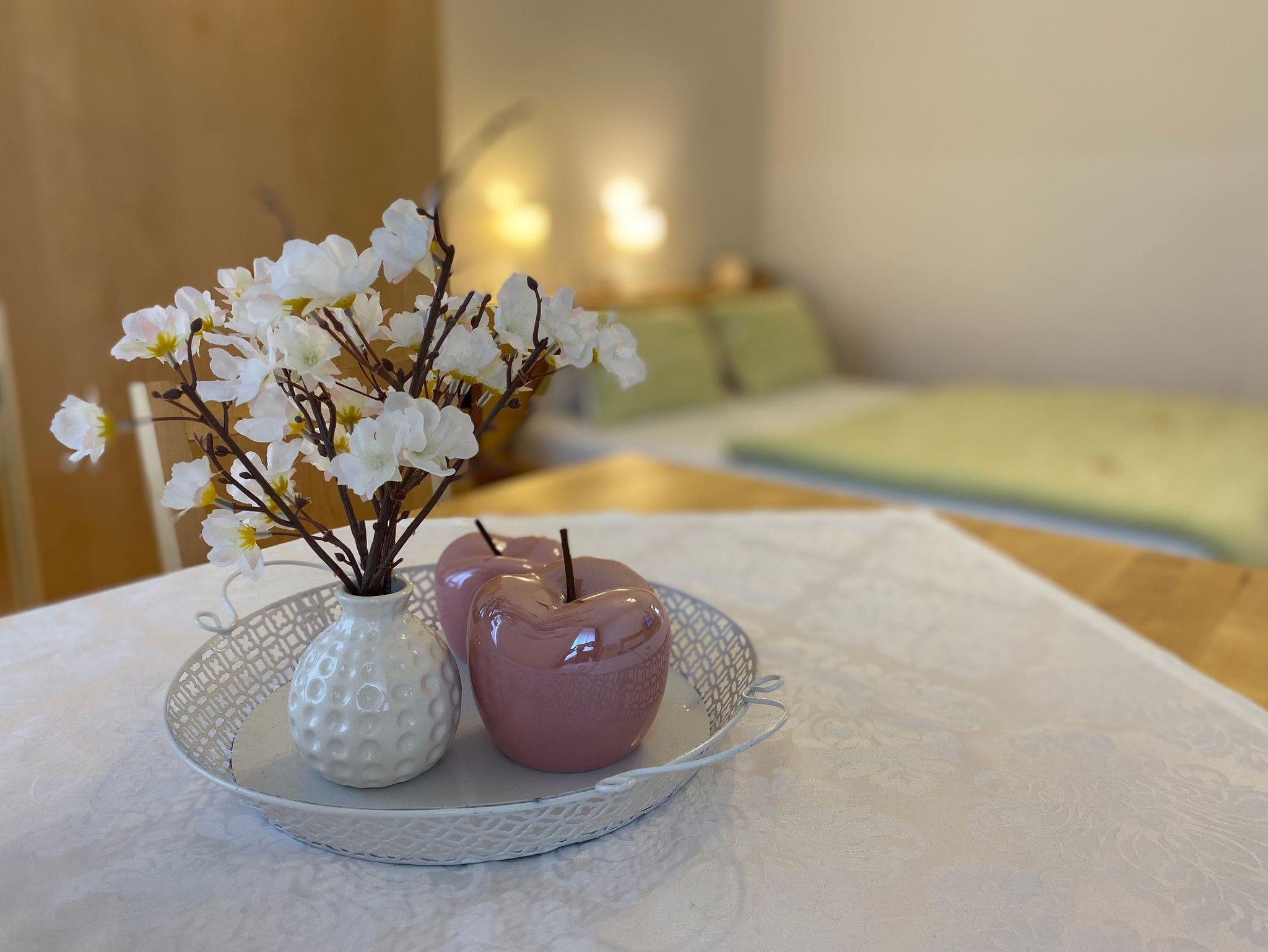 Bettwäsche und Handtücher sind im Appartement vorhanden. Bei Bedarf stellen wir Ihnen auch gerne ein Kinderbett (bis 3 Jahre), Hochstuhl, sowie Bügeleisen und Bügelbrett kostenlos zur Verfügung.