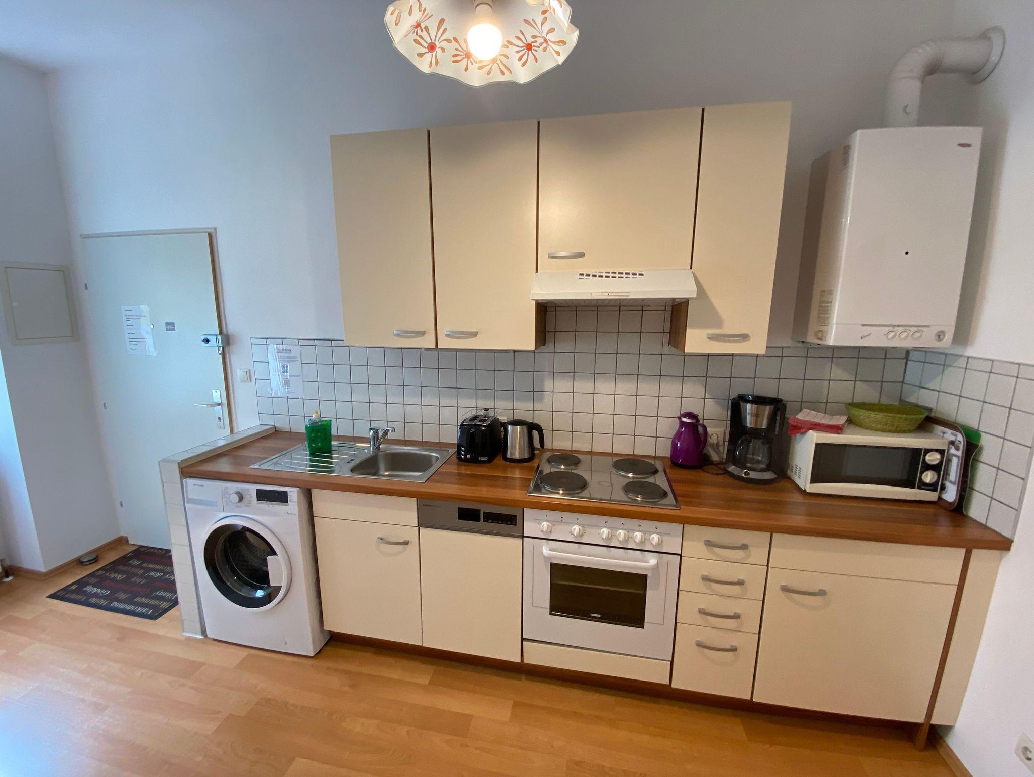 Kühlschrank mit Gefrierteil, Waschmaschine, Kaffeemaschine, Wasserkocher, Toaster sowie allen weiteren benötigten Utensilien etc.