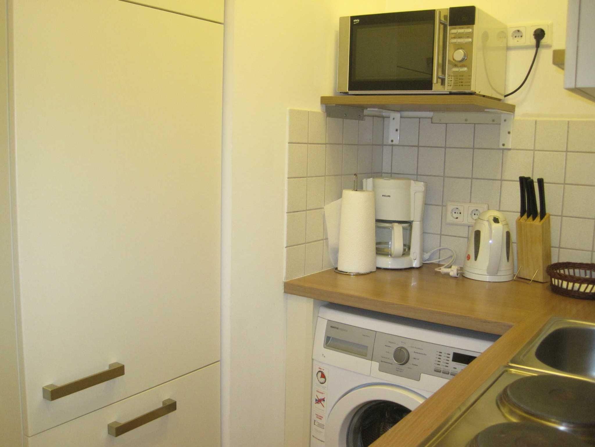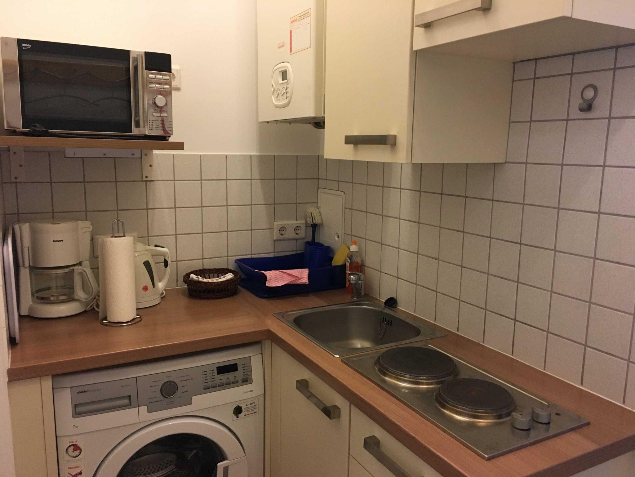 Kühlschrank mit Gefrierteil, Waschmaschine, Kaffeemaschine, Wasserkocher, Toaster sowie allen weiteren benötigten Utensilien etc.