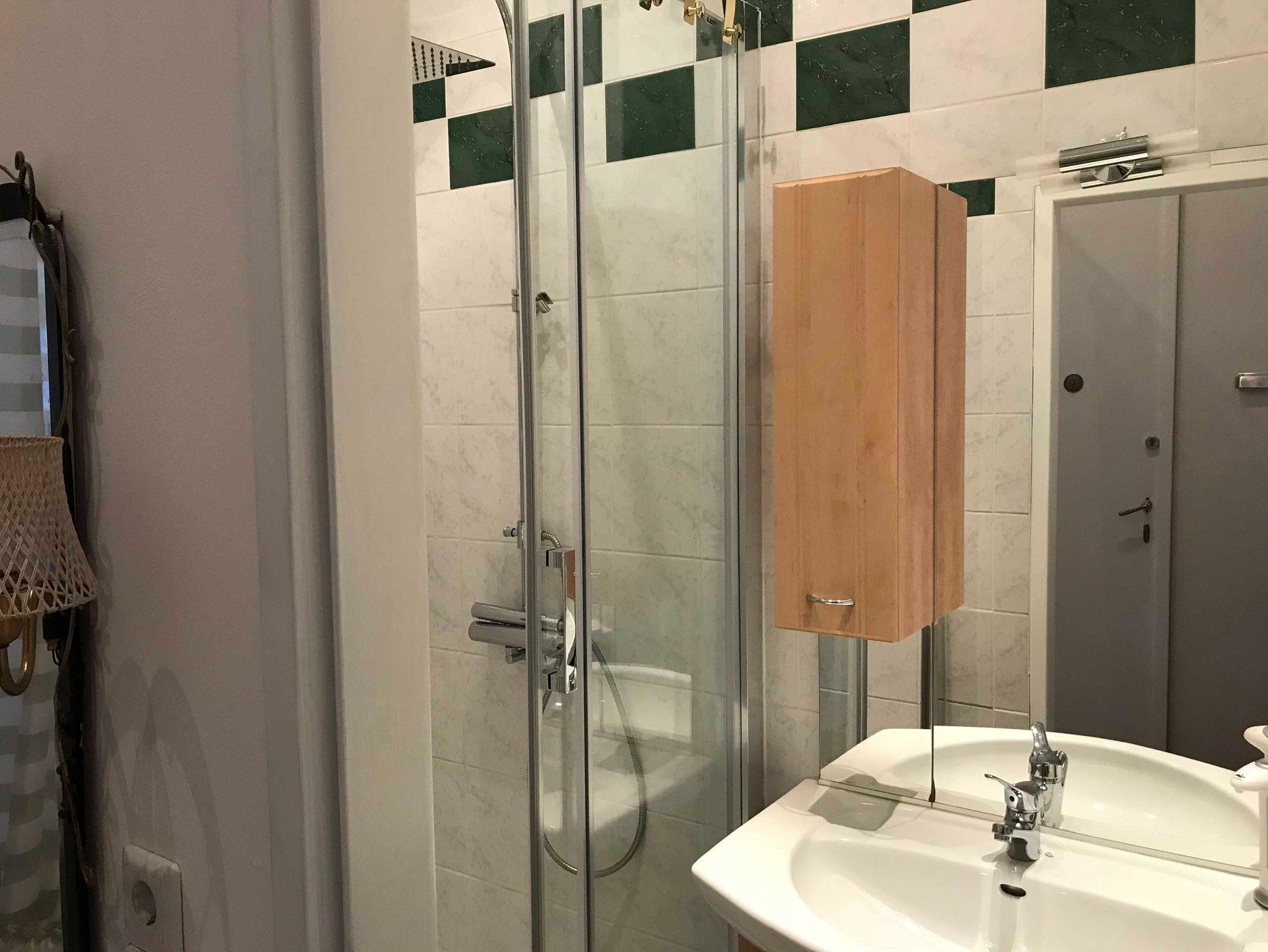 Unsere komfortabel ausgestattete 88m² große Nichtraucher-Ferienwohnung verfügt über Vorzimmer, Küche mit Essplatz, Wohnzimmer mit gemütlicher Kaminecke und ausziehbarem Schlafsofa, Schlafzimmer mit einem Doppelbett und einem Einzelbett, Bad und separates WC.