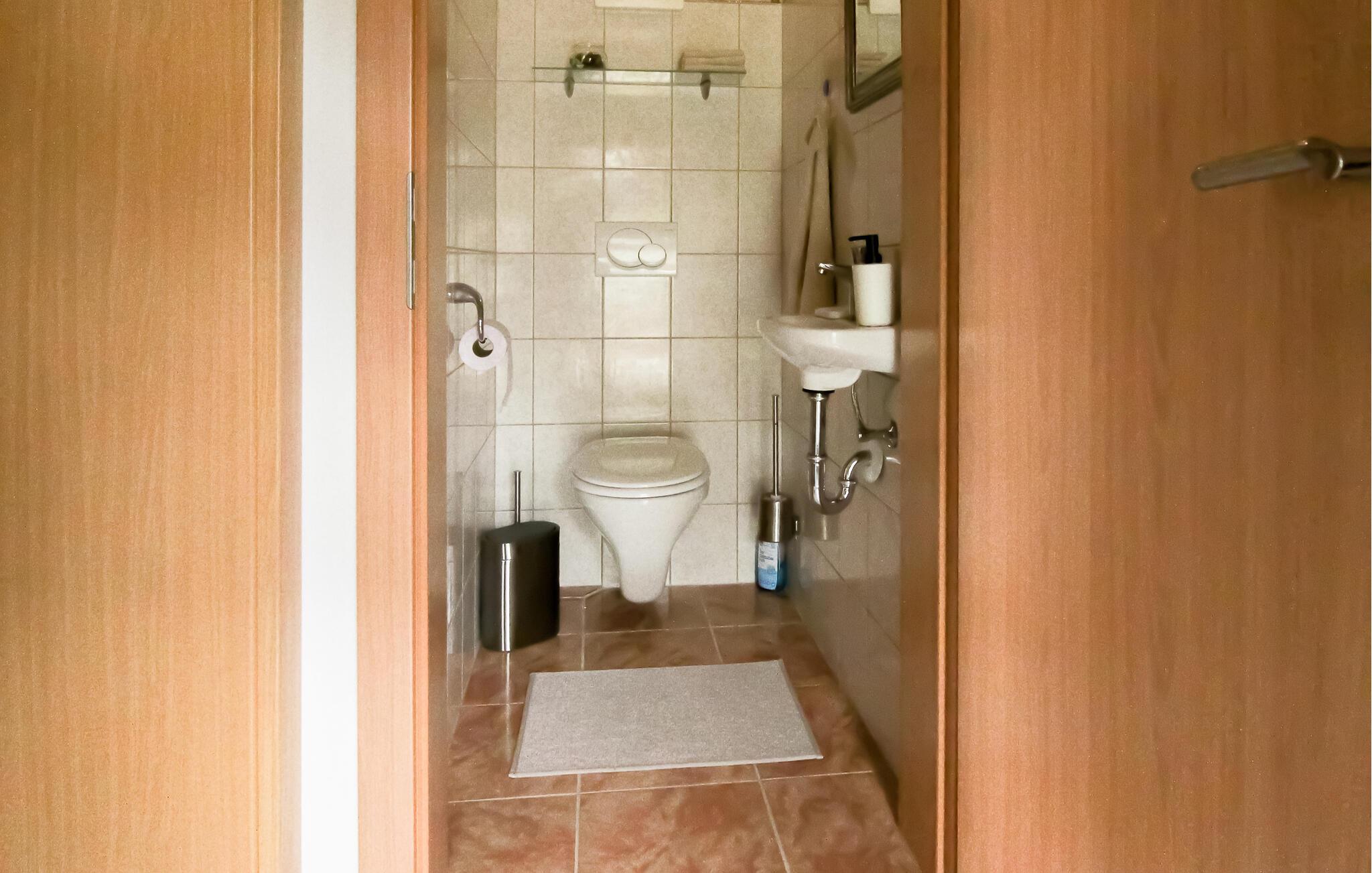 Badeværelse (nr. 1) - WC. Varmt og koldt vand. Bruser og badekar