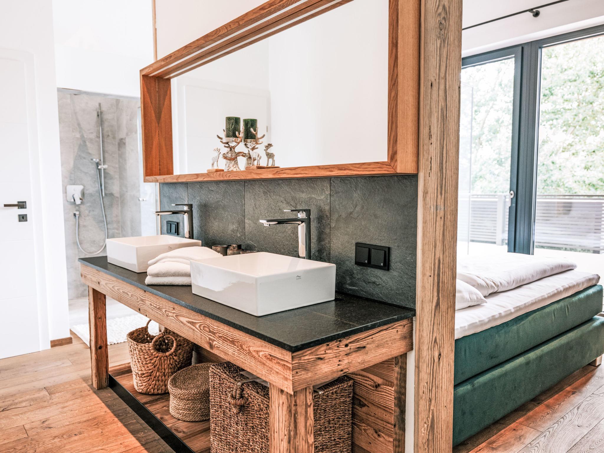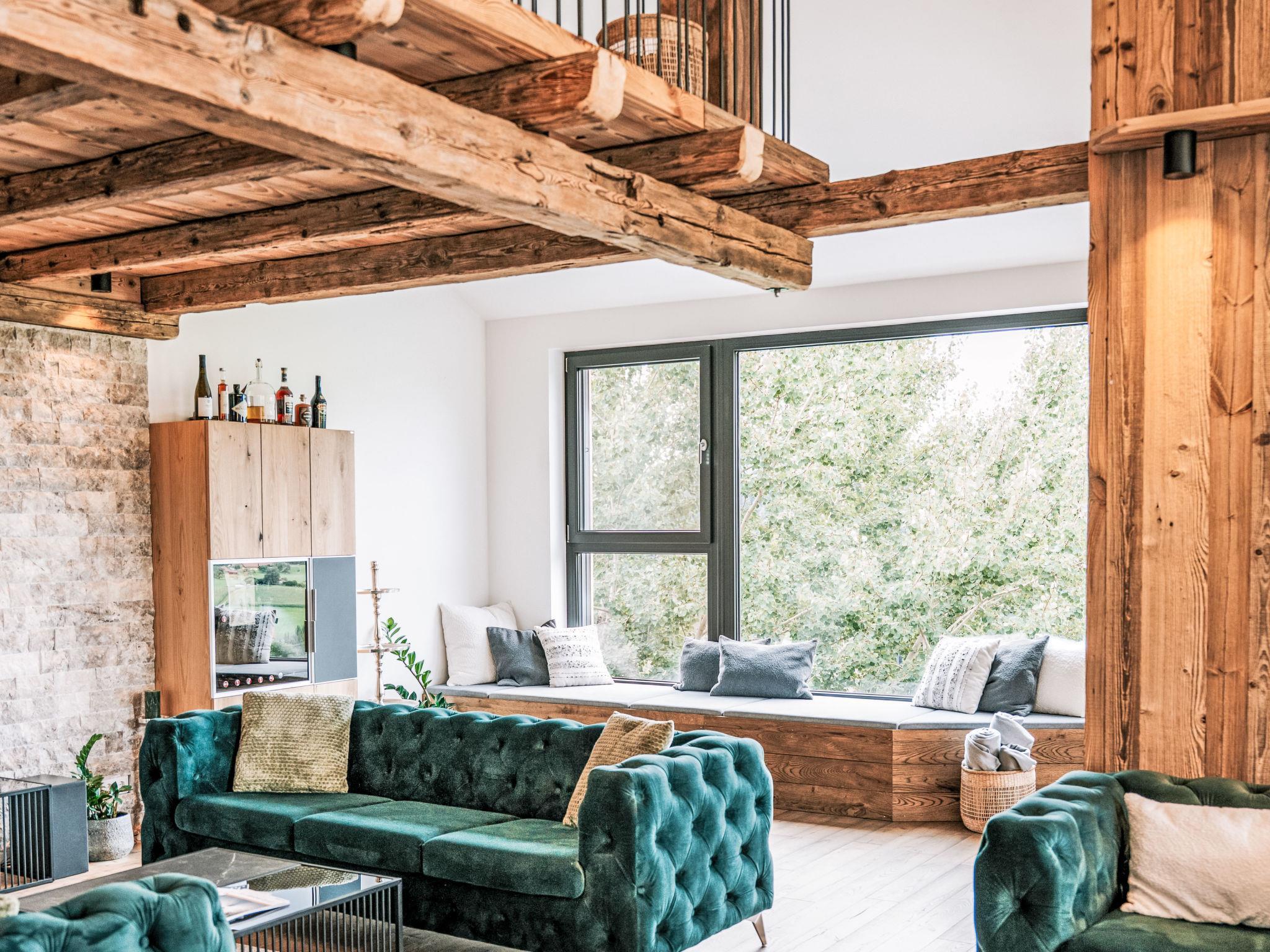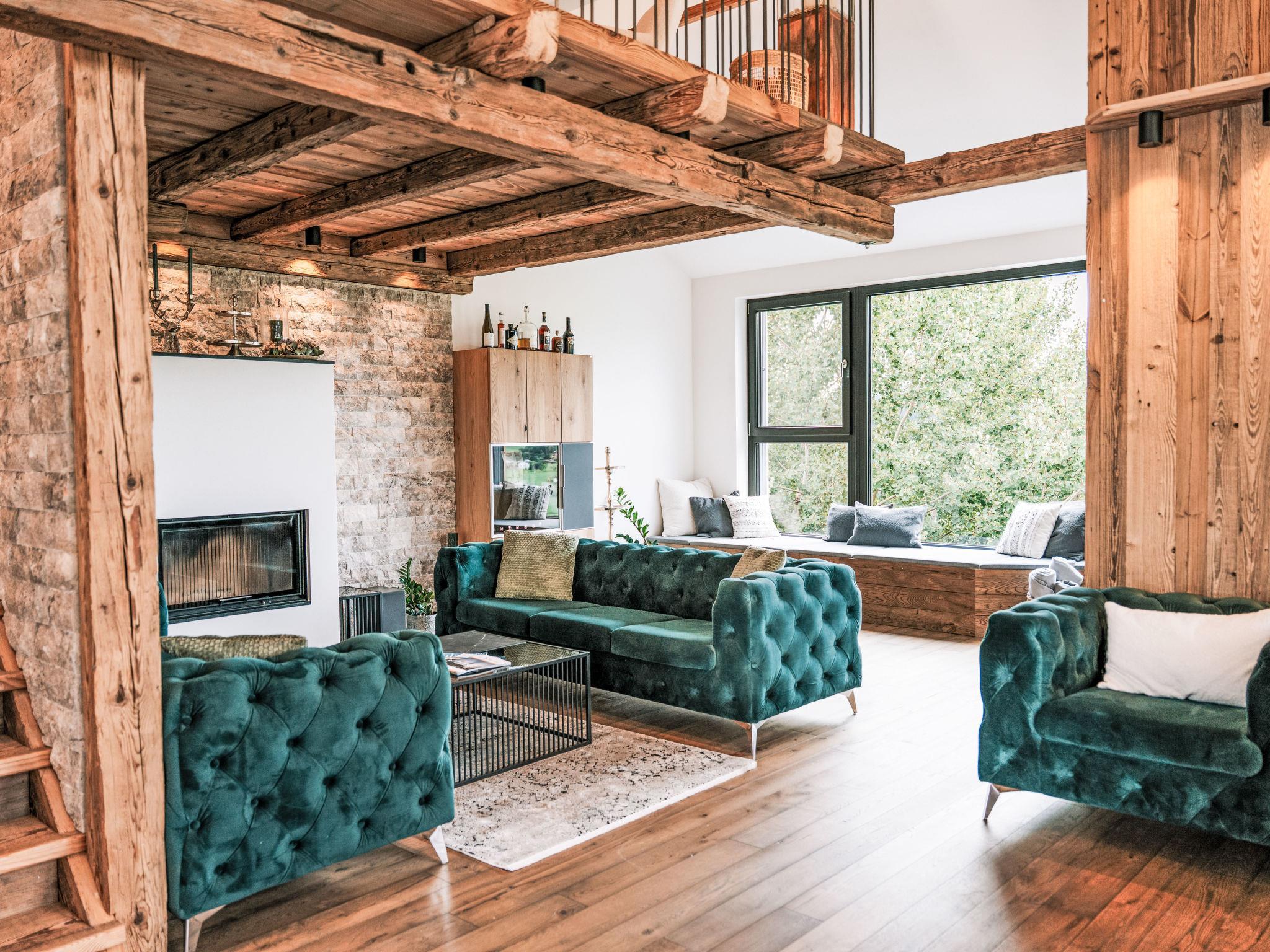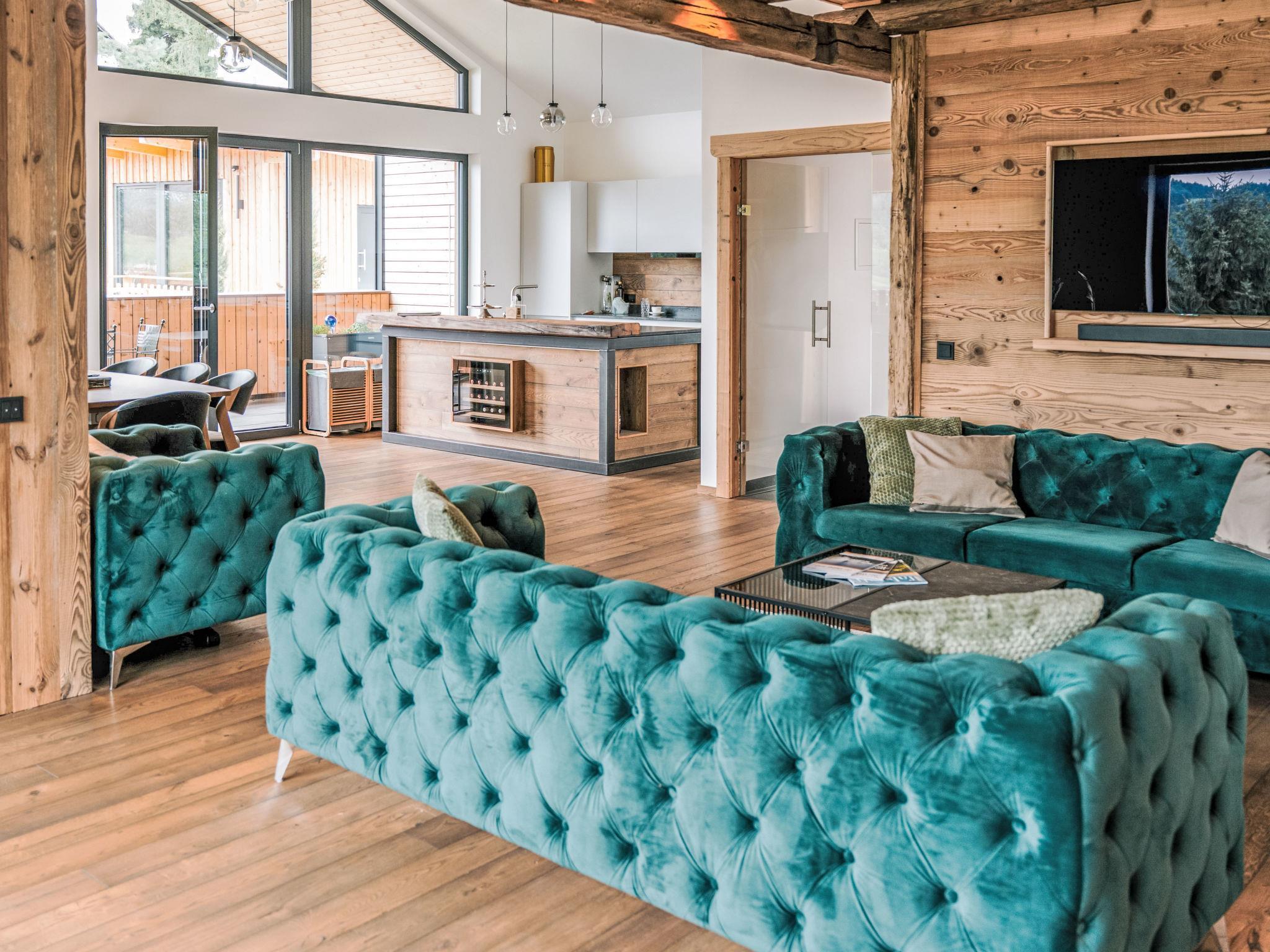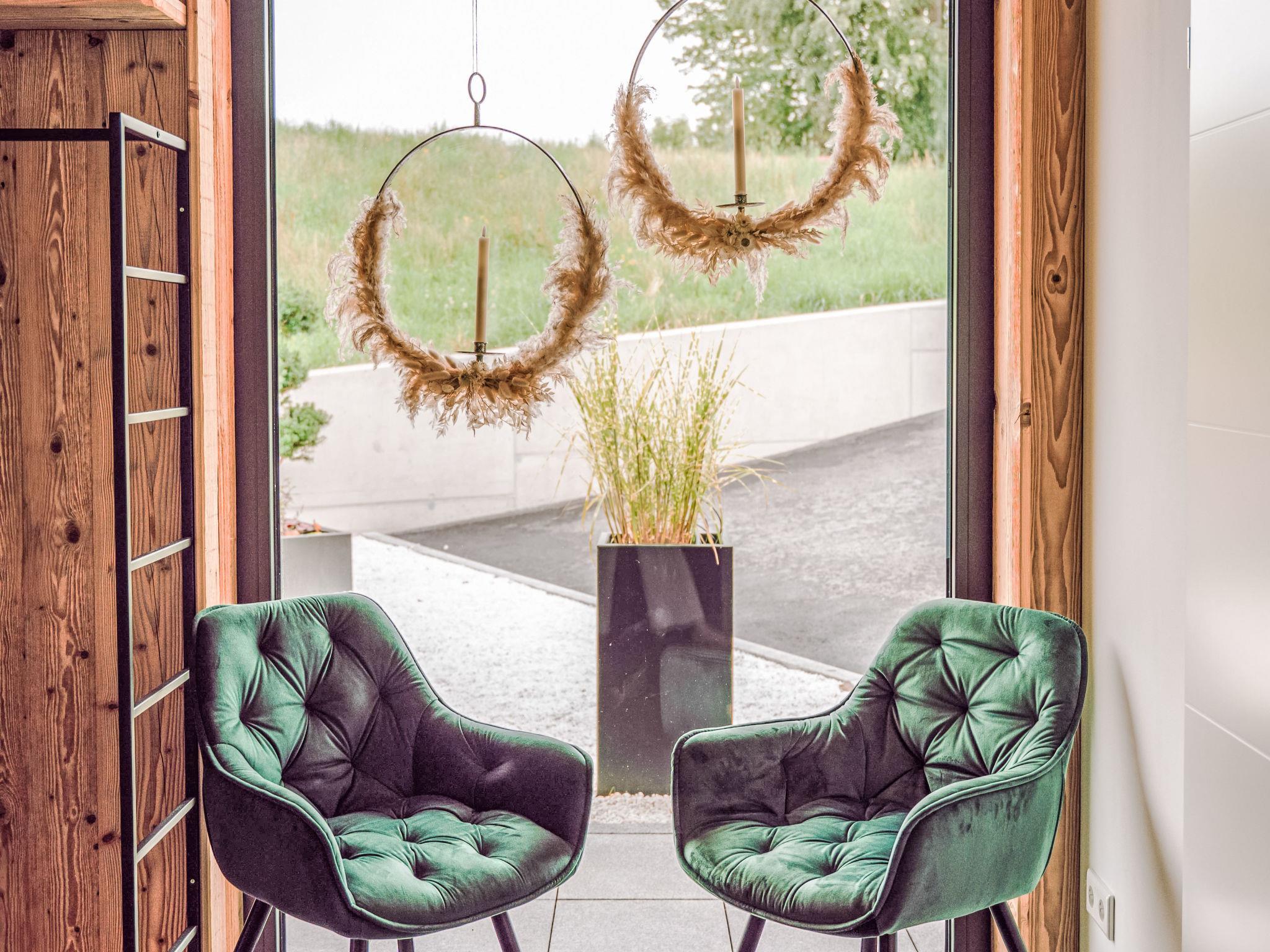 "Haus am Kogl", 6-room cottage 300 m2 on 2 levels. Object suitable for 10 adults + 3 children. Bright, partly with sloping ceilings, comfortable and wooden furniture furnishings: large living/dining room with dining table, satellite TV and international TV channels (flat screen), tiled stove. Exit to the balcony. 1 room with panoramic window with 1 double sofabed (1 x 140 cm, length 200 cm), 1 double bed, shower/WC, satellite TV and international TV channels (flat screen). Gallery with 1 sofabed (90 cm, length 200 cm), 1 double bed, satellite TV and international TV channels (flat screen). Open kitchen (oven, dishwasher, 4 induction hot plates, toaster, kettle, grill, electric coffee machine, raclette grill) with bar. Sep. WC. Underfloor heating. On the lower ground floor: 3 double bedrooms, each room with shower/WC, satellite TV and international TV channels (flat screen). Exit to the terrace. Parquet floors. Terrace. Terrace furniture, barbecue, deck chairs. Very beautiful panoramic view of the countryside. Facilities: washing machine, dryer, iron, children's high chair, baby cot for up to 2 year olds, hair dryer, logs (free). Internet (WiFi, free). E-charging station. Please note: non-smoking house. Smoke alarm, fire extinguisher. The pool mentioned in the description is for private use.