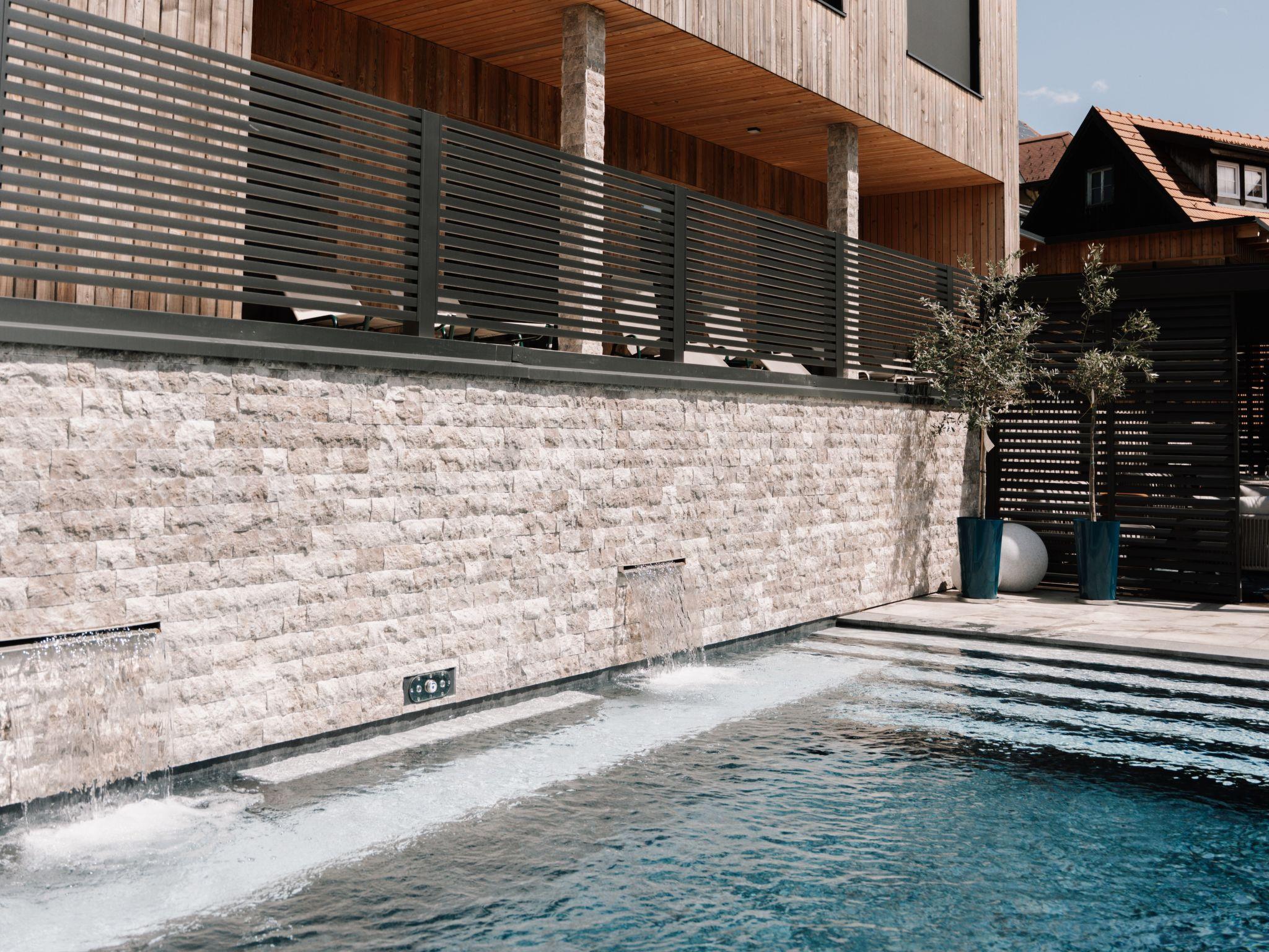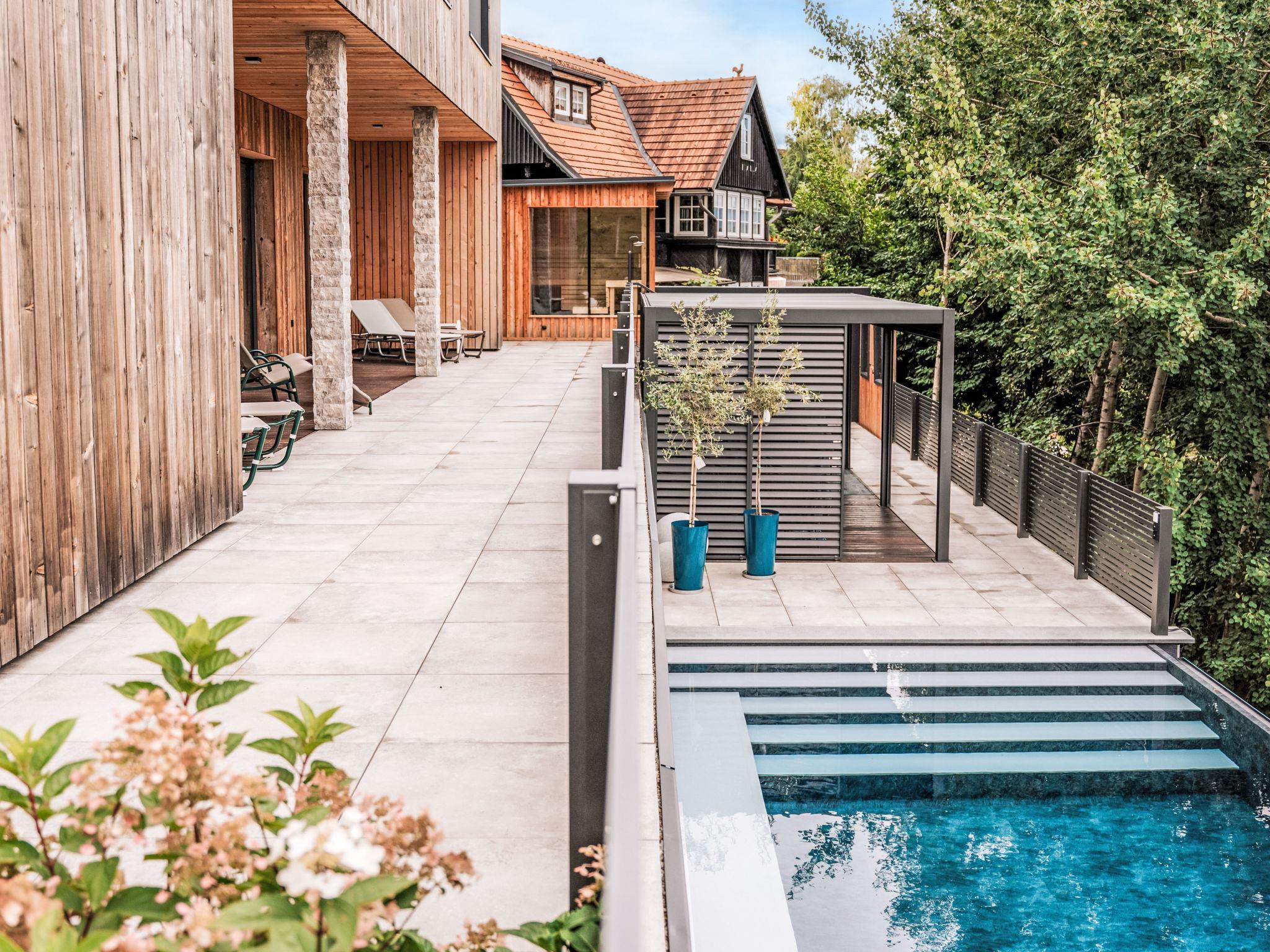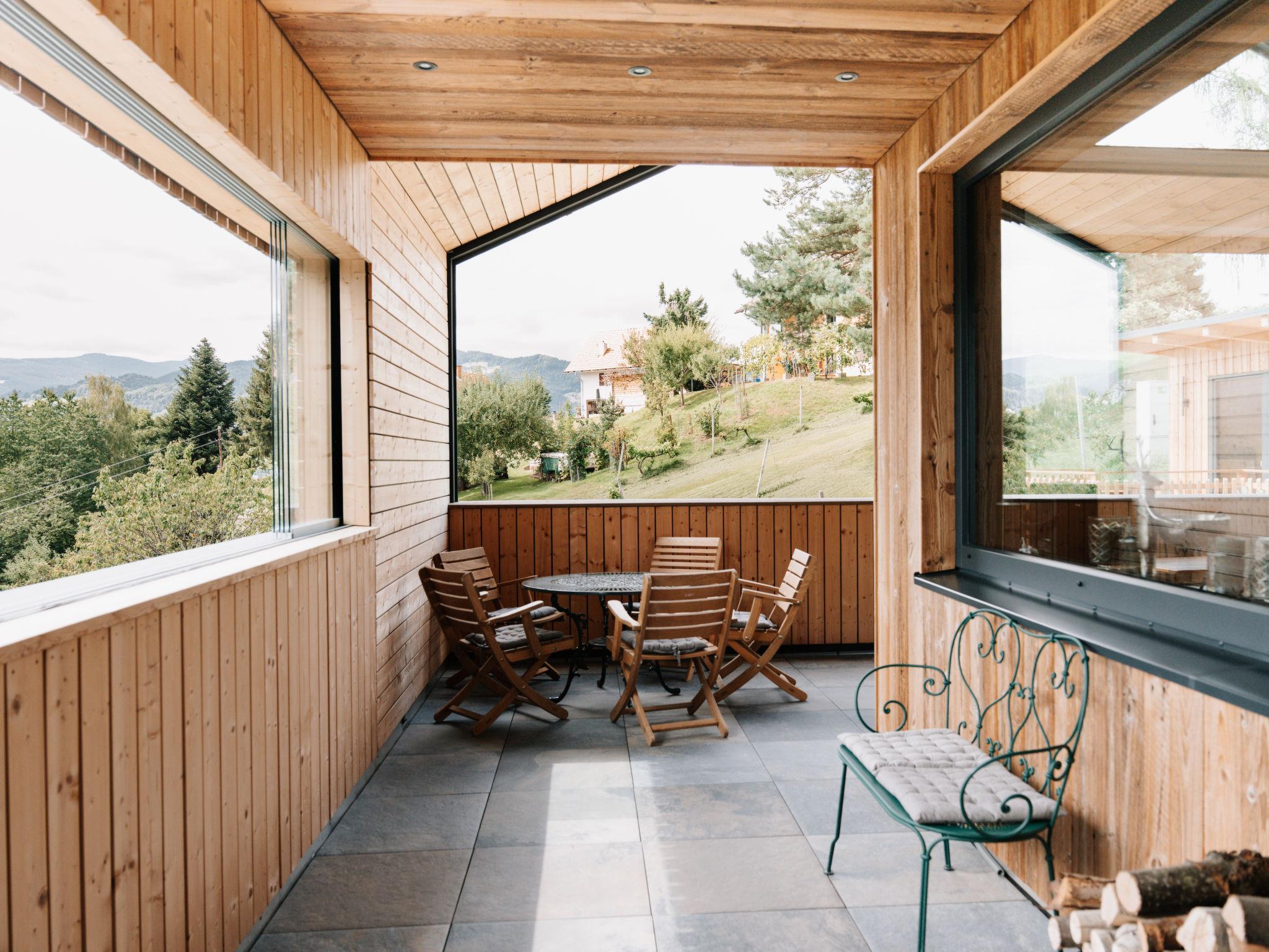 Süd-Weststeiermark 20 km from Deutschlandsberg: Modern cottage "Haus am Kogl", 2 storeys, surrounded by fields and vineyards. In the district of Oberer Kogl 5 km from the centre of Wies, in a quiet, sunny position. Private: property 1'000 m2, beautiful garden to relax, swimming pool (8 x 4 m, 32 m2, seasonal availability: 01.May. - 31.Oct.) with shutter cover. WC in the pool area, outdoor shower, pool house with fridge and cooking stove, patio, garden furniture, barbecue. In the house: WiFi, sauna, storage room for bicycles, central heating system, washing machine, tumble dryer. Cook (extra). Bread roll service and beverage service possible (extra). Storeroom available. Parking (for 5 cars). Carport. E-charging station. Grocery 1.6 km, supermarket 5 km, restaurant 300 m, bus stop "Wernersdorf Ort" 1.5 km, railway station "Wies-Eibiswald" 5 km. Nearby attractions: Wasserfall der weißen Sulm 12 km. Hiking paths: Wasserfall Hadernigg 11 km. Object suitable for 10 adults + 3 children. The owner does not accept any youth groups. 24hr guard. Wellness: Panorama sauna: 15 m² (in the garden, including shower and toilet in the sauna house) and infinity pool (8 x 4 m) with breathtaking views of the vineyards and massage function.