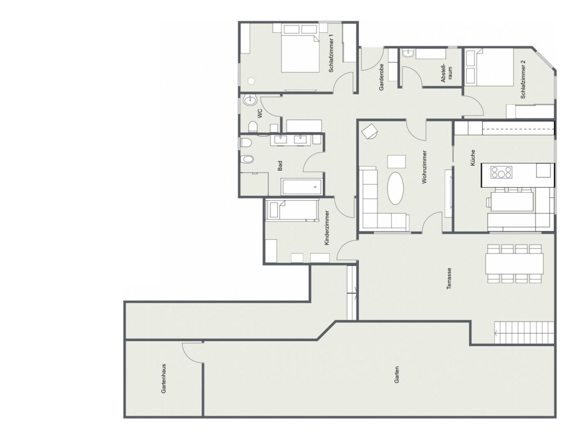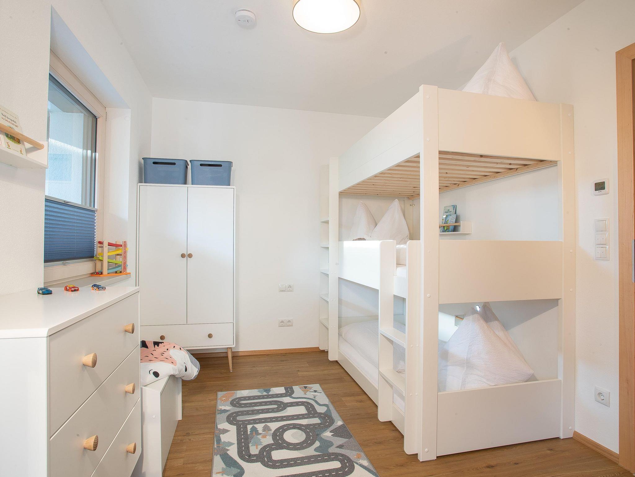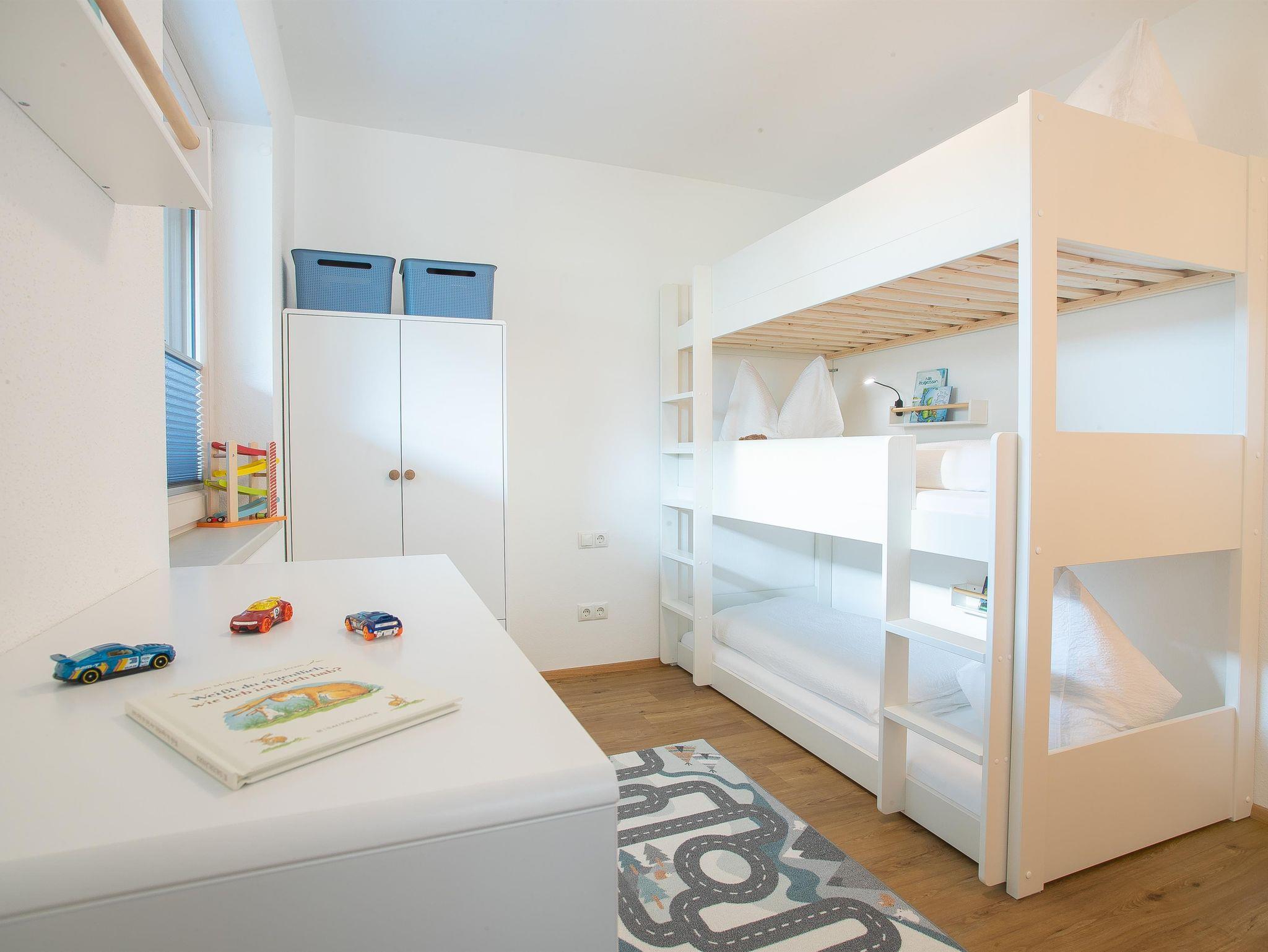 Hier fällt es leicht den Alltagsstress hinter sich zu lassen. Die neu eröffnete Ferienwohnung verfügt über eine top moderne Küche mit großer Kochinsel, großen Kühlschrank (inkl. Gefrierfächer), Backofen, Mikrowelle und großen Esstisch. Im Wohnzimmer begrüßen Sie eine einladende Schlafcouch, ein 60 Flatscreen sowie eine Spielekonsole. In beiden Hauptschlafzimmern erwarten Sie Boxspring-Doppelbetten, im Kinderzimmer ein großes 3-stöckiges Etagenbett. (für Kinder & Jugendliche geeignet) Das Badezimmer verfügt über ein großes Doppelwaschbecken, Dusche, Badewanne sowie Bidet. Die Terrasse mit geräumiger Sitzgarnitur und der Garten mit Kinderspielturm laden zum Verweilen ein.