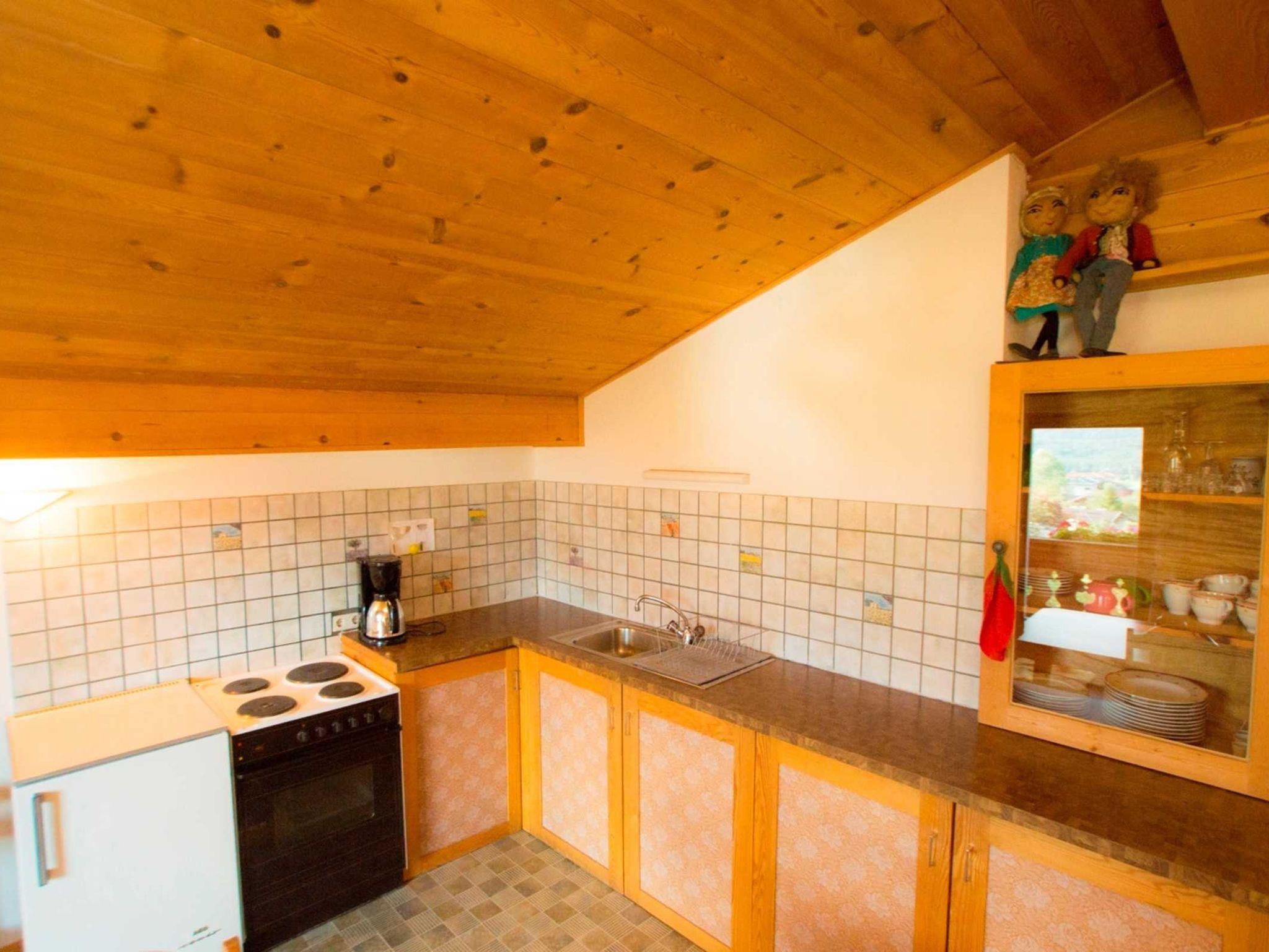 Küchenbereich. Wenn Sie vom Balkon blicken, liegt Ihnen das Dorf zu Füßen, und