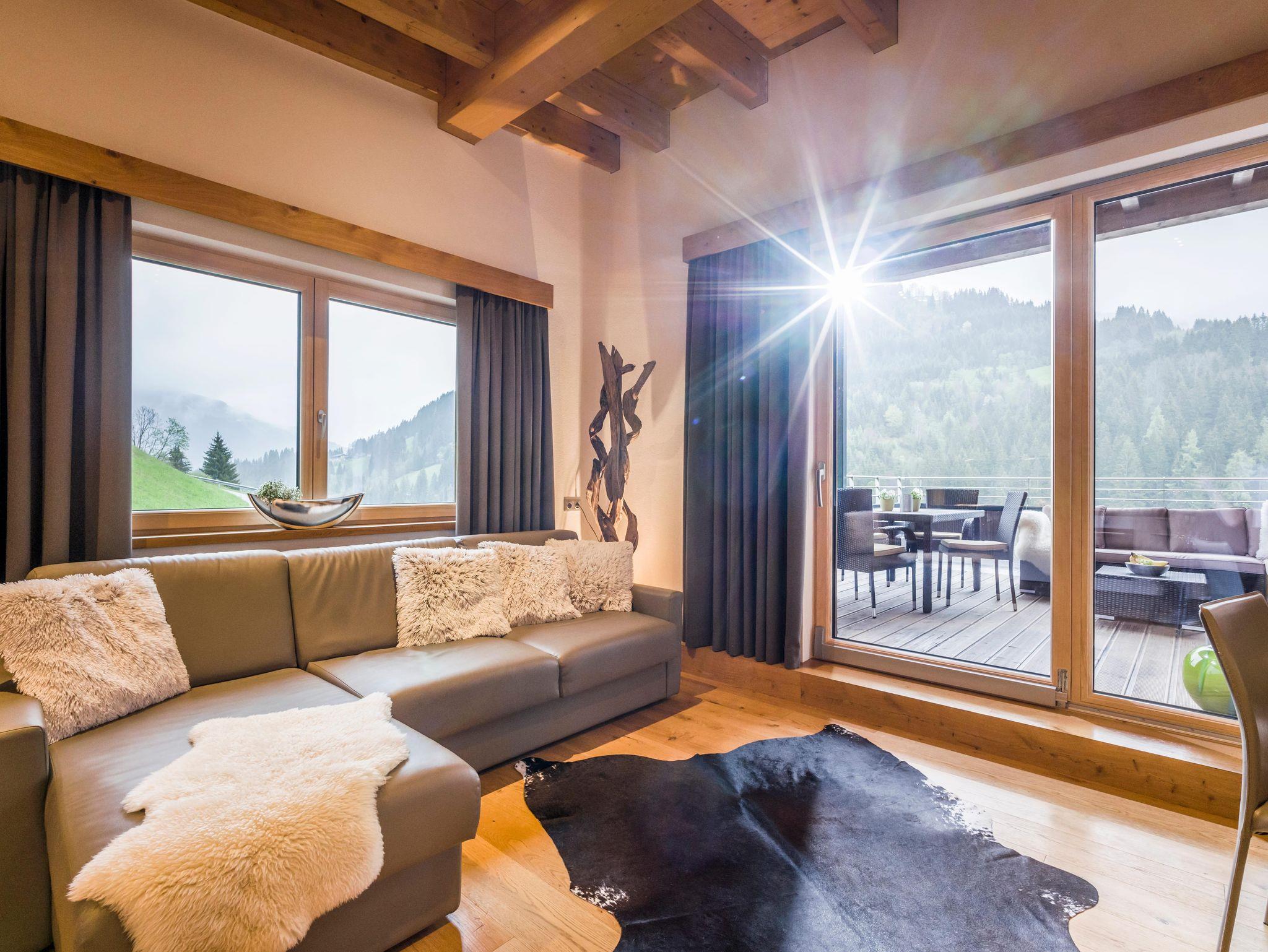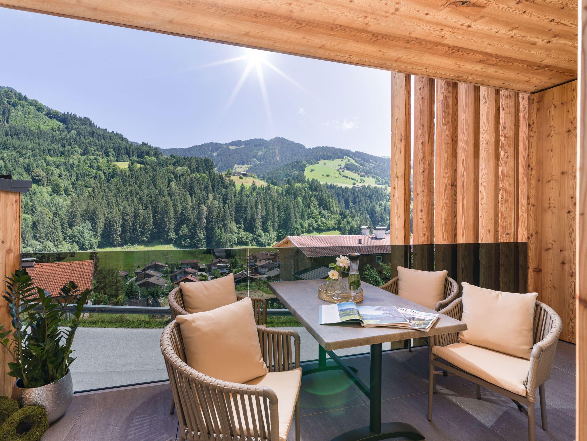 Unser Appartementhaus ist luxuriös und mit höchstem Wohnkomfort und viel Liebe zum Holz ausgestattet, liegt zentral, sonnig und doch ruhig auf 900m Seehöhe in Auffach