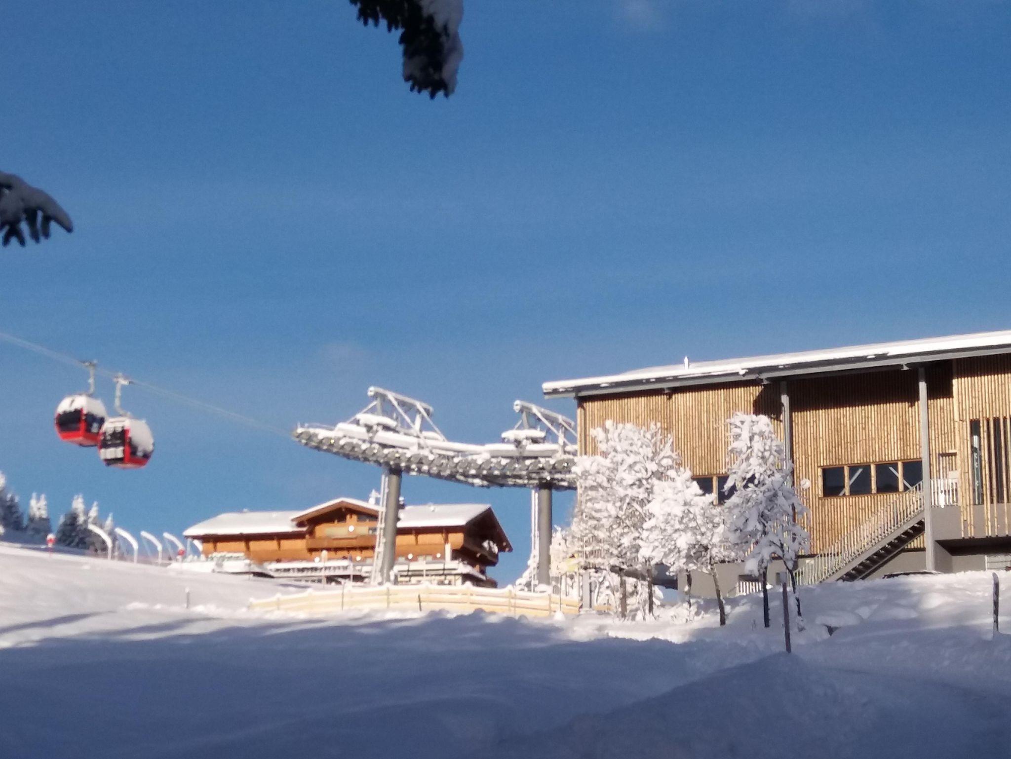 Ferienwohnung mit 2 Schlafzimmer in Zirbenholz - Ausführung, mit 2 Badezimmer und 2 WC's, Handtücher und Bettwäsche , voll ausgestattete Küche mit Kaffeemaschine, Mikrowelle, Backofen, Spülmaschine, Geschirrtücher, Balkone nach Südost oder Nordost, mit Blick ins Tal und zur Gondel, Wilder Kaiser und Kitzbüheler Alpen