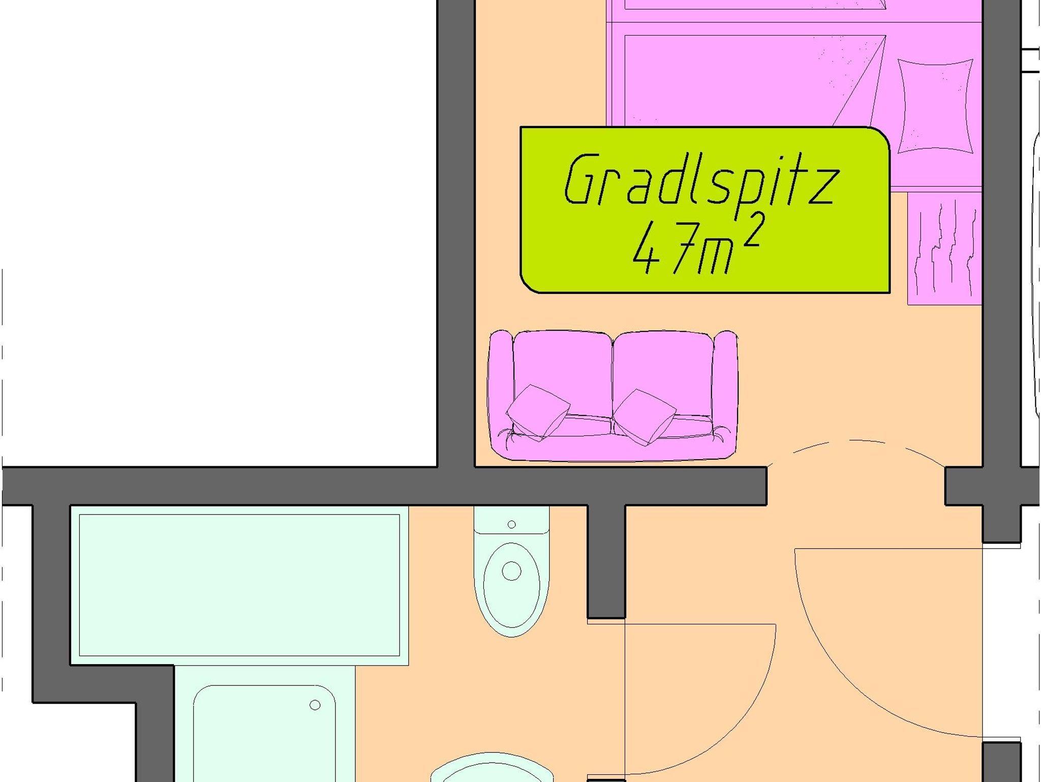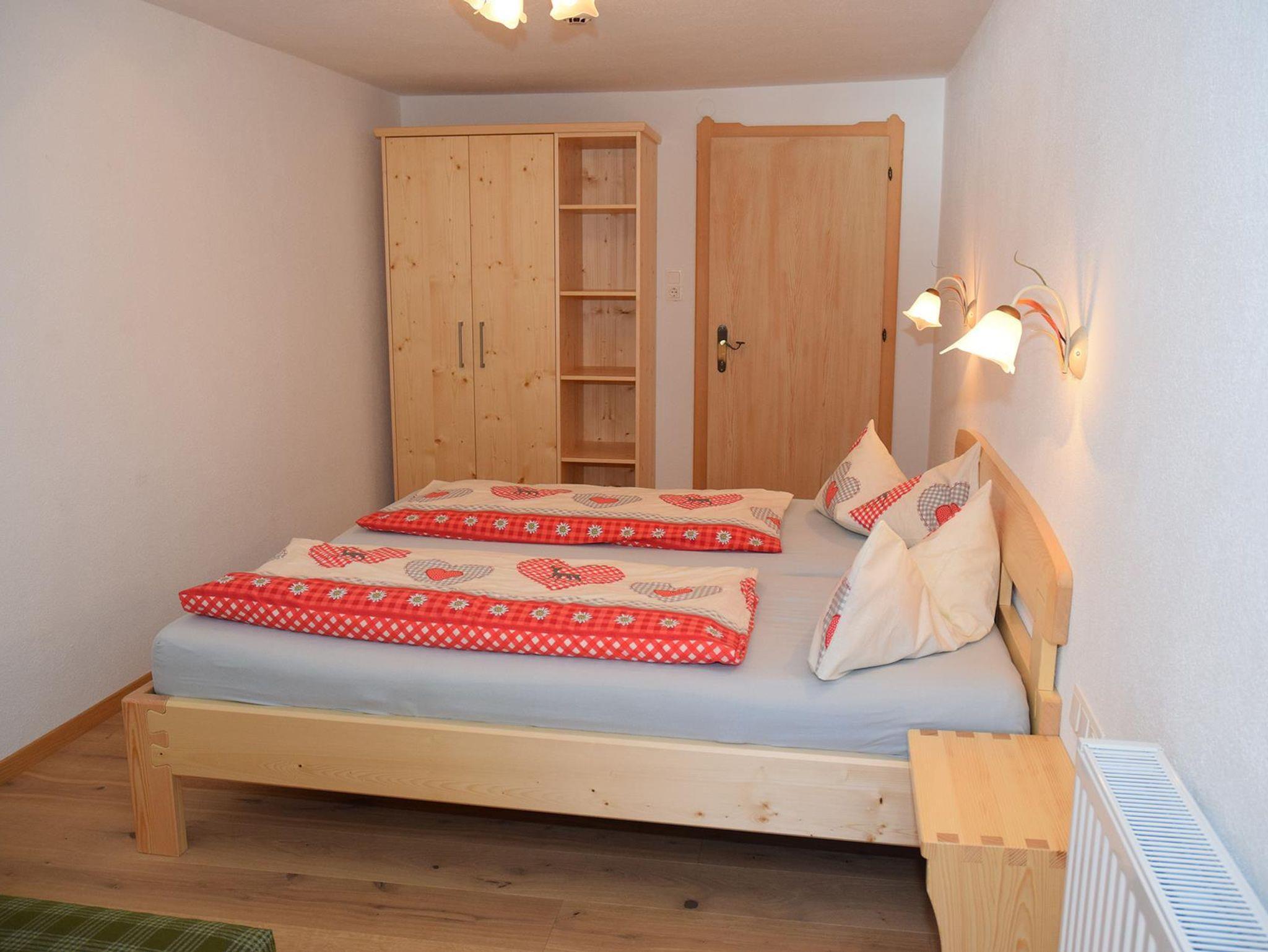 Doppelbett, Couch (für 3. Bett), Dusche/Badewanne/WC, Fön, offener Durchgang zur Wohnküche, TV, Wifi, Balkon mit Tal-/Bergblick
