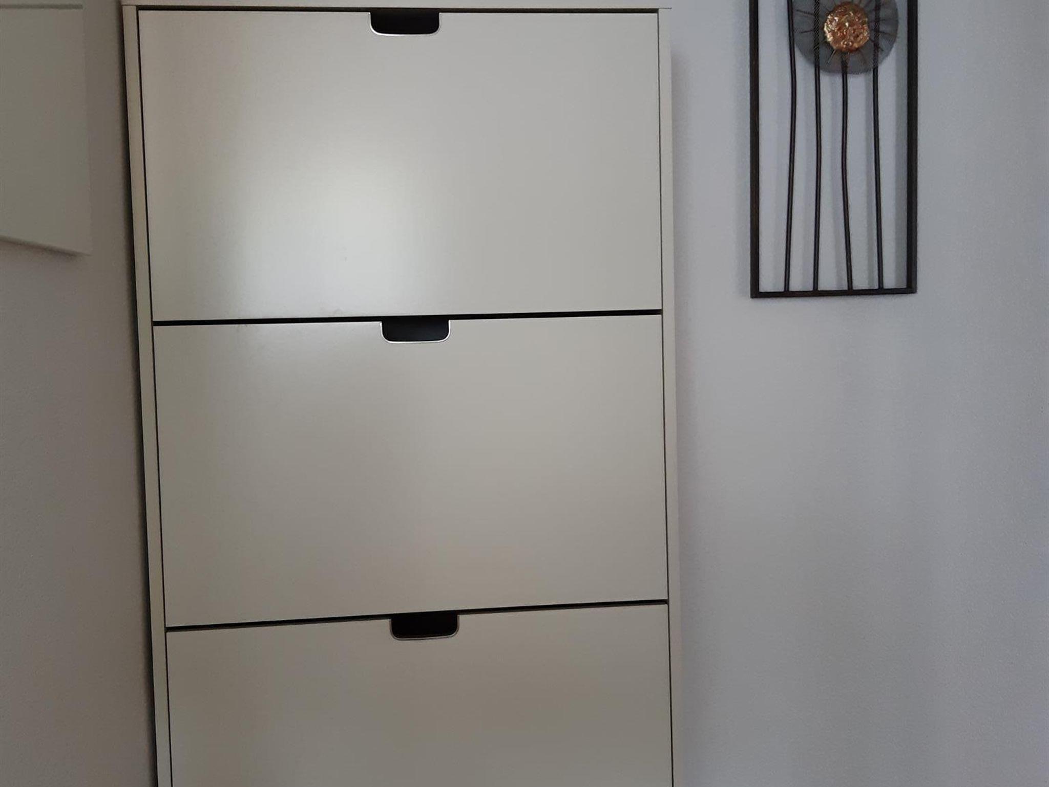 Die Wohnung (45 qm) eignet sich für 2 - 4 Personen, hat ein Schlafzimmer mit Doppelbett, einen Wohnraum mit einer Küche / einem Esstisch und einer ausziehbaren Couch. Das Bad ist mit einer Dusche und einem WC ausgestattet.