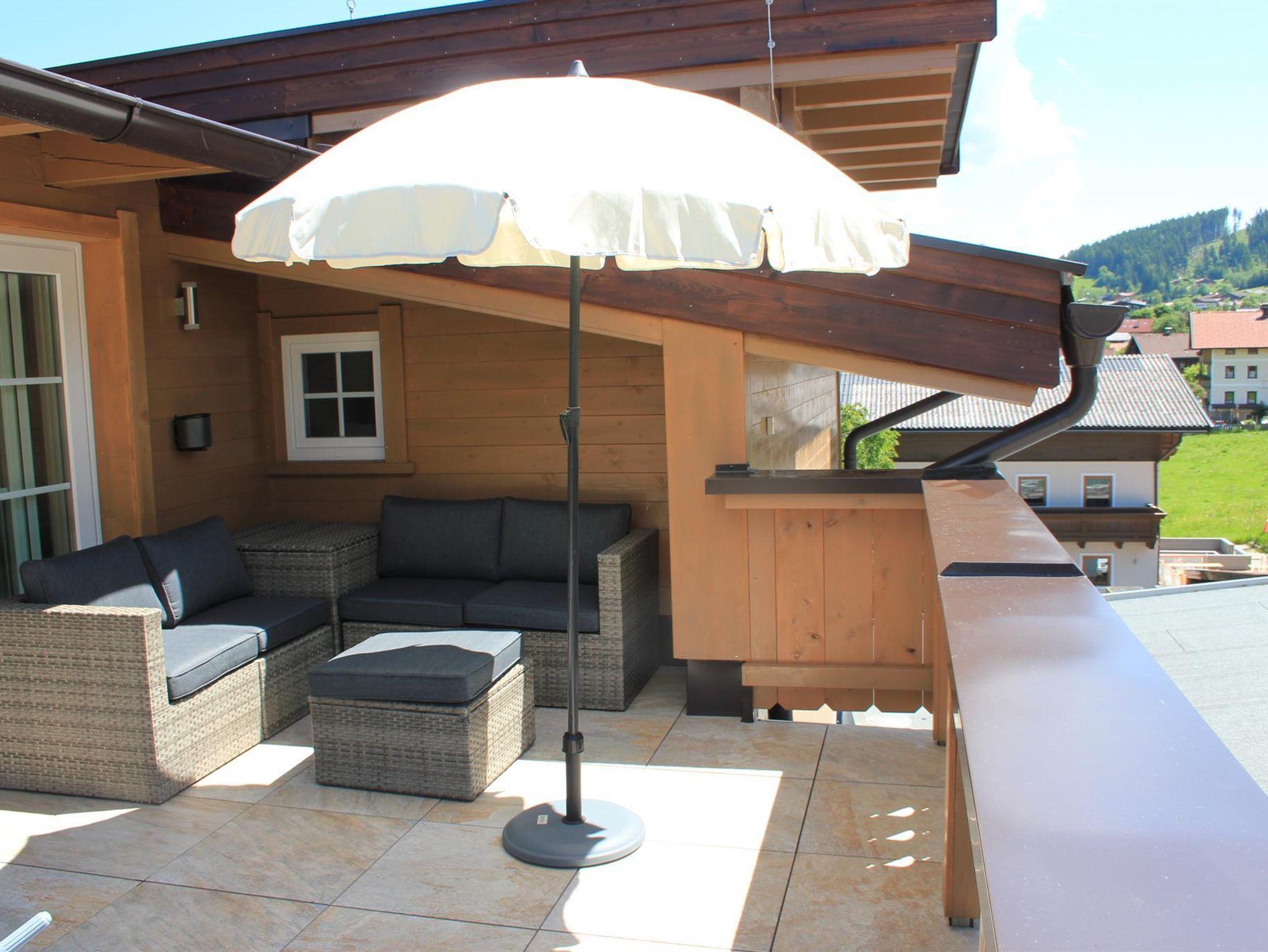 Penthaus-Suite mit 180 m² für 8 Personen, 4 Schlafzimmer, 4 Badezimmer, großem Wohnzimmer mit offenem Kamin, 2 Dachterrassen, 48 Zoll Flachbildschirm im Wohnzimmer, 32 Zoll Fernseher in jedem Schlafzimmer, kostenloses WLAN, komplett ausgestattete Küche mit Geschirrspüler, Elektroherd mit Backofen, Kaffeemaschine, Wasserkocher, Toaster, Mikrowelle, privatem Liftzugang, hochwertiges Interieur, herrlicher Ausblick auf die umliegende Bergwelt der Wildschönau von den Dachterrassen, 3 kostenlose Parkplätze auf Privatparkplatz
