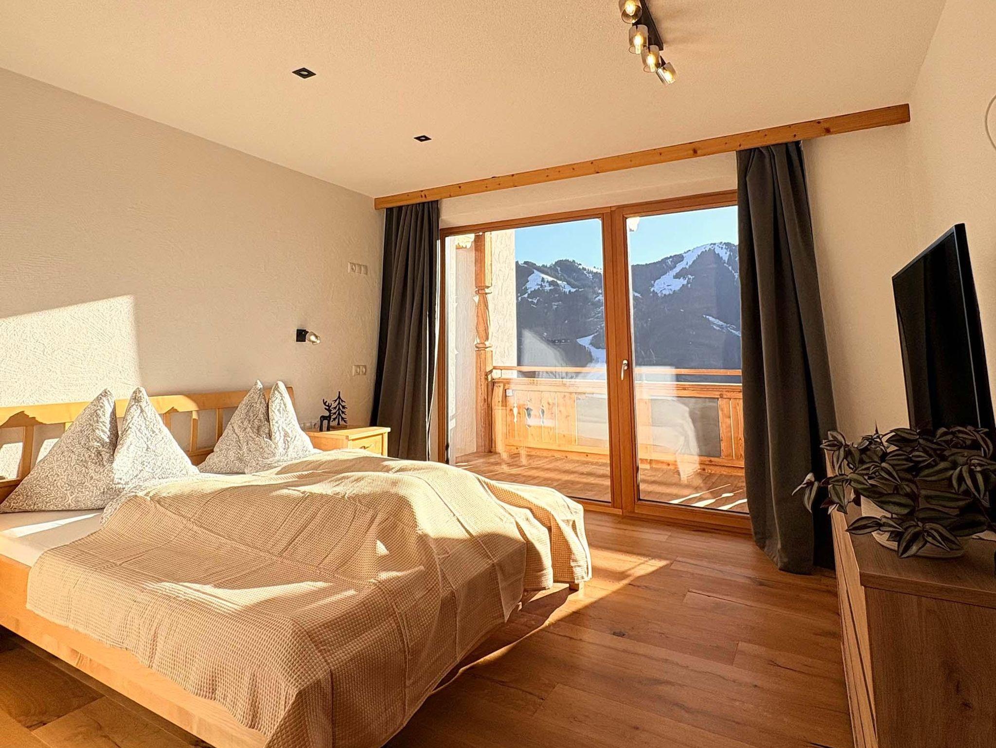 Unser Hof wurde 2023 neu erbaut und liegt exponiert auf 1.150m Seehöhe und bietet einen schönen Ausblick über das Tal.