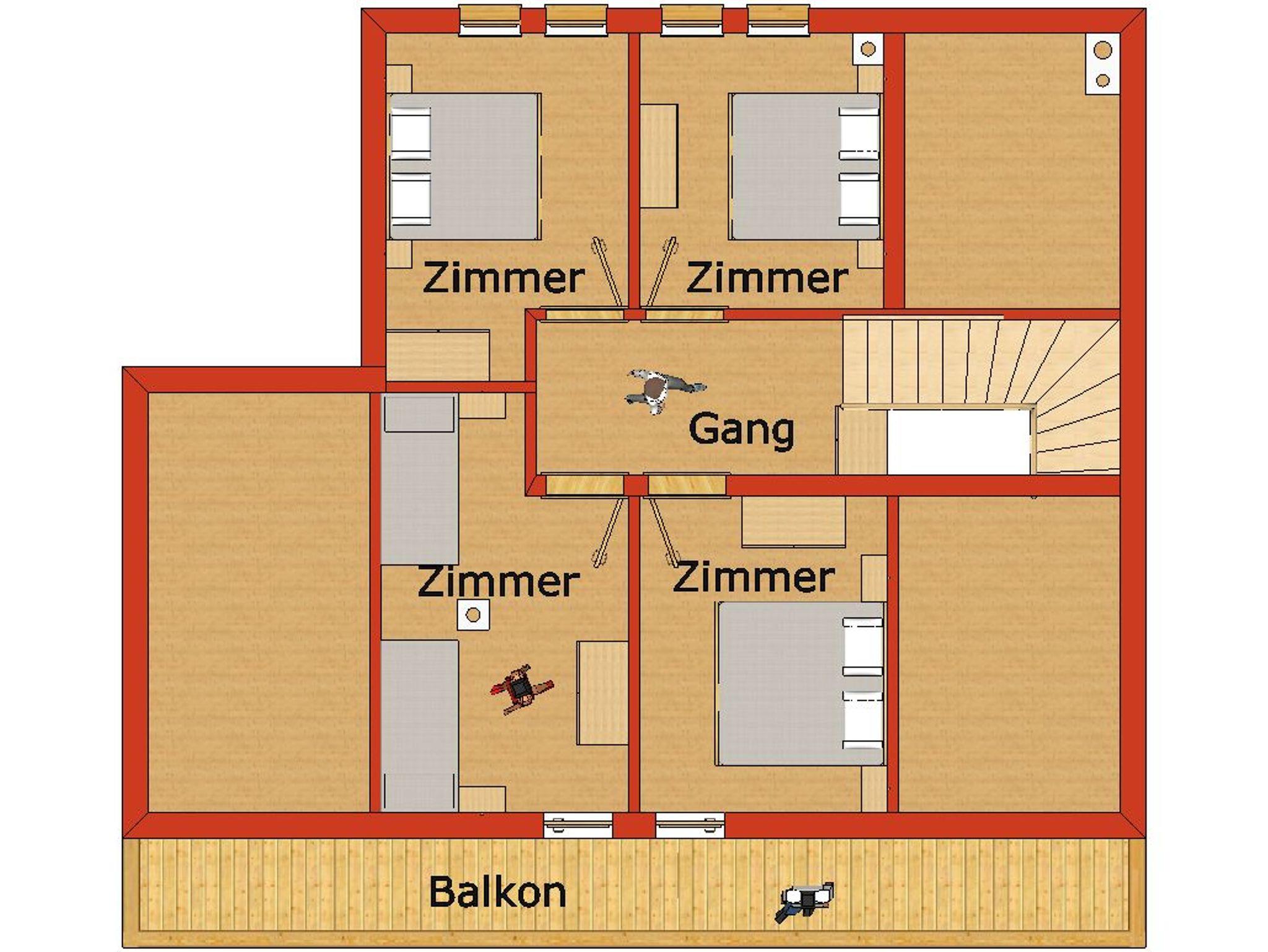 OG: 1 x 2-Bettzimmer, 2 x Doppelzimmer, 1 x 4-Bett, 1 x Dusche, 1 x WC. Im Dachgeschoß befinden sich 3 Doppelzimmer und 1 x 2 Bettzimmer, welche optional dazugemietet werden können. Weitere Duschen und WCs, sowie der Skiraum mit Schuhtrockner und die Holzpellets-Zentralheizung sind im Kellergeschoß. Bitte bringen Sie Ihre Bettwäsche selber mit!
