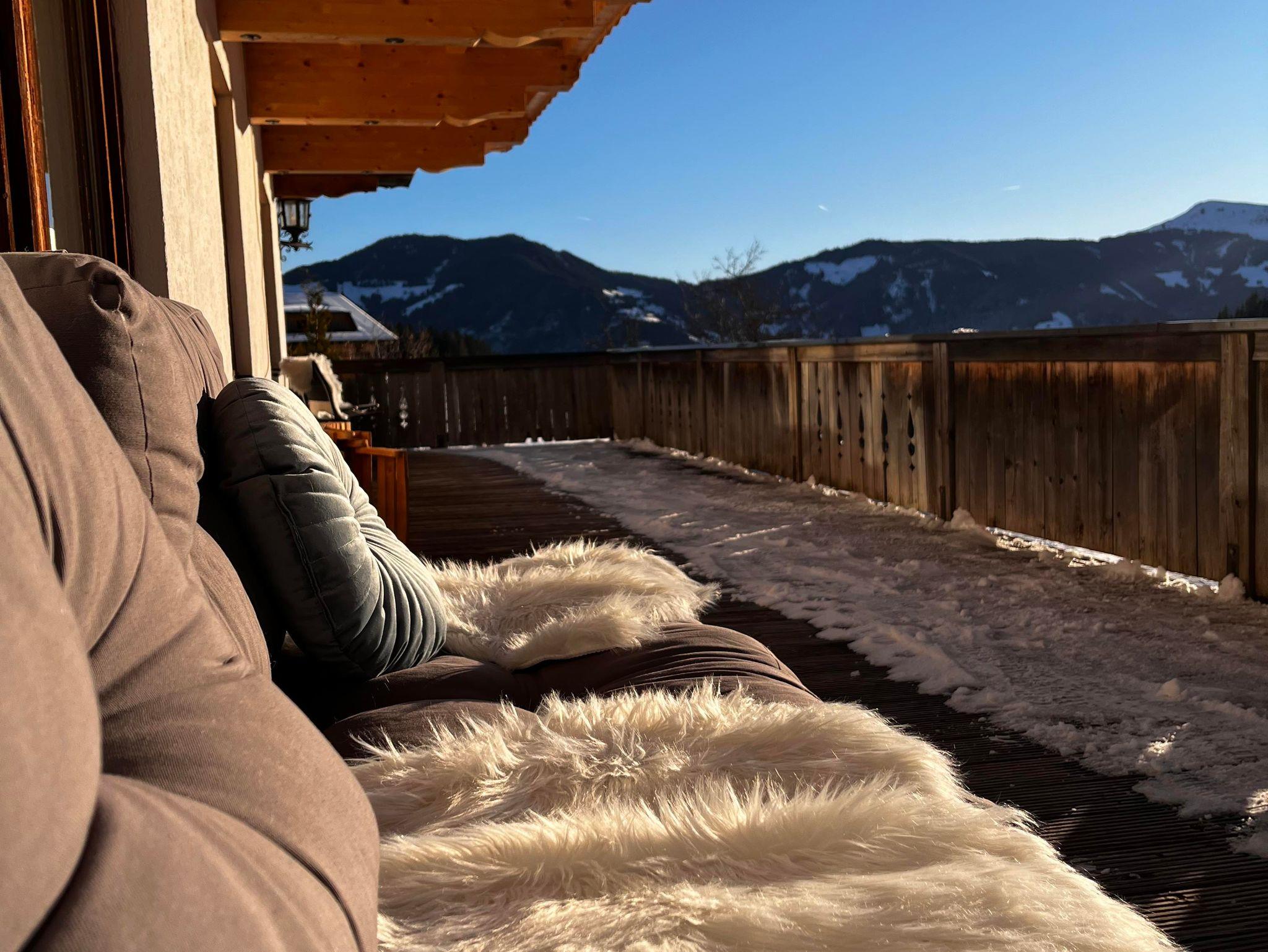 Die Ferienwohnung überzeugt mit einer großen Sonnenterasse, die man im Winter, als auch im Sommer nutzen kann.