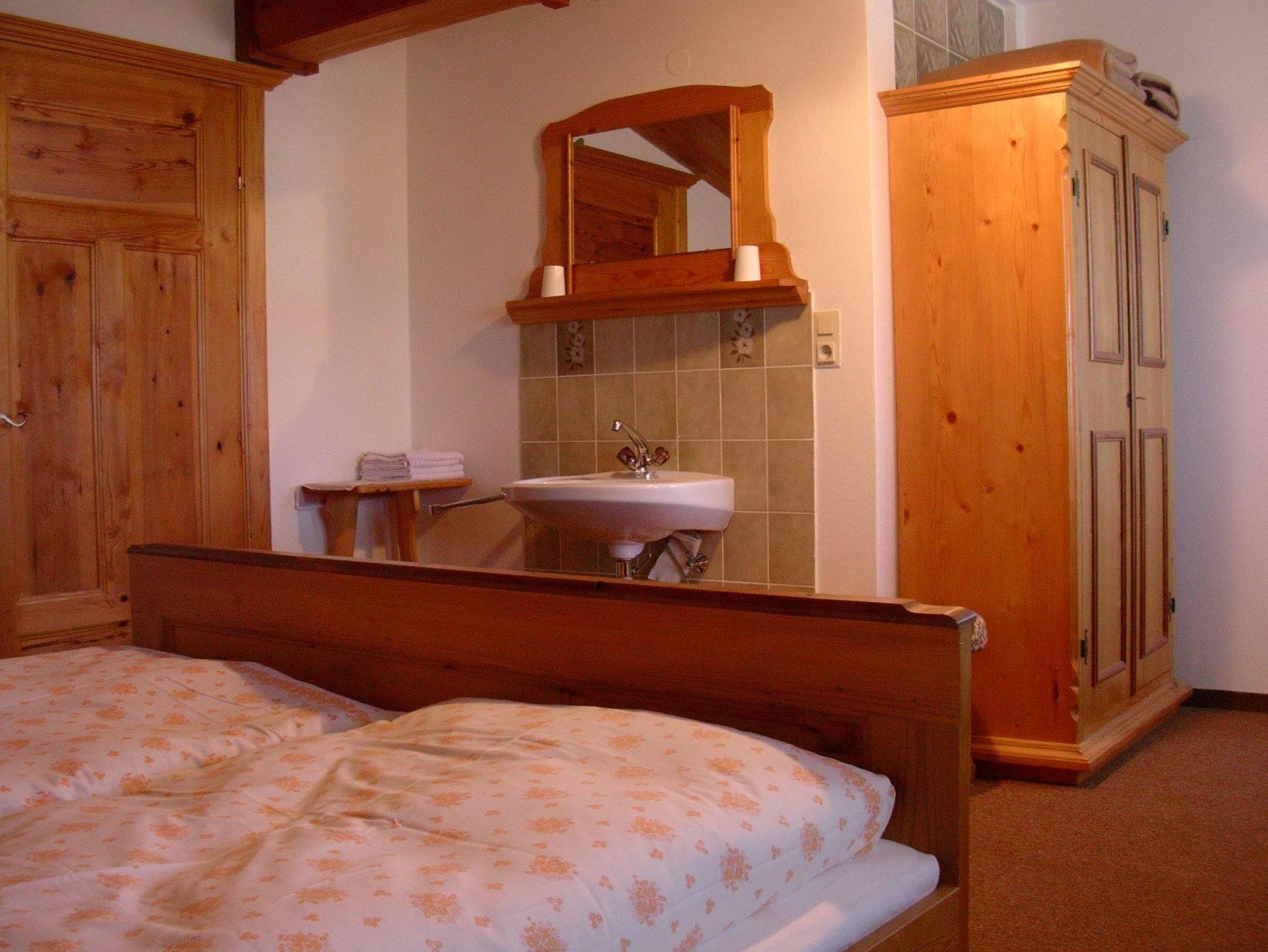 Unsere Ferienwohnung Wiesenblick verfügt über ein Schlafzimmer in der Wohnung und einem Zusatzzimmer, welches sich unmittelbar neben dem Wohnungseingang befindet. Es ist mit ein bis zwei Bädern ausgestattet und hat eine Wohnküche.