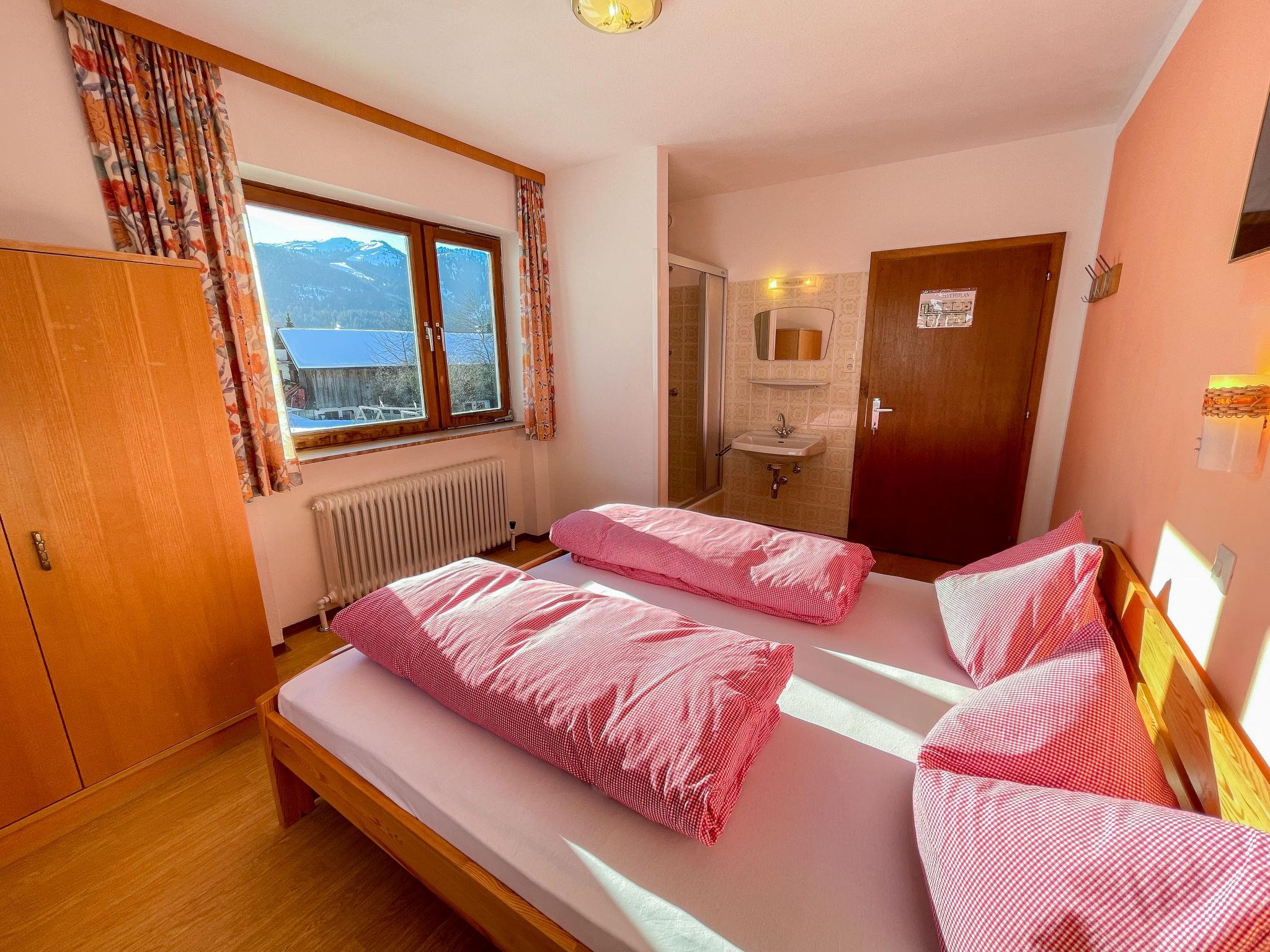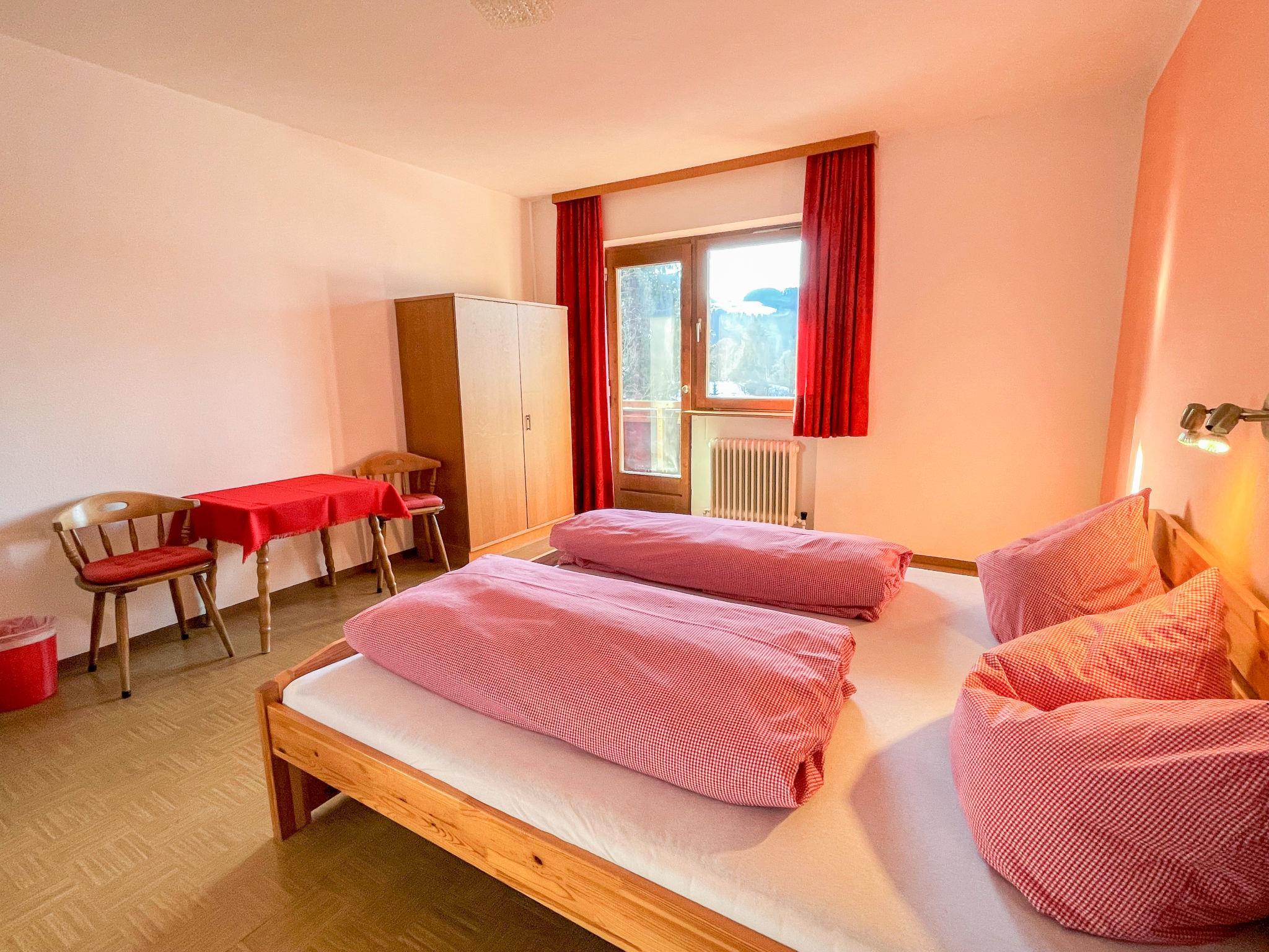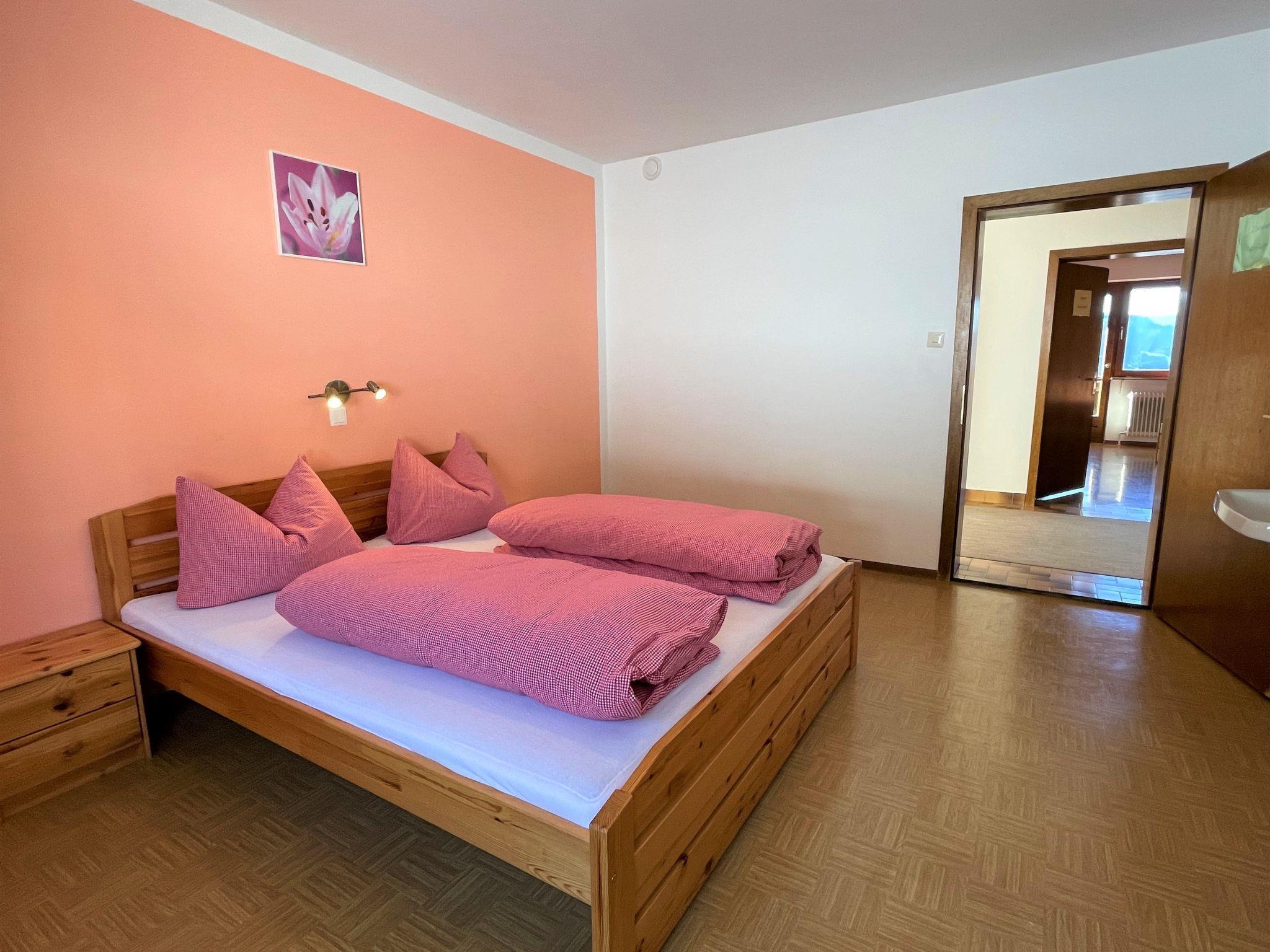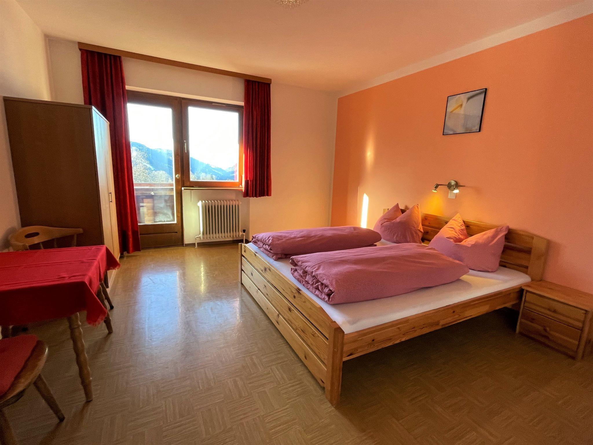 "Roggenboden", 8-room apartment 200 m2 on 1st floor, south-west facing position. Object suitable for 14 adults. Spacious and bright, simple and practical furnishings: living room with dining nook and satellite TV. Exit to the balcony. 1 double bedroom with hand-basin and shower. Exit to the balcony. 1 double bedroom with hand-basin and shower. Exit to the balcony. 1 room with 1 bed, 1 double bed and hand-basin. Exit to the balcony. 1 room with 1 double bed, 1 folding bed and hand-basin. Exit to the balcony. 1 room with 1 double bed and hand-basin. Exit to the balcony. 1 room with 1 double bed and hand-basin. Exit to the balcony. Large kitchen (oven, dishwasher, 4 ceramic glass hob hotplates, toaster, kettle, microwave, electric coffee machine) with dining table and radio. Shower, 2 sep. WC's. Heating. 2 balconies. Balcony furniture. Very beautiful view of the mountains and the valley. Facilities: children's high chair, baby cot. Internet (WiFi, free). Please note: non-smokers only. Maximum 1 pet/ dog allowed. Smoke alarm, fire extinguisher. When there are less than the maximum number of guests staying at the property, not all of the housing units will be available for use.