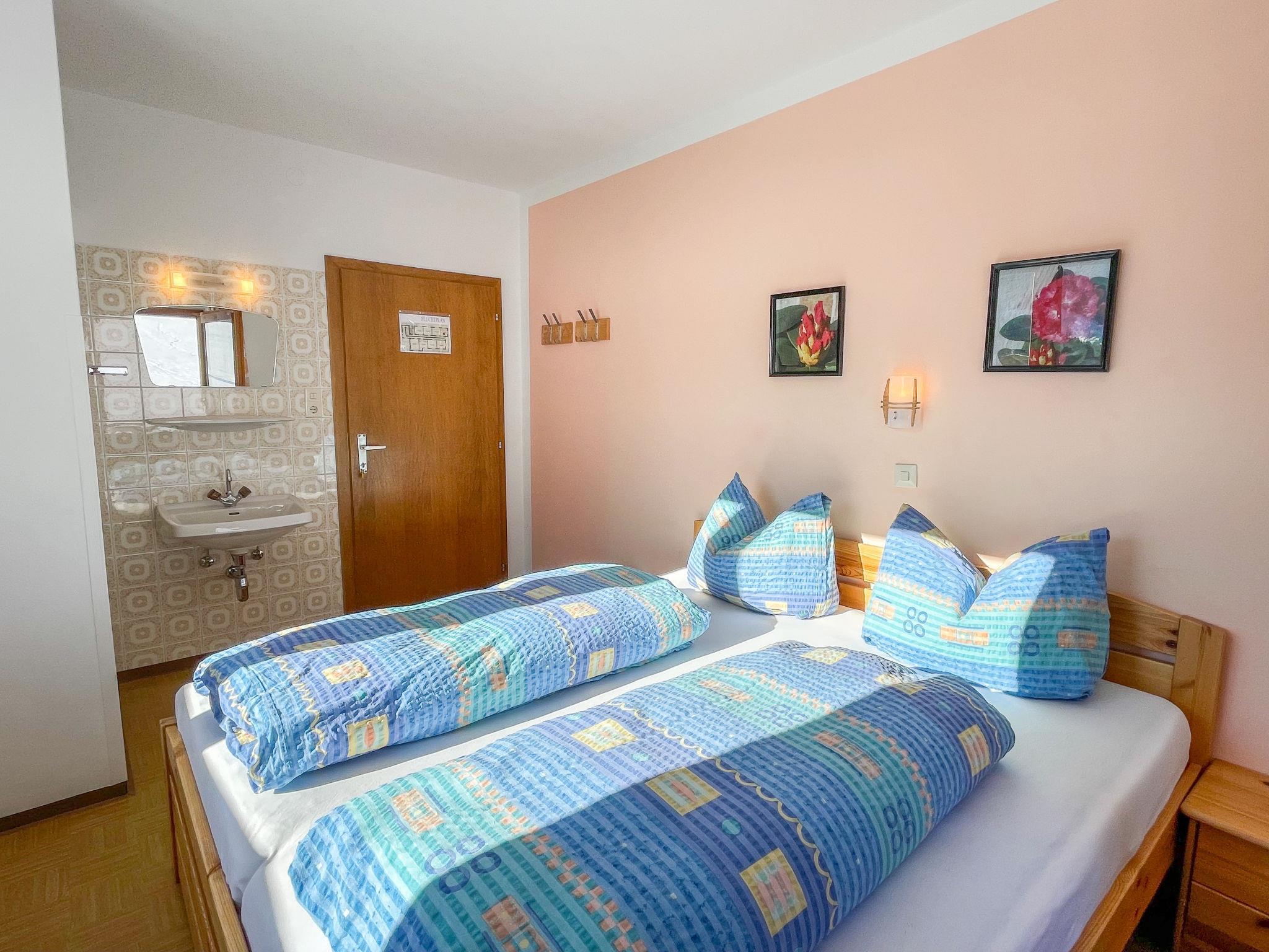 "Roggenboden", 8-room apartment 200 m2 on 2nd floor, south-west facing position. Object suitable for 14 adults. Spacious and bright, simple and practical furnishings: living room with dining nook and satellite TV. Exit to the balcony. 1 double bedroom with hand-basin and shower. Exit to the balcony. 1 double bedroom with hand-basin and shower. Exit to the balcony. 1 room with 1 bed, 1 double bed and hand-basin. Exit to the balcony. 1 room with 1 double bed, 1 folding bed and hand-basin. Exit to the balcony. 1 double bedroom with hand-basin. Exit to the balcony. 1 double bedroom with hand-basin. Exit to the balcony. Large kitchen (oven, dishwasher, 4 ceramic glass hob hotplates, toaster, kettle, microwave, electric coffee machine) with dining table and radio. Shower, 2 sep. WC's. Heating. 2 balconies. Balcony furniture. Very beautiful view of the mountains and the valley. Facilities: children's high chair, baby cot. Internet (WiFi, free). Please note: non-smokers only. Maximum 1 pet/ dog allowed. Smoke alarm, fire extinguisher. When there are less than the maximum number of guests staying at the property, not all of the housing units will be available for use.