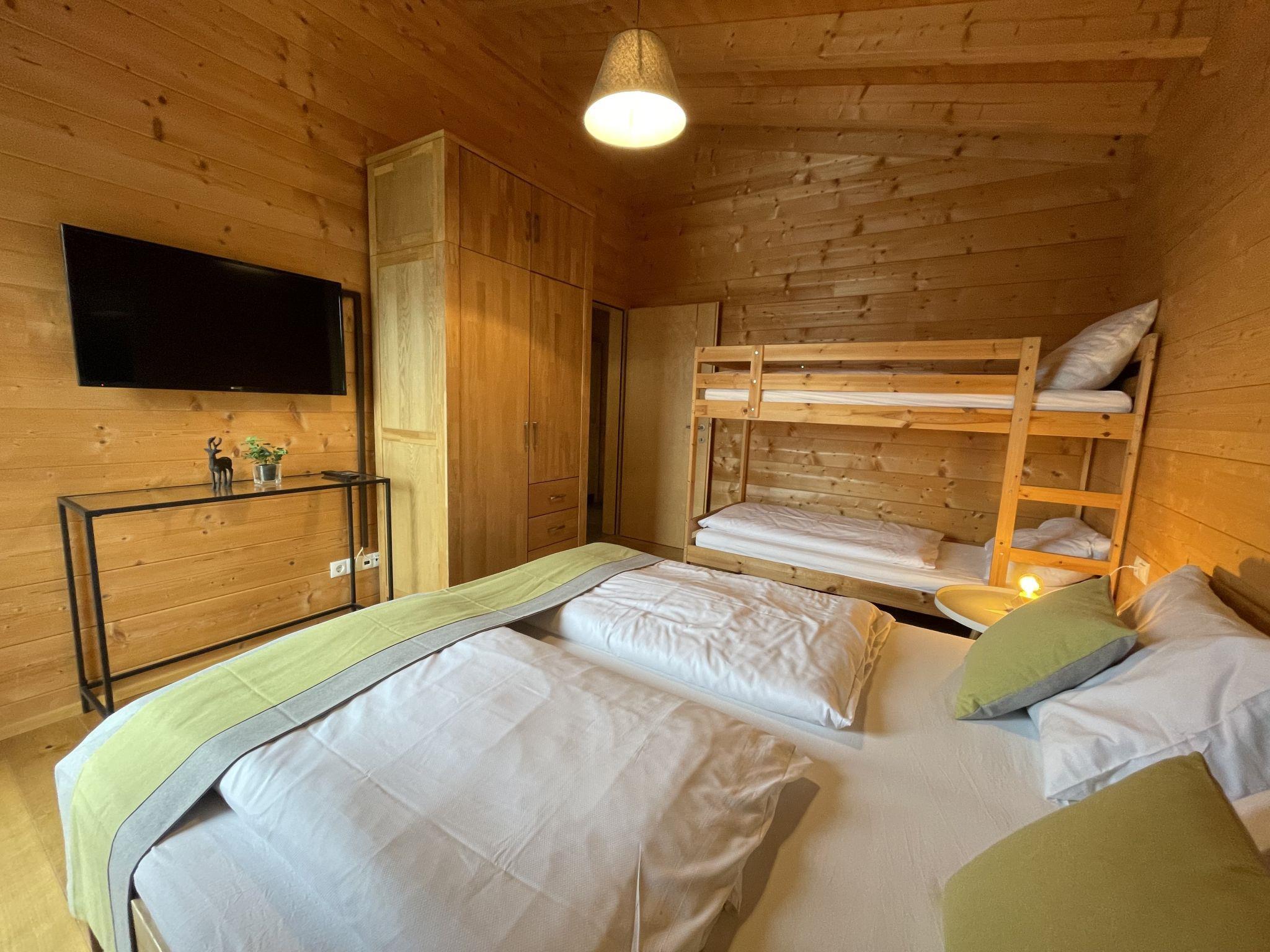 "Jochblick", 3-room apartment 80 m2, on the upper floor. Spacious and bright, tasteful and cosy furnishings: large living/dining room with dining table, cable TV and international TV channels (flat screen), hi-fi system. Exit to the balcony, to the terrace. 1 double bedroom with satellite TV (flat screen). 1 room with 1 x 2 bunk beds, 1 double bed and satellite TV (flat screen). Exit to the balcony. Open kitchen (oven, dishwasher, 4 ceramic glass hob hotplates, toaster, kettle, microwave, electric coffee machine). Exit to the terrace. Bath/shower, sep. WC. Floor heating. Wooden floors, parquet floors, natural stone floors. Balcony, large terrace partly roofed. Terrace furniture, balcony furniture, electric barbecue (portable). Very beautiful view of the mountains and the resort. Facilities: Internet (WiFi, free). Please note: non-smokers only. Fire extinguisher.