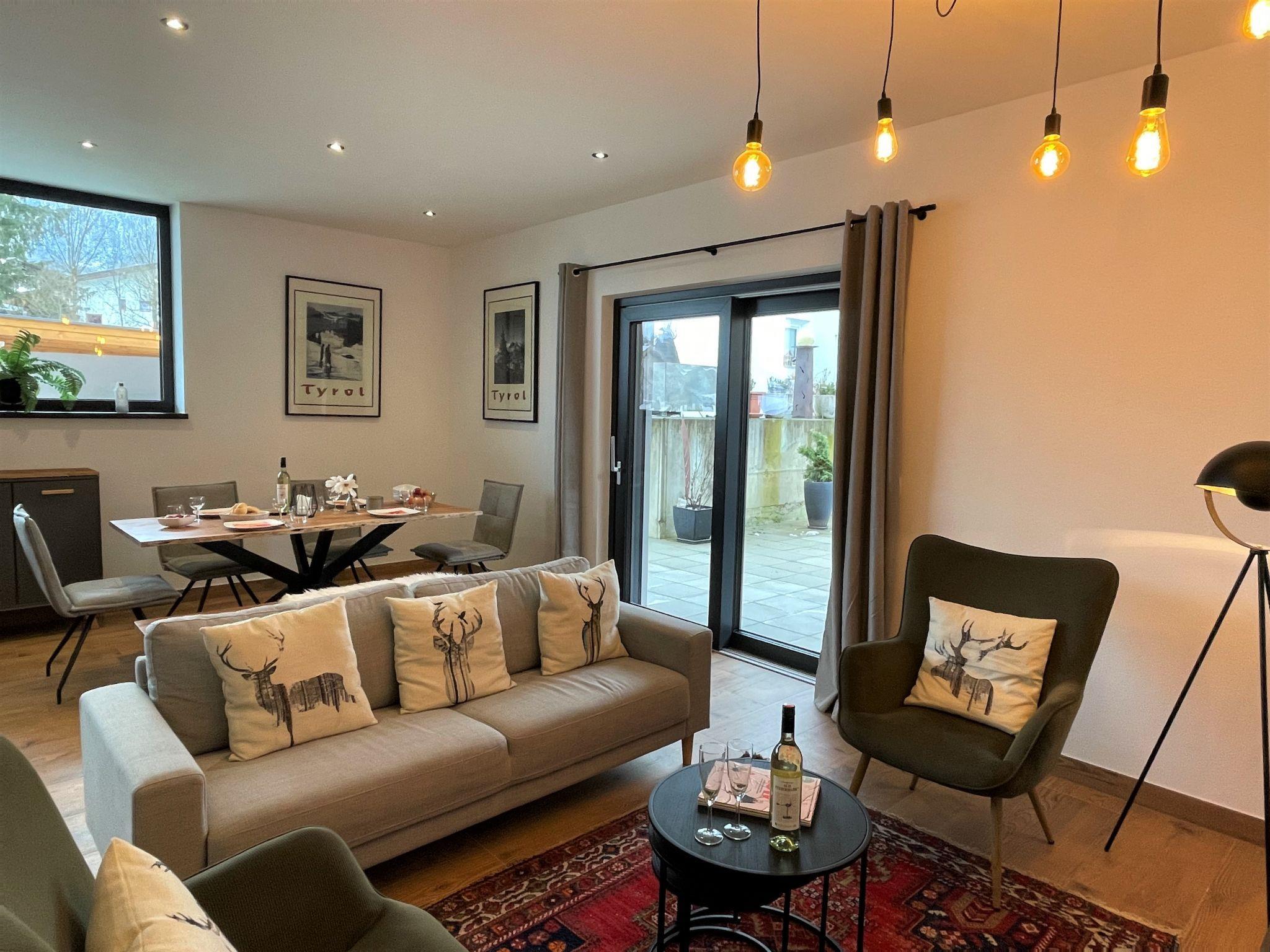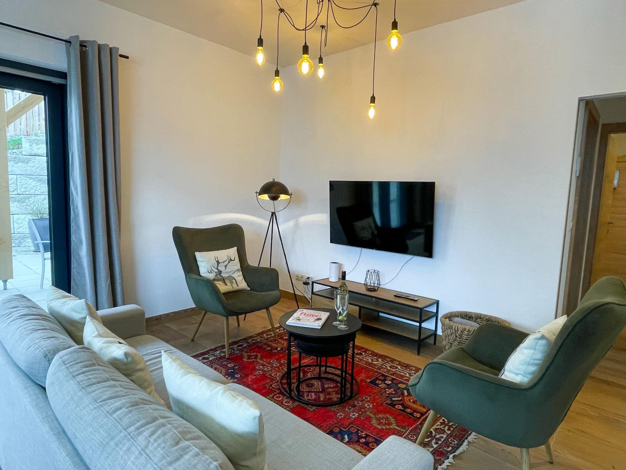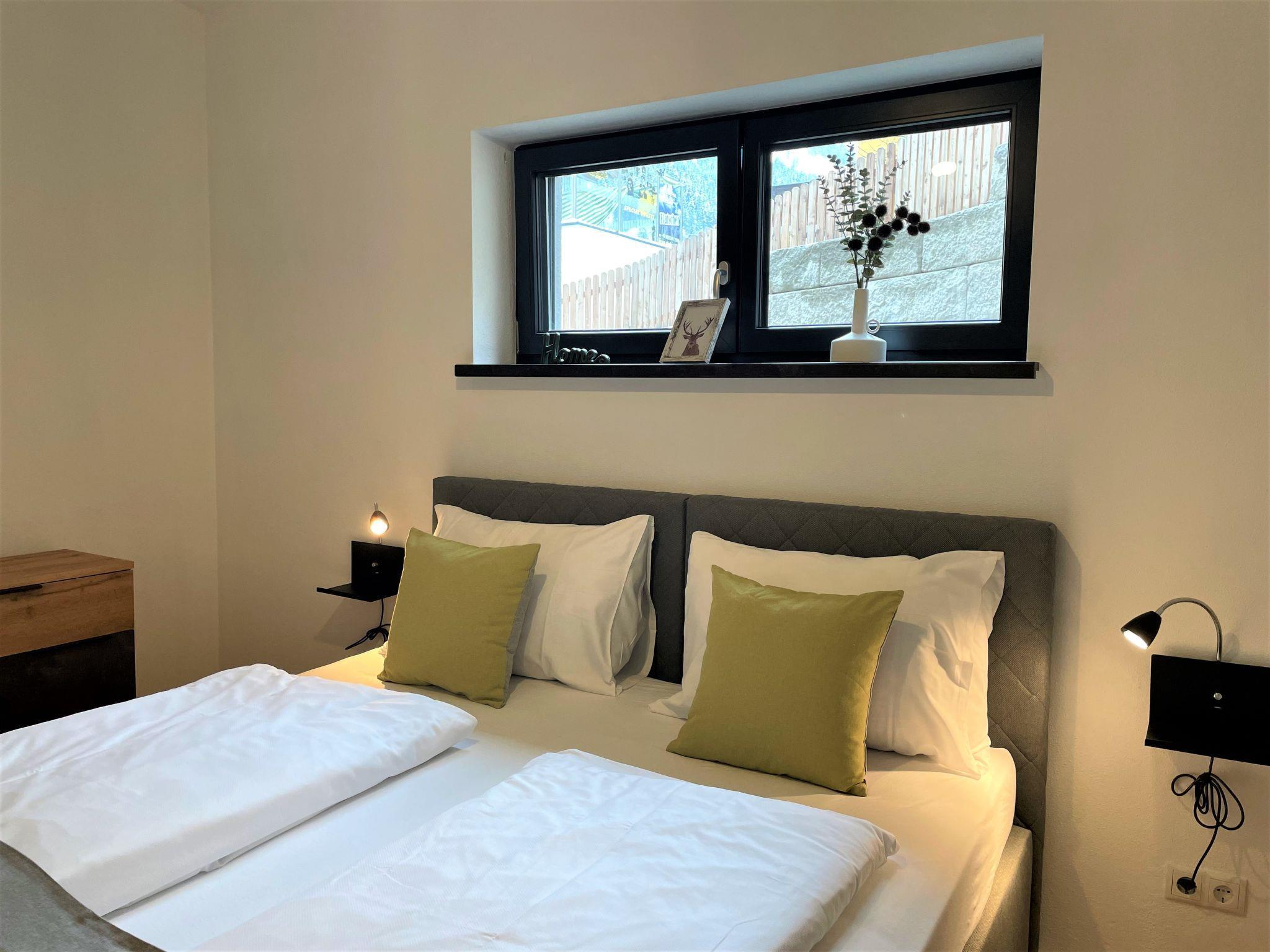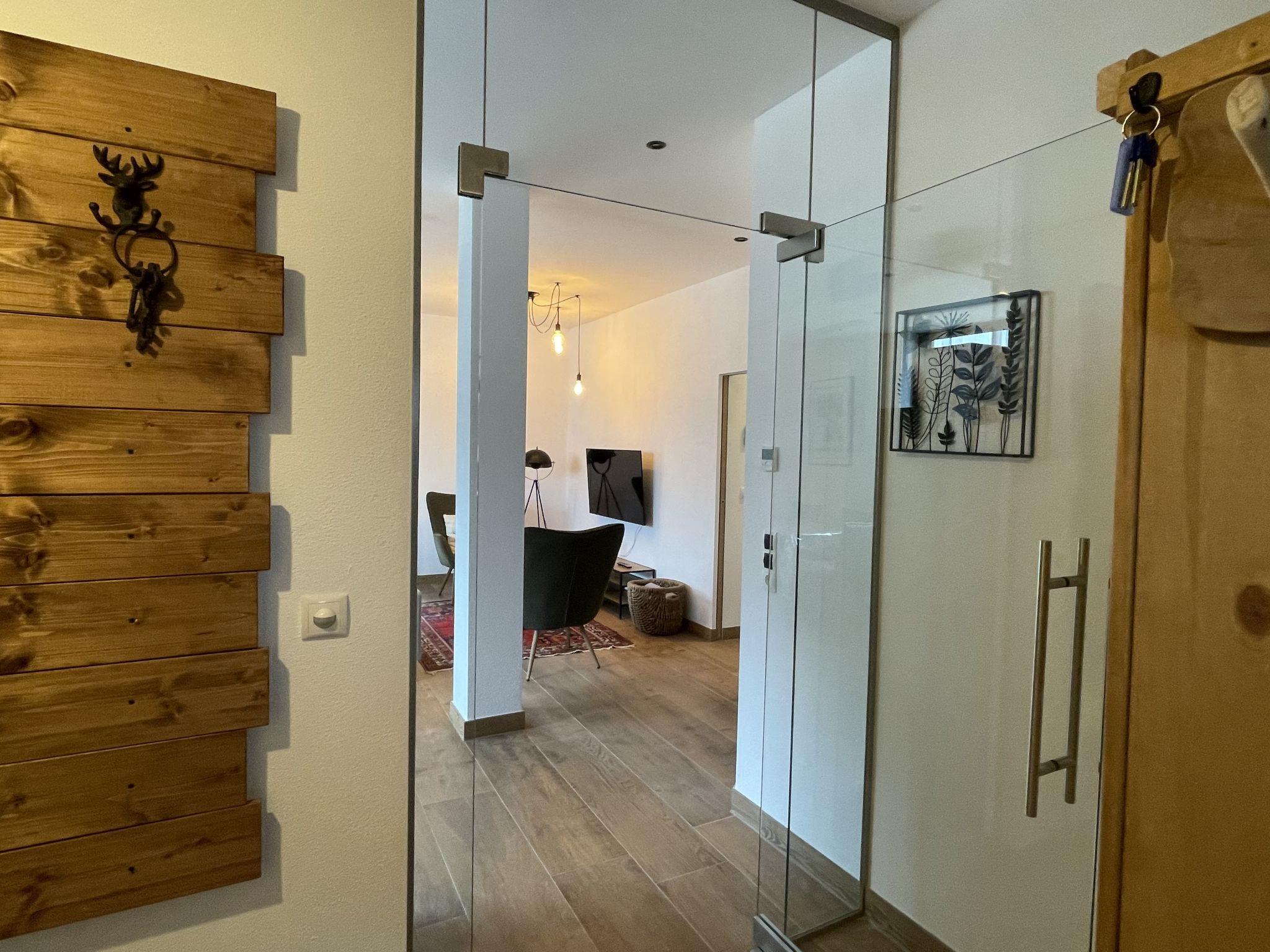 "Panoramablick", 3-room apartment 80 m2, on the ground floor. Fully renovated in 2022, very beautiful and tasteful furnishings: entrance hall. Living/dining room with panoramic window with dining table and satellite TV (flat screen). Exit to the terrace. 1 double bedroom 14 m2 with 1 double bed (180 cm, length 200 cm). 1 double bedroom 12 m2, without window with 1 double bed (180 cm, length 200 cm), satellite TV (flat screen). Open kitchen (oven, dishwasher, 4 ceramic glass hob hotplates, toaster, kettle, microwave, electric coffee machine). Shower/WC, sep. WC. Underfloor heating. Large terrace 18 m2. Terrace furniture, electric barbecue (portable), deck chairs (2). Very beautiful view of the mountains, the ski run and the resort. Facilities: sauna (extra). Internet (WiFi, free). Please note: non-smokers only. Smoke alarm, fire extinguisher. The smaller bedroom has an efficient supply/exhaust air system and daylight (large double-leaf glass door to the living/dining area).