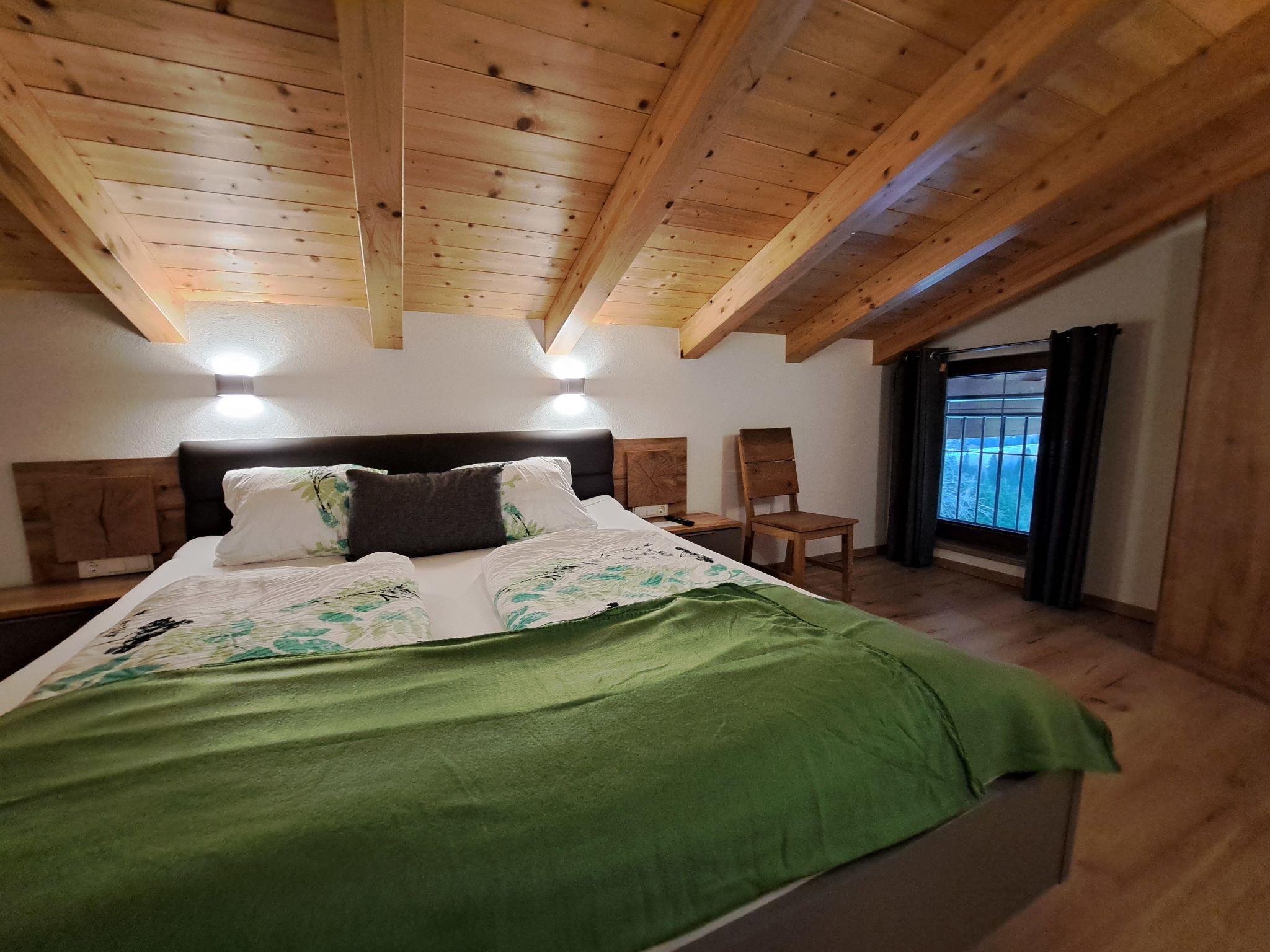 "Lehen", 3-room apartment 71 m2 on 2 levels. Object suitable for 5 adults + 1 child. Modern furnishings: upper floor: entrance hall. Exit to the terrace. Kitchen-/living room (oven, dishwasher, 4 ceramic glass hob hotplates, toaster, kettle, freezer, electric coffee machine) with 1 sofabed, dining nook and satellite TV. Sep. WC. Heating. 2nd upper floor: 1 room with sloping ceilings with 1 double bed, 1 folding bed and satellite TV. 1 double bedroom with sloping ceilings with satellite TV. Shower/WC. Heating. Terrace 55 m2 partly roofed. Terrace furniture, electric barbecue. Very beautiful panoramic view of the mountains and the valley. Facilities: safe, children's high chair, baby cot, hair dryer. Internet (WiFi, free). Please note: non-smokers only. Fire extinguisher. When there are less than the maximum number of guests staying at the property, not all of the housing units will be available for use.