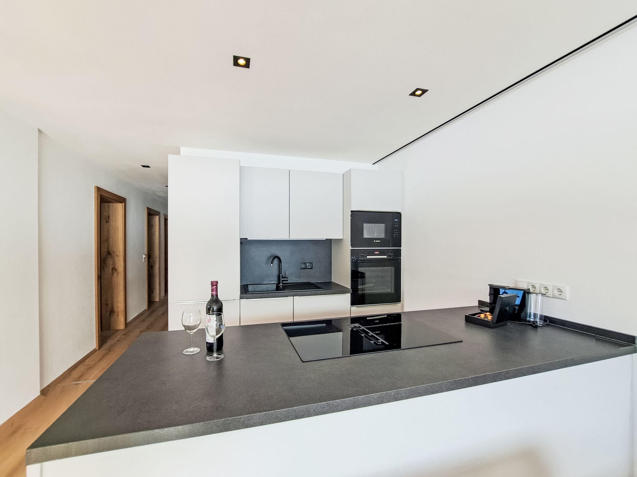 "Alpine Residence Auszeit", 4-room apartment 95 m2. Very tasteful furnishings: 3 double bedrooms. Large kitchen-/living room (oven, dishwasher, 4 ceramic glass hob hotplates, toaster, kettle, microwave, freezer, electric coffee machine) with 1 pull-out bed, dining table and satellite TV. Exit to the balcony. 2 showers/WC. Heating. Balcony. Balcony furniture. Very beautiful view of the mountains. Facilities: Internet (WiFi, free). Parking. Please note: suitable for families. Non-smokers only.