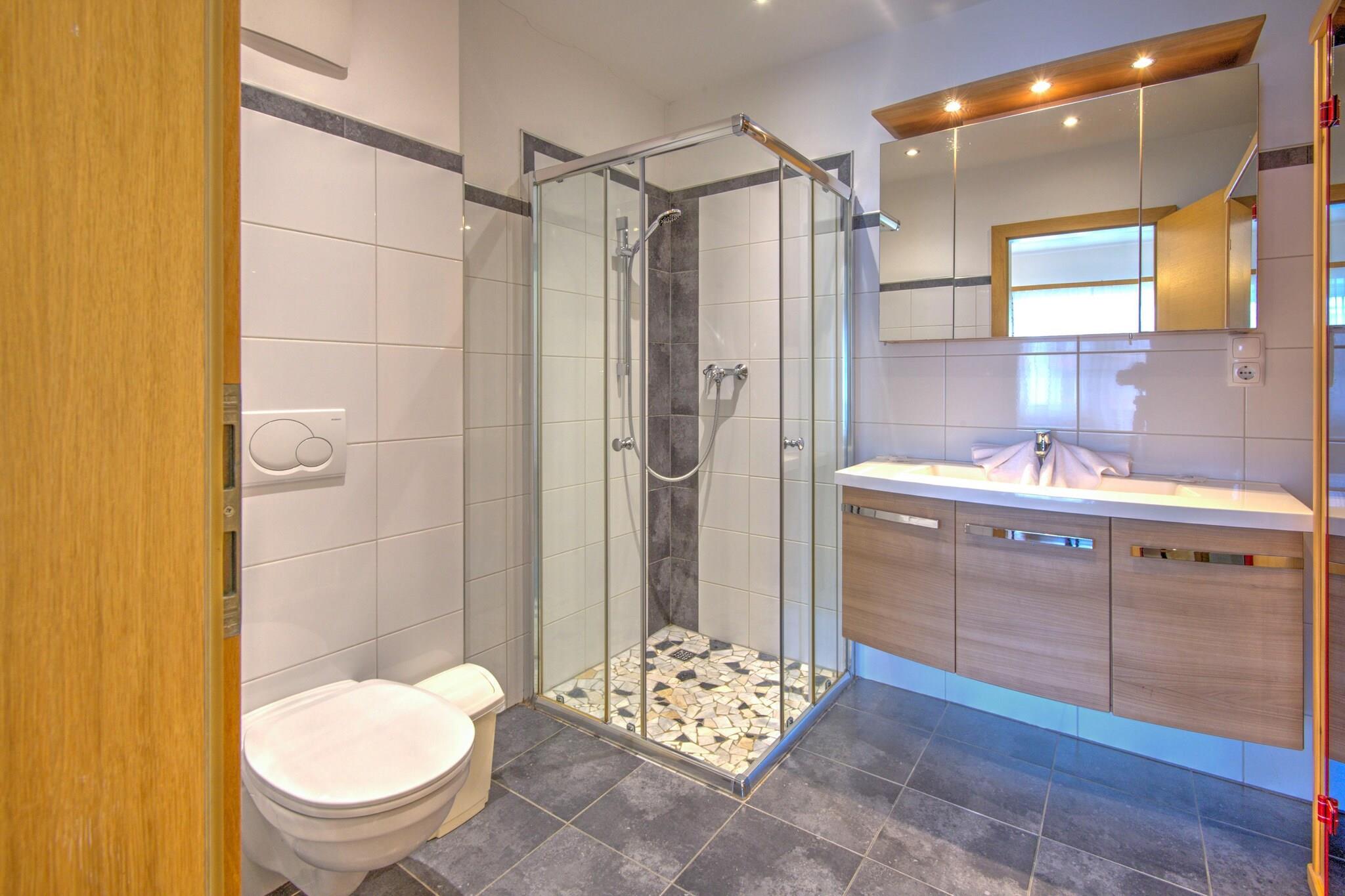 Beliggende i den fredelige Wildschönau-dal tilbyder denne Vicky Apartment-Top 1 den perfekte blanding af komfort, stil og alpin charme. Lys, rummelig og gennemtænkt designet med egetræsgulve og varme detaljer, er det et sted, hvor du virkelig kan slappe af og føle dig hjemme. Det åbne køkken gør det til en fornøjelse at lave mad sammen, stuen med tv, dvd-afspiller og stereoanlæg indbyder til afslappede aftener, og tre komfortable soveværelser sikrer afslappende nætter for alle. Med tre badeværelser - inklusive et med sin egen private infrarøde kabine - er der masser af plads til privatliv og fælles øjeblikke. Træd ud på din solrige terrasse og ind i haven, hvor udsigten over bjergene sætter scenen for rolige morgener med kaffe eller lange eftermiddage med familien. Yngre gæster kan lege sikkert, mens voksne nyder den friske alpeluft. Inde i komplekset tilbyder et fælles afslapningsområde med sauna, infrarød kabine og endda et poolbord ekstra afslapning efter en dag udendørs. Praktiske faciliteter såsom vaskemaskine, babyseng, højstol, ladestation til elbiler og parkering gør dit ophold ubesværet og behageligt. Det omkringliggende område indbyder til udforskning i enhver sæson. Om sommeren starter over 300 km vandrestier næsten lige uden for døren, lige fra nemme skovstier til panoramiske bjergruter. Familier vil elske eventyrruten Franziskusweg og forlystelsesparken Salvenaland med badesø, kun 10 km væk. Vinteren byder på snedækkede landskaber, der er perfekte til skiløb, stavgang og hyggelige aftener efter sjov udendørs. Med Wildschönau Premium Card kan du nyde svævebaner, udendørs pools, børneprogrammer, guidede vandreture og meget mere – alt sammen inkluderet, hvilket gør hver dag til et nyt eventyr.