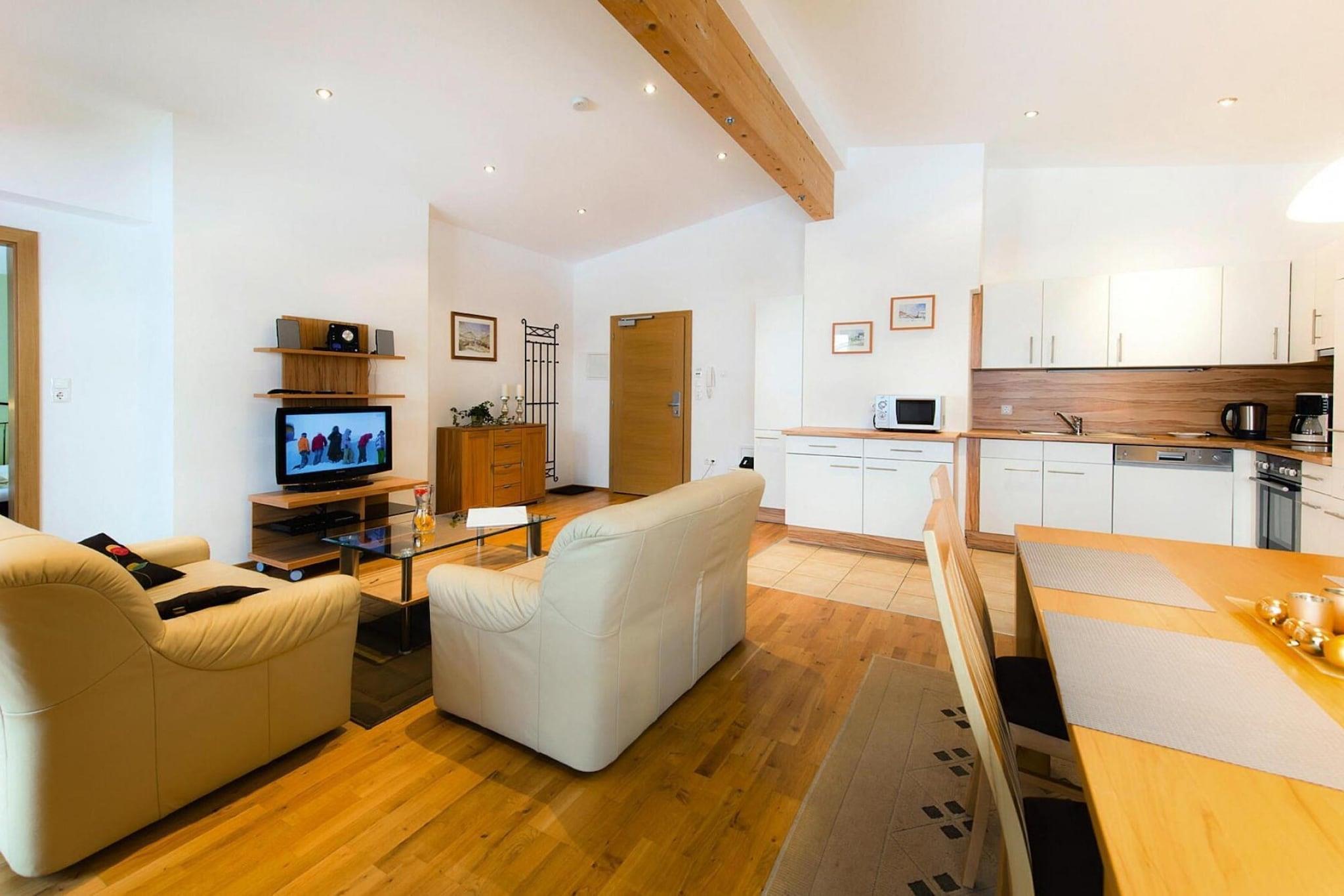 Meget komfortable feel-good lejligheder, med balkon eller terrasse, solrige og centrale, men alligevel stille midt i en smuk bjergverden (828 m over havets overflade). I hver af de nænsomt indrettede luksuslejligheder med egetræsparketgulve er der en infrarød wellness-kabine og der er desuden wellness-område med sauna og infrarød kabine til fælles brug. Ved indgangen er der en hyggelig lille lounge med poolbord. Huset er totalrenoveret under hensyntagen til energibesparende og miljøvenlige tiltag. Midt i Kitzbüheler Alpen kan du nyde den beroligende, landlige atmosfære med den højeste boligkomfort. Detaljer: Gæstekort med attraktive inklusiv servicesWLAN 20% rabat på cykeludlejning Aktiviteter i nærheden: Forlystelsespark og badesø Salvenaland i Hopfgarten omkring 10 km væk. Vandrestier: Waldrandweg 200 m, Panoramaweg og Käsealm - Horlerstiegl 150 m, eventyrvandresti Franziskusweg 800 m. Området kan genopdages igen og igen på de 300 km veludviklede og afmærkede vandrestier. På toppene har du en vidunderlig panoramaudsigt over Inntal, Kitzbüheler og Zillertaler Alperne. Adskillige stavgangstier strækker sig lige uden for døren. Med Wildschönau-gæstekortet er mange tjenester inkluderet for dig i prisen: brug af bjergbanerne i Niederau og Auffach, adgang til Wildschönaus udendørs pool, kiteklub - børneklub med børneprogram - 5 gange om ugen i ferien perioder, vandreprogram. - guidede gåture fra mandag til fredag, brug af tennisbanen, adgang til diverse museer Mobilitet: Nogle genstande er velegnede til bevægelseshæmmede, efter anmodning