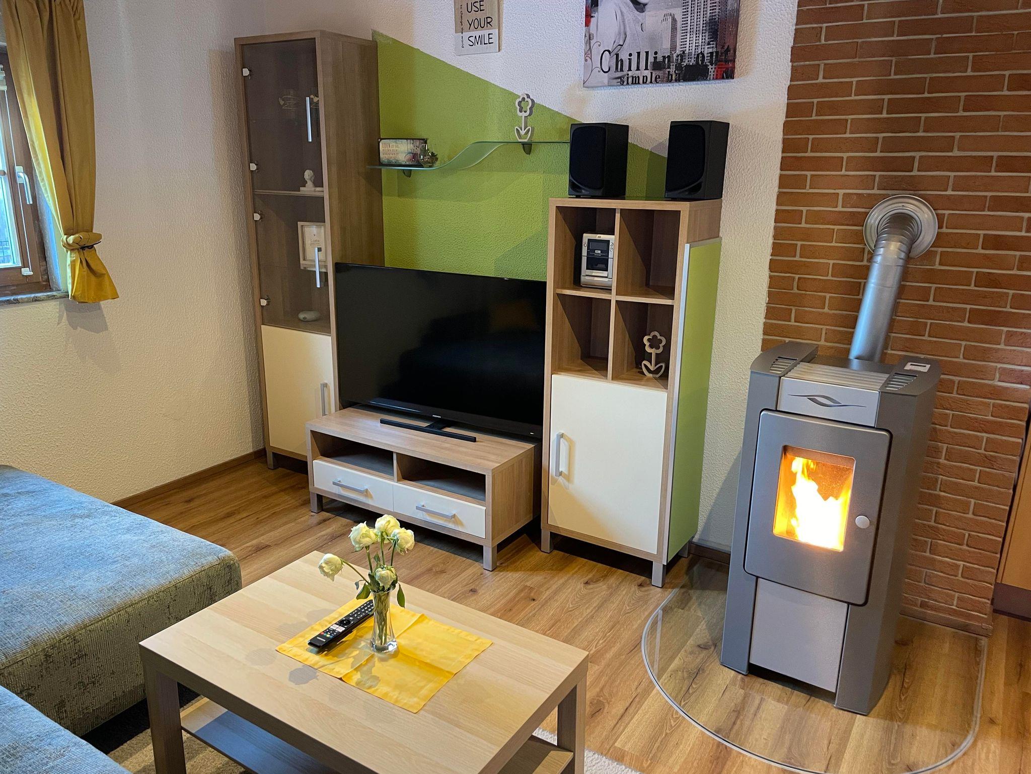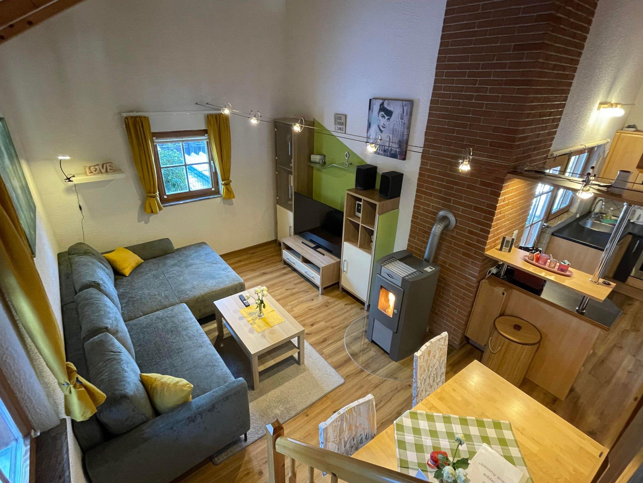 Das Ferienhaus hat ein WC, ein Badezimmer mit Dusche und Waschmaschine, 2 Doppelbettzimmer. Die Küche ist ausgestattet mit Geschirr, Toaster, Wasserkocher und Kaffeemaschine. Weiters gibt es einen Eßtisch, einen Kinderhochstuhl, eine Couch, Pelletsofen, Radio, TV, Wlan, Außen Grill, Pool, Sitzgelegenheiten auf der Terrasse. Pool ist von mitte Mai bis mitte September geöffnet.
