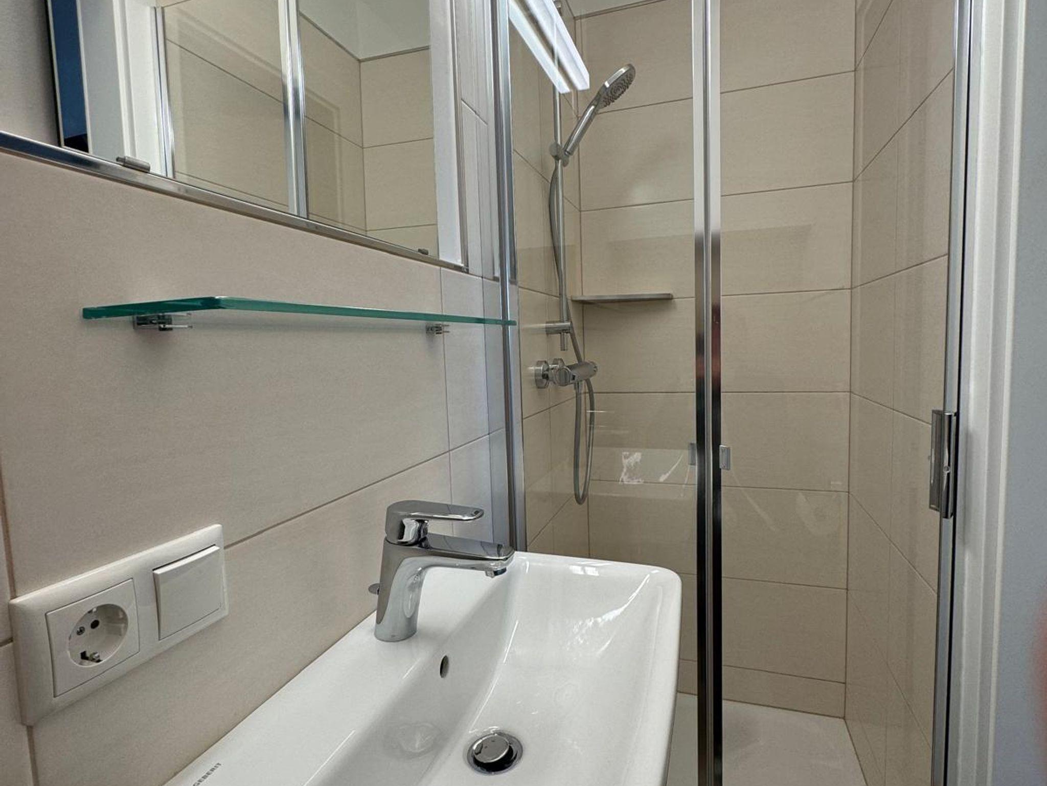 Helle Räumlichkeiten mit einer neuen und hochwertigen Ausstattung und Terasse (zugang von draußsen). Im Wohnzimmer befindet sich einen Esstisch, eine gemütlicher Sitzgruppe und eine Kochnische mit Kochplatten und Backofen, Geschirrspüler und einer Mikrowelle. Im Schlafzimmer befindet sich ein Doppelbett.