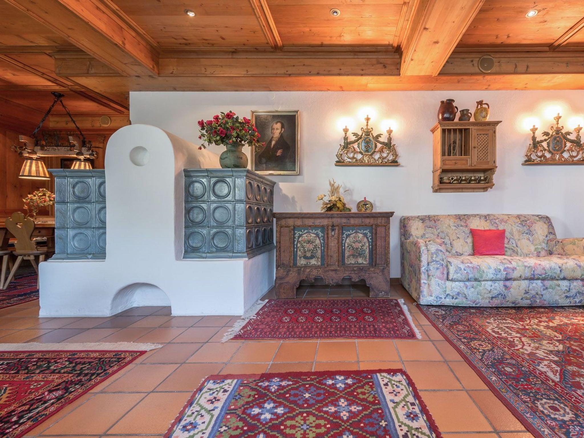 Für gesellige Abende stehen in unserem im Tiroler Stil gestalteten Aufenthaltsbereich gemütliche Plätze zur Verfügung. Hier kannst Du den nächsten Skitag planen oder deine Lieben zu einem Kartenspiel herausfordern.