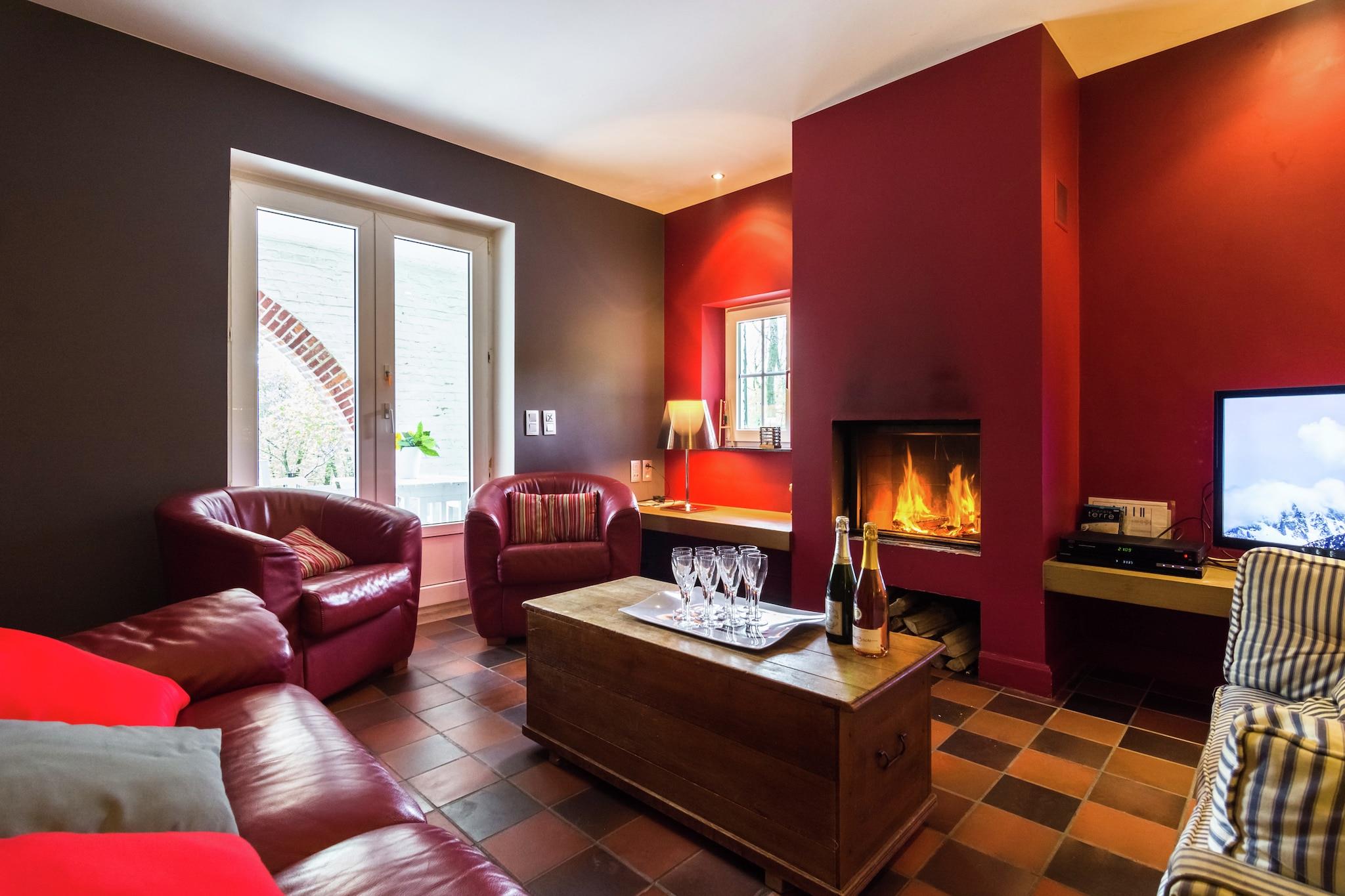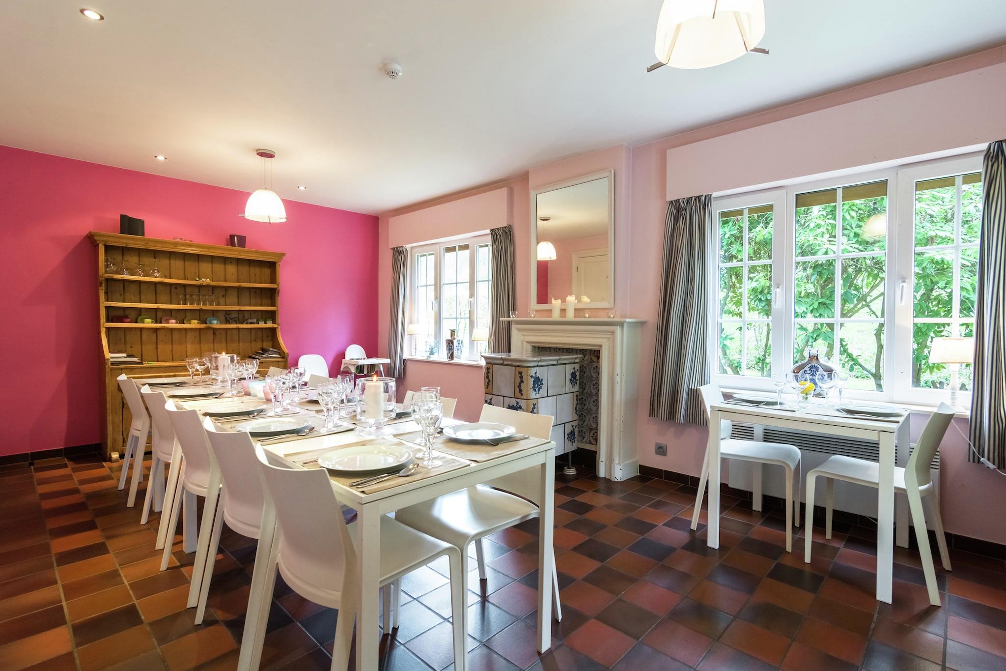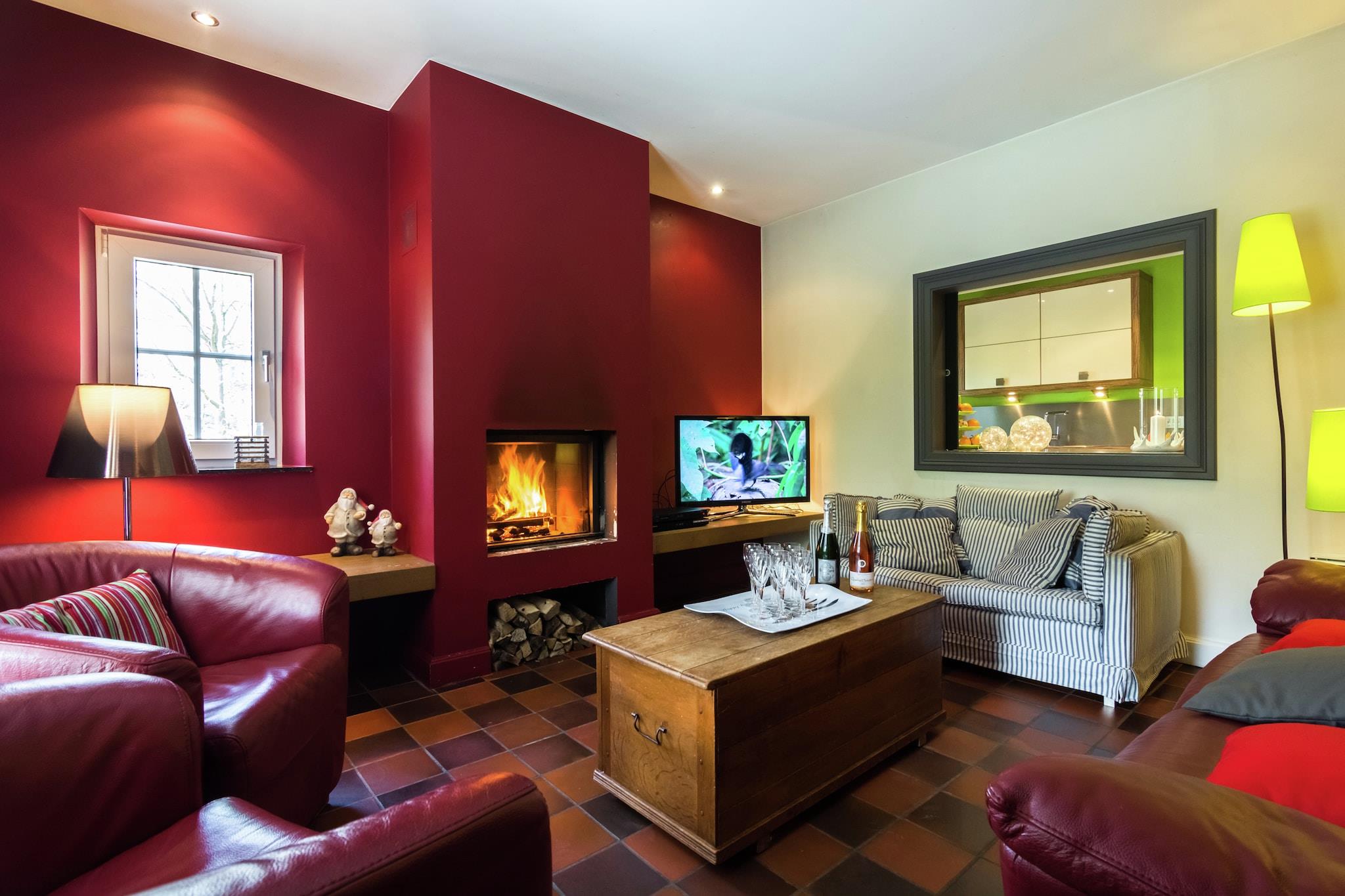 Dette smukke feriehus ligger i Dalhem, 8 km fra Aubel by, på grænsen mellem Flandern og Holland. Huset ligger på en lille bakke med træer og græsarealer og er et ideelt tilbagetog for en ferie med hele familien. Huset er meget smagfuldt indrettet og nogle af væggene er dækket af friske, muntre farver. Efter en dag i udendørs luften vil du søge afslapning i saunaen eller nyde den knitrende pejs i den hyggelige stue. Det er meget behageligt at sidde på den overdækkede terrasse om sommeren, hvor du også kan grille. kan nyde sig på trampolinen i den charmerende have eller i legepladsen. Dette sommerhus er rettet mod familier. Du er i det kuperede Aubel-område, kendt for sine frugter og specialiteter, cider! Ravel-ruten for cyklister er 7 km væk, og der er vandsportsmuligheder i en afstand af 22 km ved Gileppe-søen. Andre attraktioner er de gamle mines Blégny (8 km), klosteret i Val Dieu (6 km), den middelalderlige landsby Limbourg 6 km) og byen Liège.
