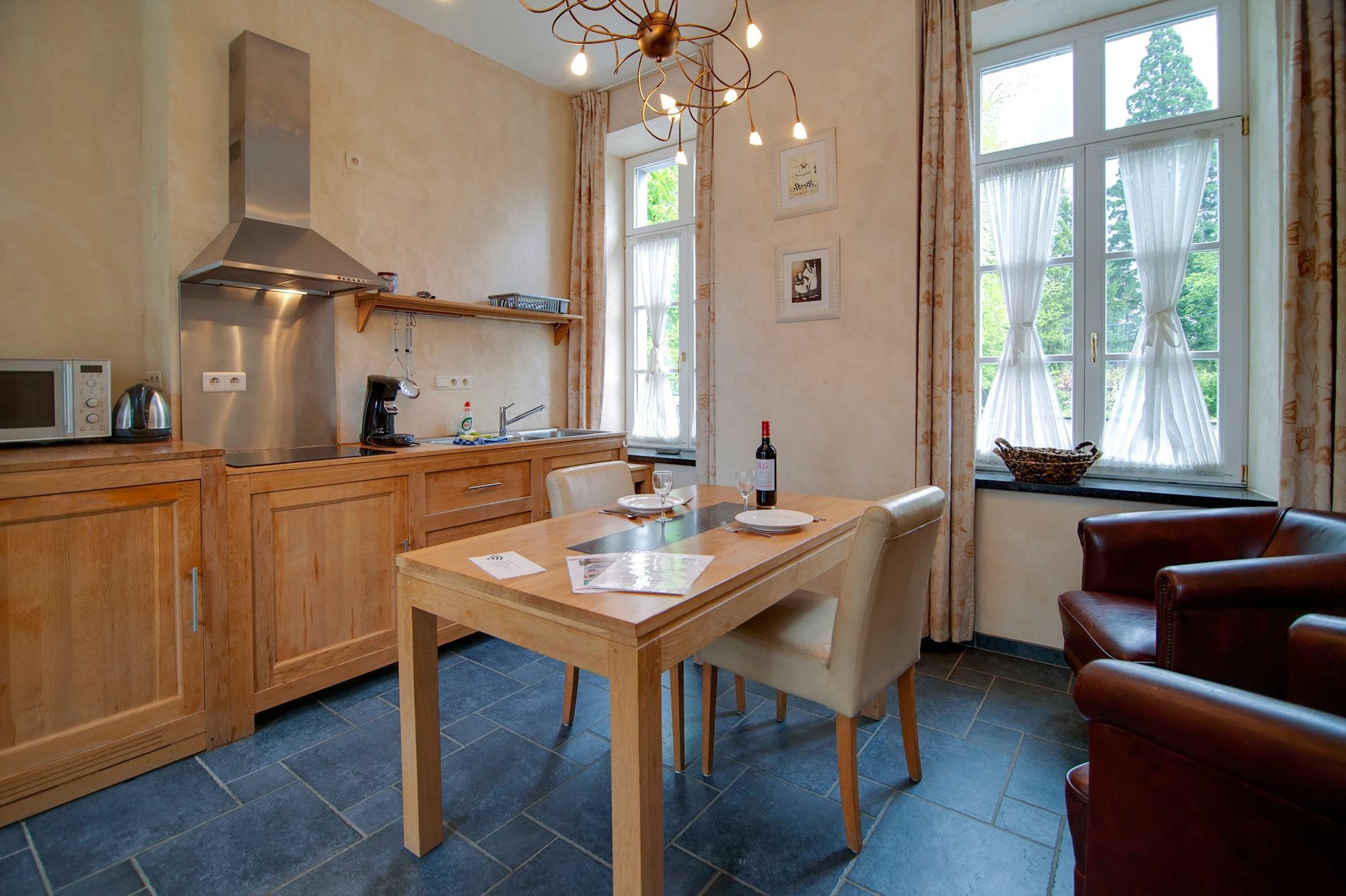 Bo i et smukt slot fra det 16. århundrede ved bredden af Amblève-floden, kun 500 m fra Aywailles centrum. Denne 1-værelses lejlighed er perfekt til 2 gæster og tilbyder et fredeligt tilflugtssted i hjertet af naturen. Omgivet af skov og vand er det en romantisk tilflugtssted med centralvarme, et veludstyret køkken og en petanquebane til sjov sjov. Udforsk de nærliggende Caves of Remouchamps, et fantastisk naturvidunder med 8000 års historie, eller nyd udendørs eventyr som kajaksejlads, klatring, vandreture og mountainbiking med lokale udbydere som YouROUT og Newlife. Området er rigt på cykel- og vandrestier, hvilket gør det til et paradis for naturelskere og sportsentusiaster. Lejligheden er en del af en slotsgård, der også omfatter en campingplads, der tilbyder en unik blanding af historie og rustik charme. Uanset om du søger ro eller eventyr, tilbyder dette fristed ved floden et mindeværdigt ophold i de belgiske Ardennerne.