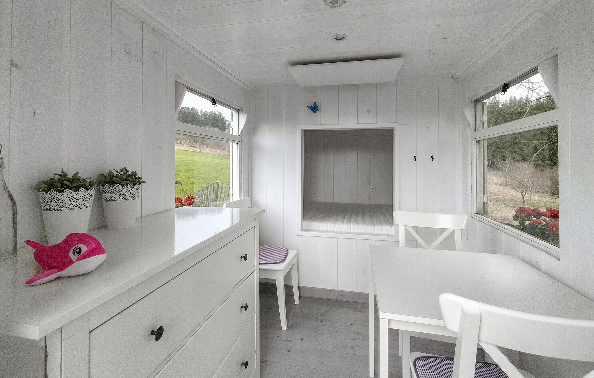 På solrige dage kan I nyde jeres morgenmad i den rummelige have. Lad børnene løbe rundt på trampolinen eller lege i træhytten, mens I forkæler jer selv med beroligende stunder i spabadet eller den udendørs sauna. For eventyrlystne børn er der to komfortable, valgfri sovepladser i en campingvogn til rådighed om sommeren.