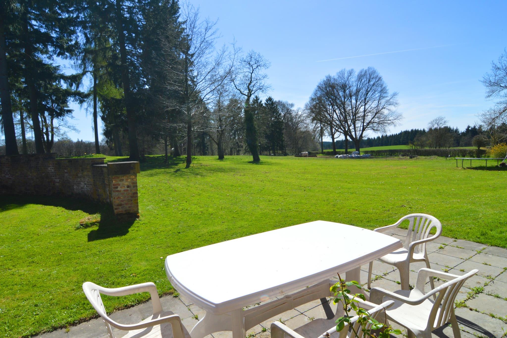 Denne hytte med 4 soveværelser i Barvaux-En-Condroz er et fredeligt tilflugtssted for op til 9 gæster, perfekt til familier eller grupper med børn. Huset er omgivet af skove og enge og har privat have, tennisbane og gratis WiFi. To kæledyr er velkomne, hvilket gør det ideelt for naturelskende familier. Området er rigt på vandrestier, der starter lige fra huset. For eventyrlystne kan du nyde kajaksejlads på Lesse eller besøge nærliggende attraktioner som Durbuy og slottene Modave, Spontin, Freyr, Annevoie og Lavaux-Sainte-Anne. Byens centrum og butikker ligger 5 km væk, med restauranter og offentlig transport 15 km fra ejendommen. Indenfor byder boligen på centralvarme, pejs i stuen og veludstyret køkken. Børn kan lege trygt i den træbevoksede have, mens voksne slapper af på terrassen eller nyder en kamp på tennisbanen. En fredfyldt og kæledyrsvenlig flugt i hjertet af Namur.